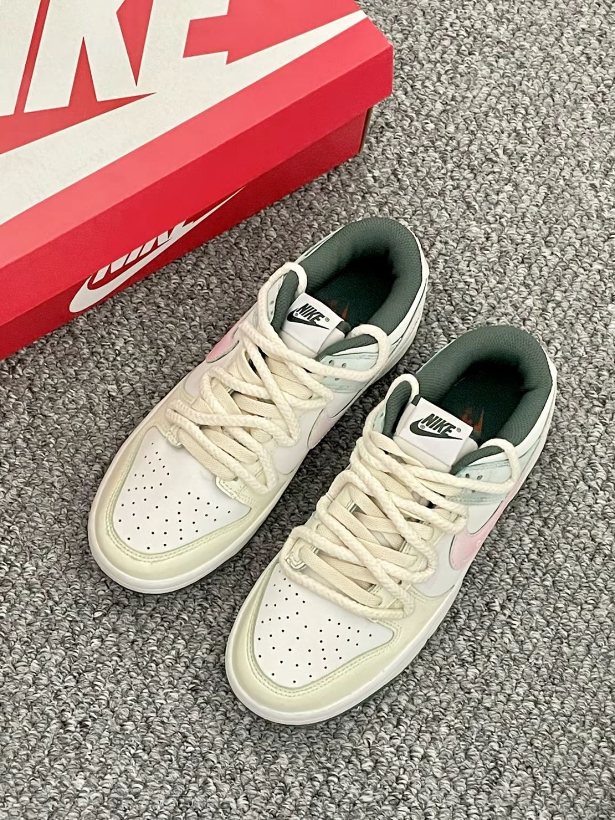 本篇笔记关联了【定制球鞋】 Nike Dunk 板鞋 平跟系带防滑耐磨做旧高街简约百搭潮流复古美式 粉绿春意等商品,为用户提供真实的使用体验和购买参考。