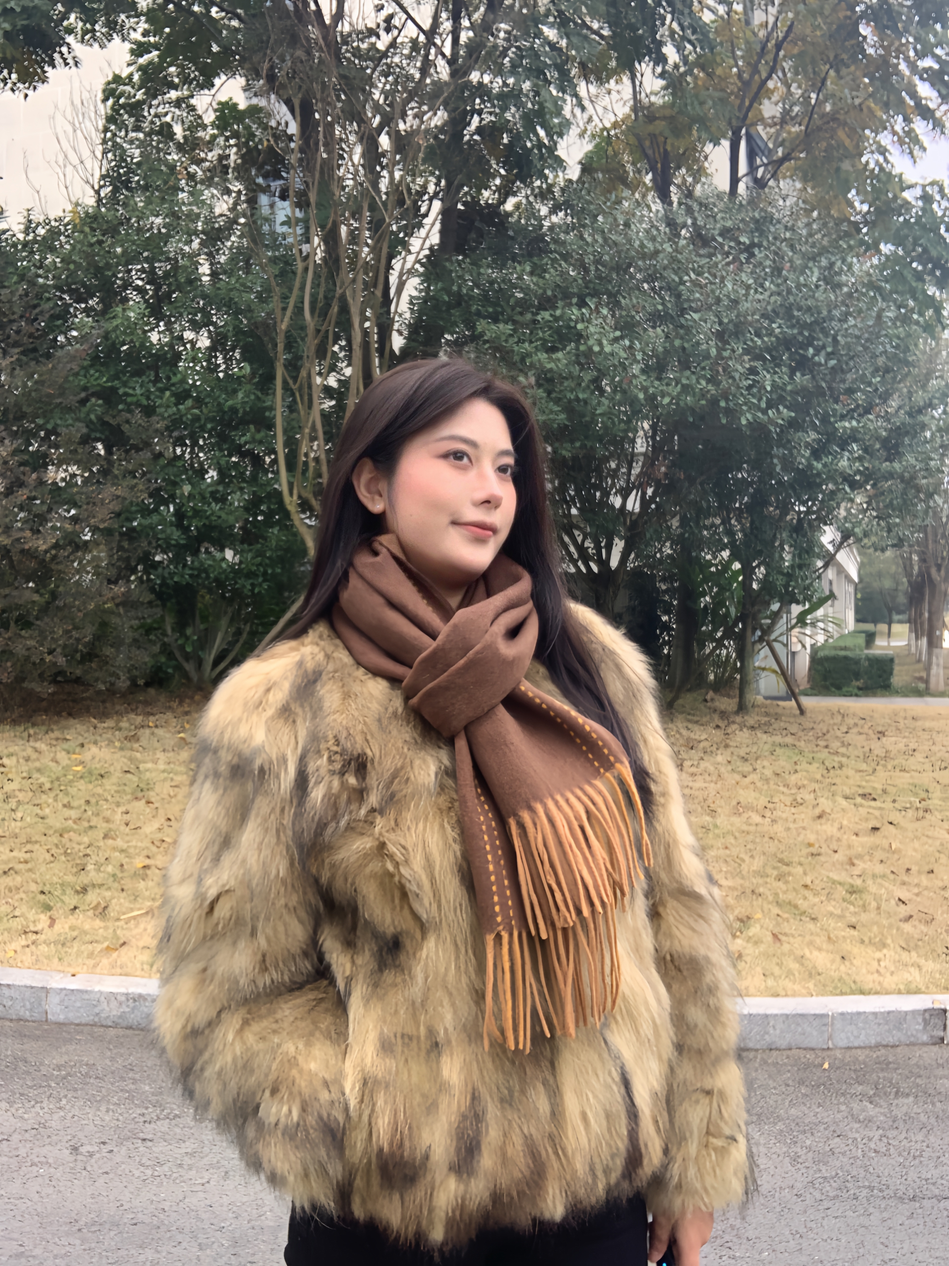 今天分享一条羊毛围巾 99%的澳洲羊毛 绝对值 围上一会就很暖和 棕色的颜色百搭不挑衣服~