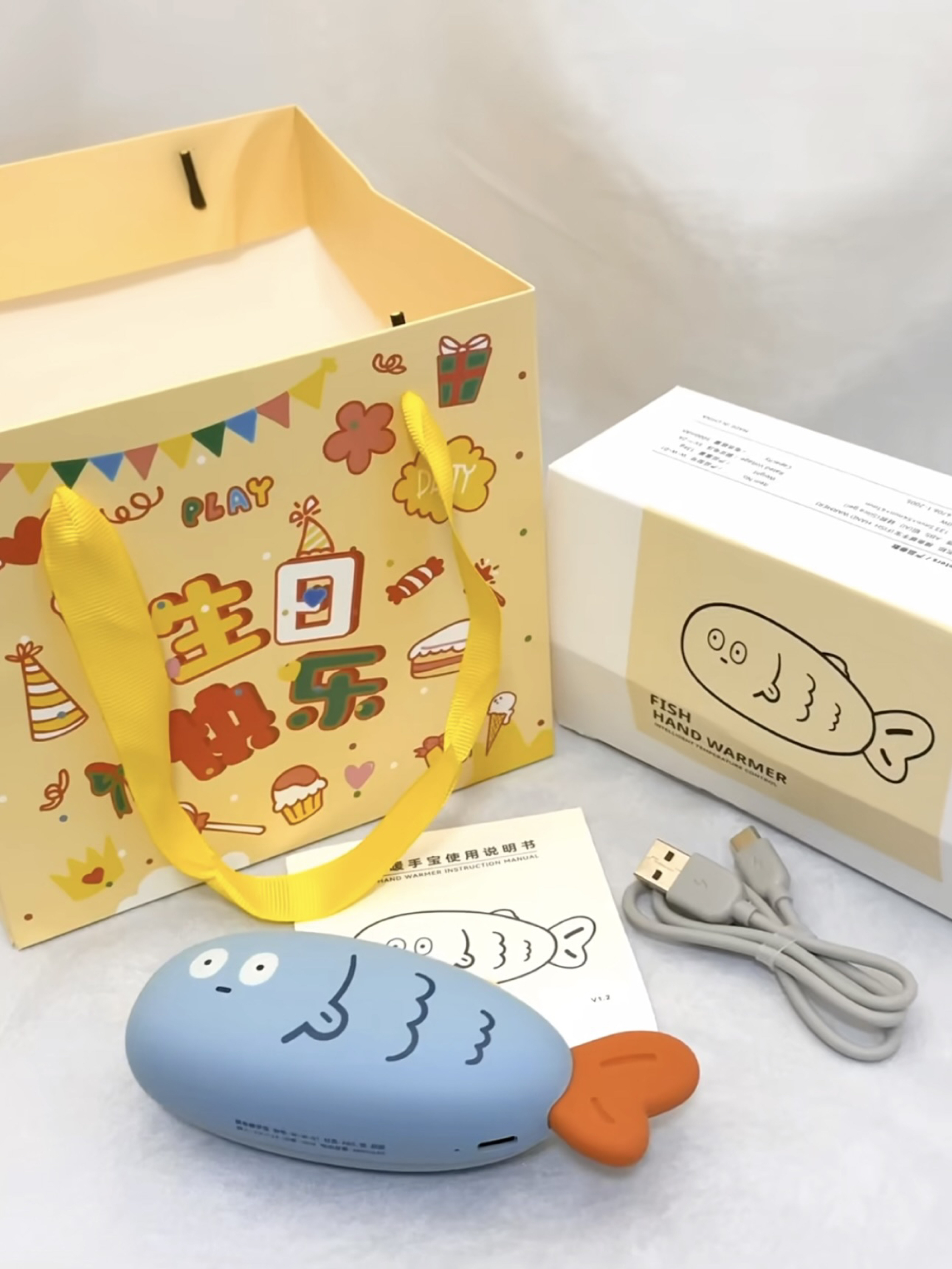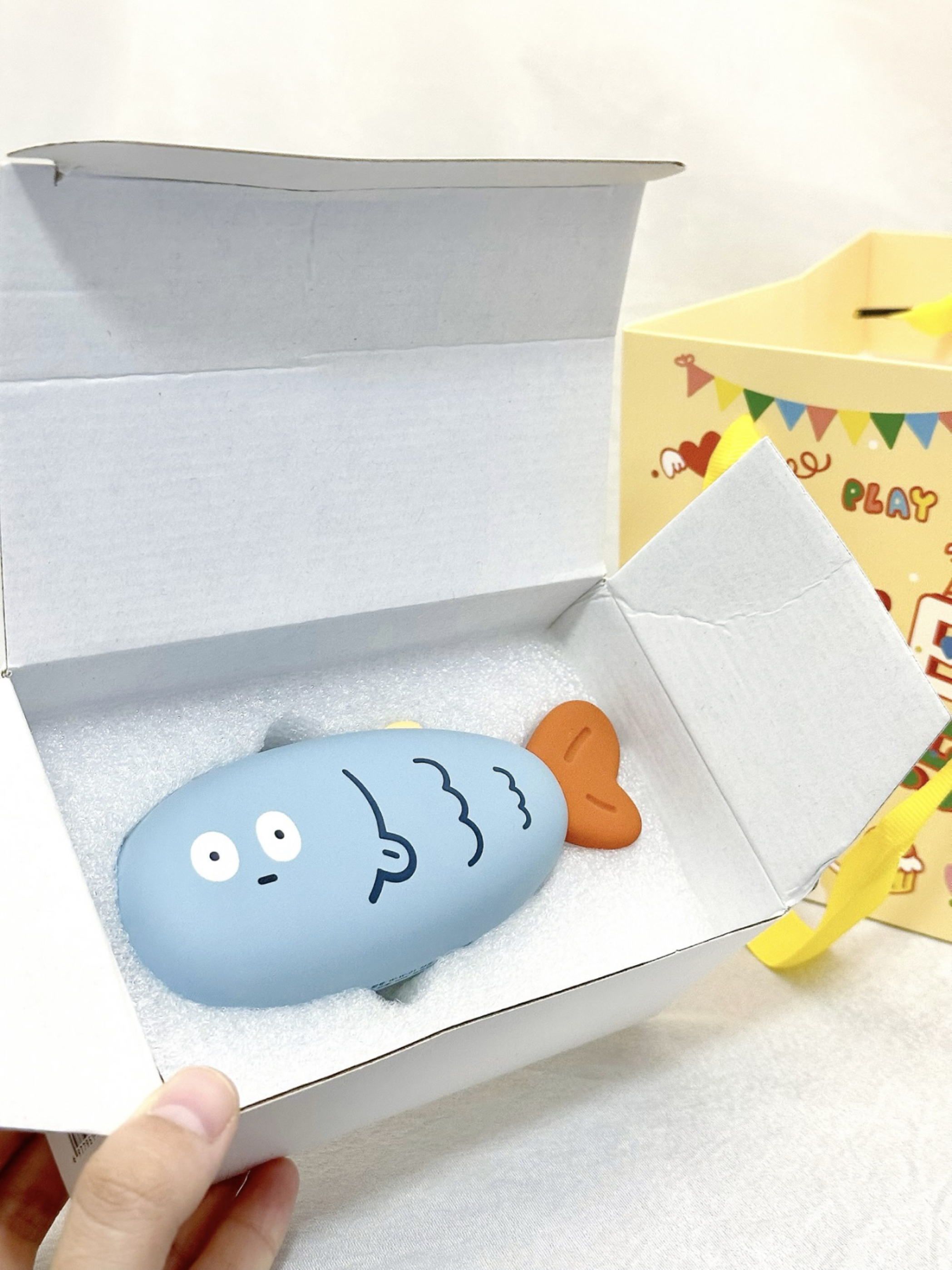 这个摸鱼暖手宝未免太可爱了吧 一手刚好能握住,而且三秒就能发热 等天气马上转凉了,上班路上握在手里暖呼呼的 小鱼的设计也是越看越喜欢 还是礼盒装的 感觉送人的话也很有仪式感