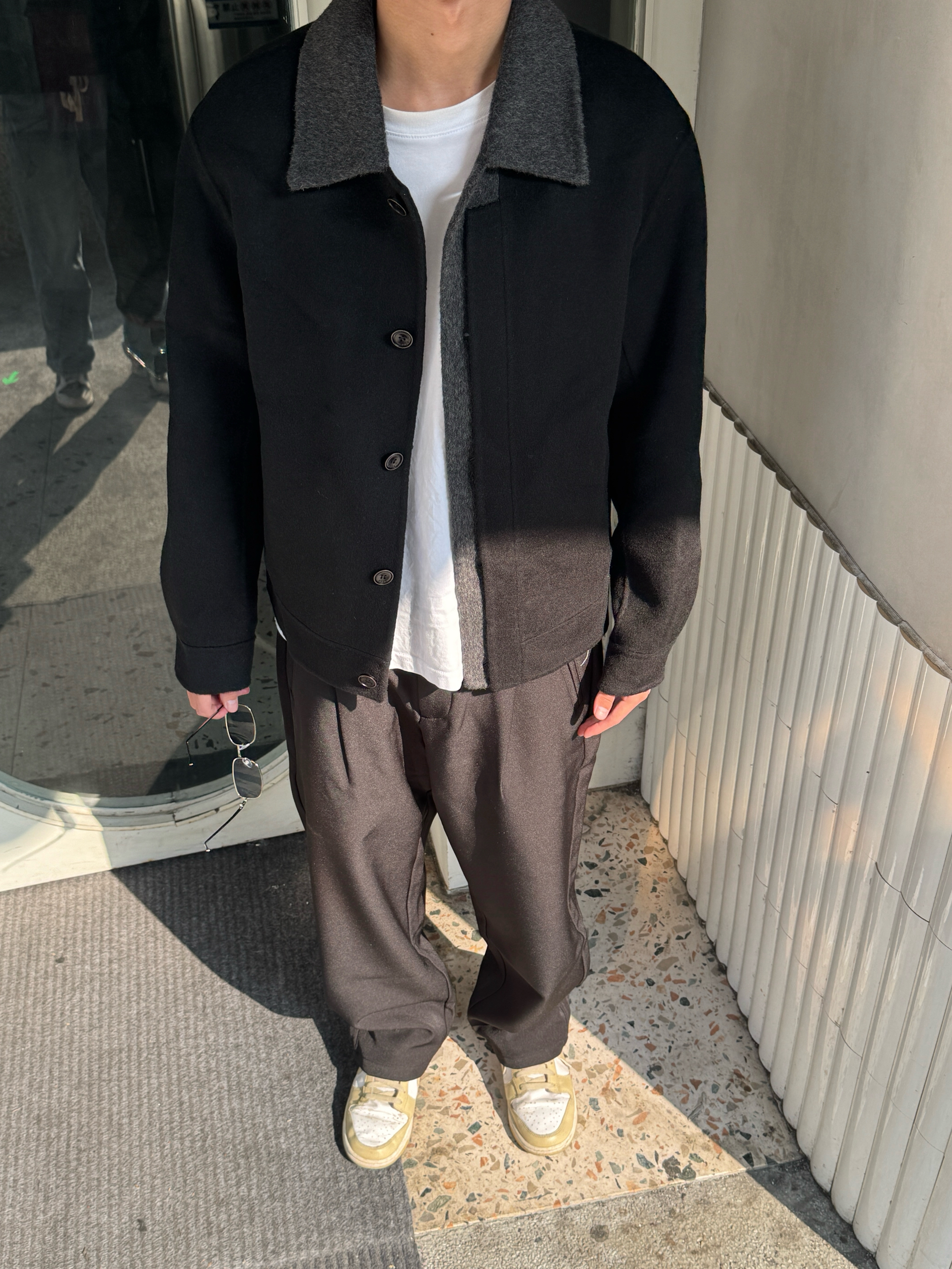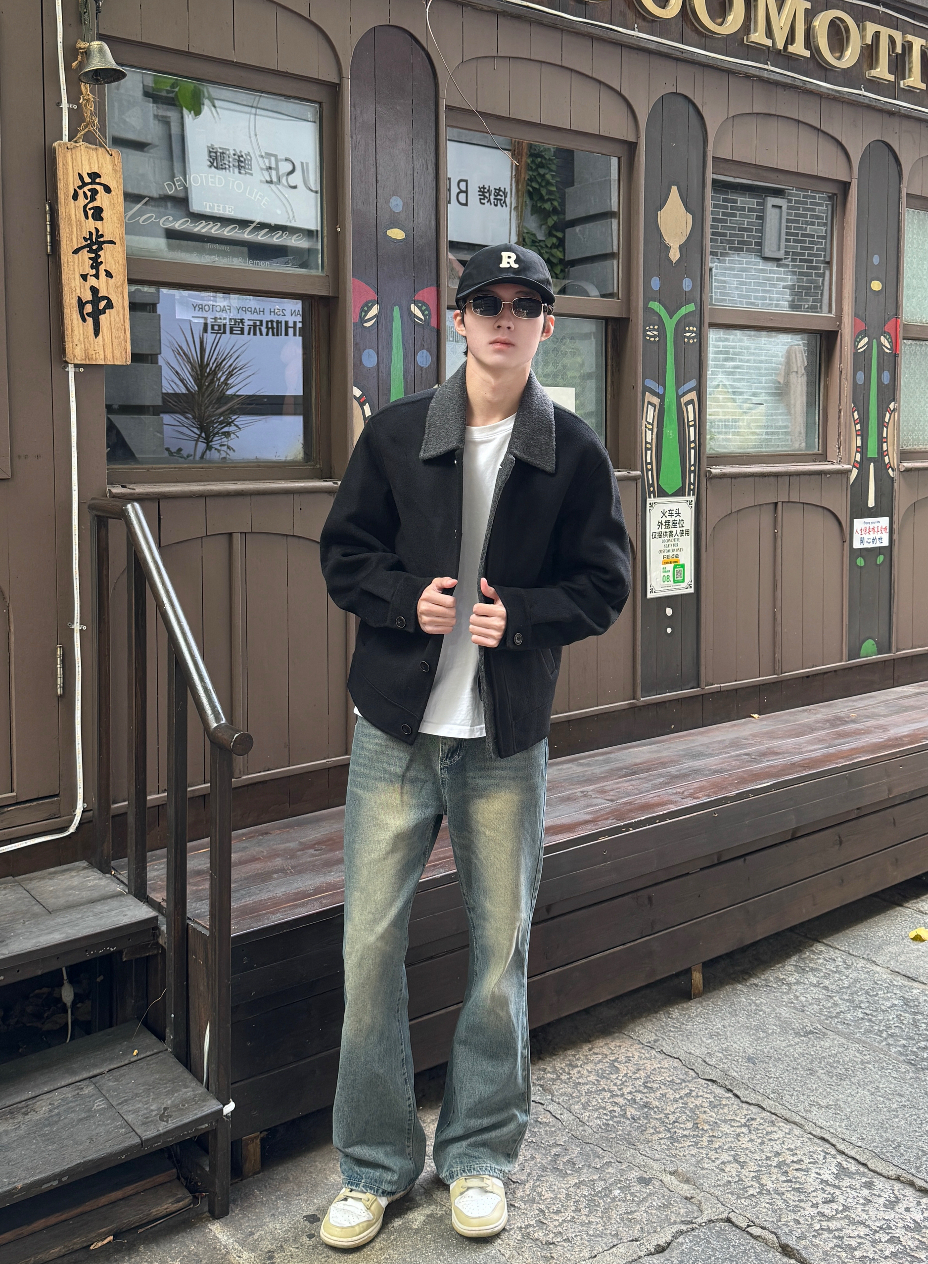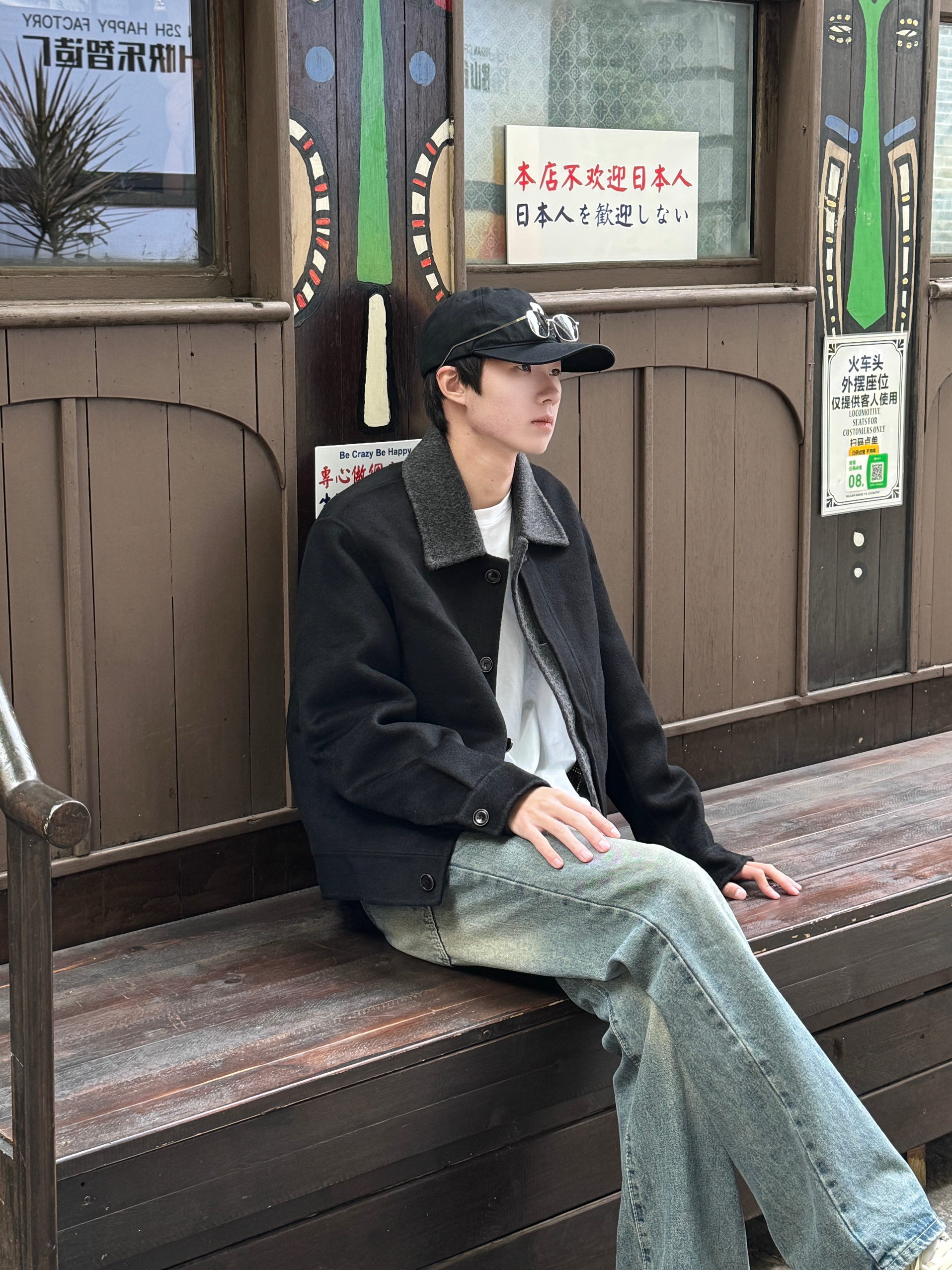 这身把精致和随性平衡得刚好 一件黑色毛呢翻领外套 剪裁利落带点老钱风的低调贵气 质感满分 内搭简约白T恤提亮 下身搭配复古蓝宽松牛仔裤👖 水洗色调和宽松版型自带慵懒感 材质碰撞巧妙 整体松弛有型 散发着不费力的复古时髦气息~ ✨