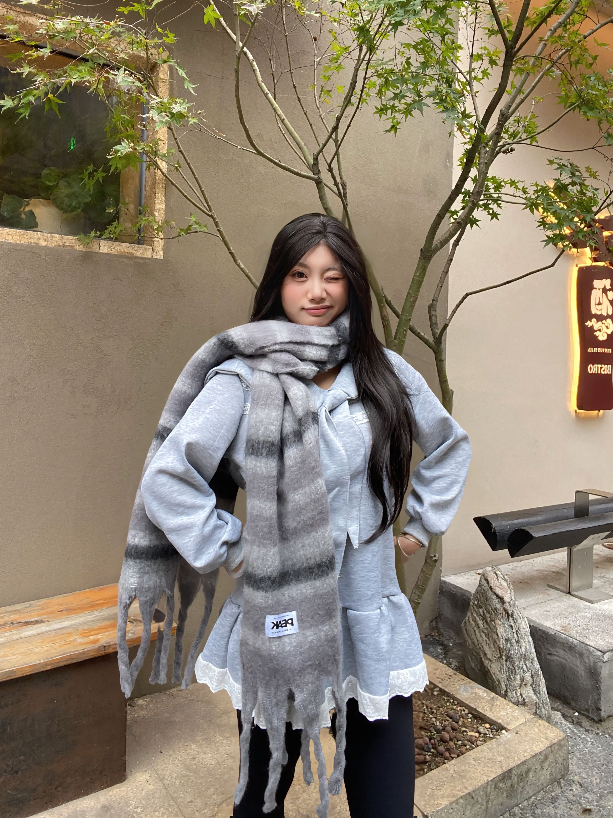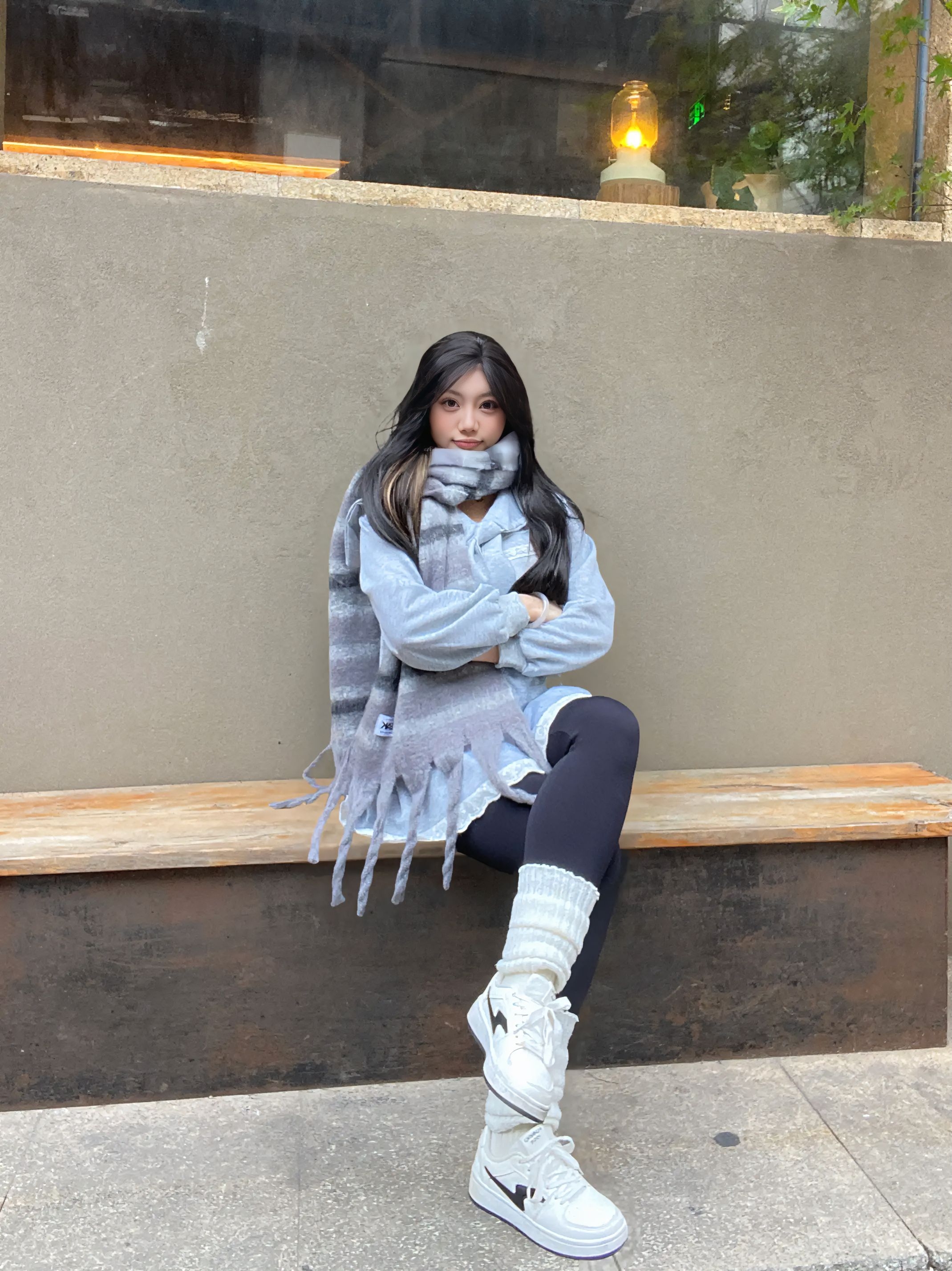 浅灰色宽松卫衣自带随性慵懒的氛围,搭配同色系渐变围巾,层次感直接拉满。围巾戴上很舒服,解锁不同围巾系法~下装选黑色leggings显瘦又利落,堆堆袜和小白鞋的组合让整体造型更具休闲感。围巾的流苏设计是点睛之笔,中和了卫衣的简约,增添了几分设计感。这套穿搭把舒适和时尚结合得恰到好处,不管是日常出街还是探店拍照都很出片,怕冷又想穿得好看的姐妹可以直接照搬~