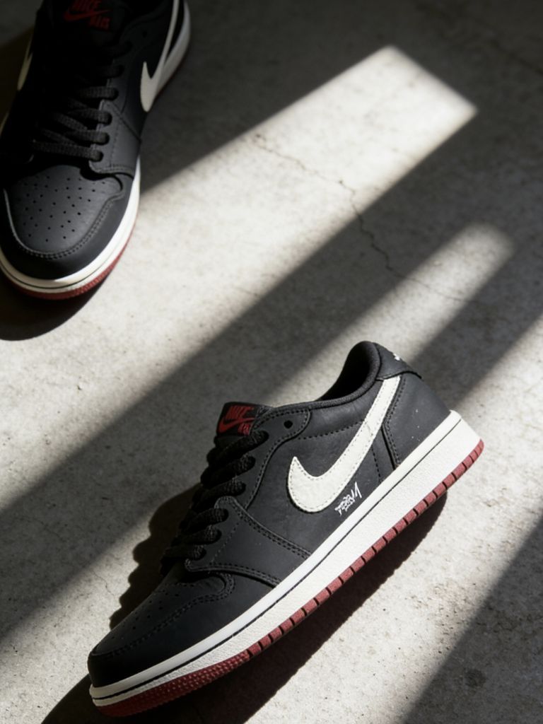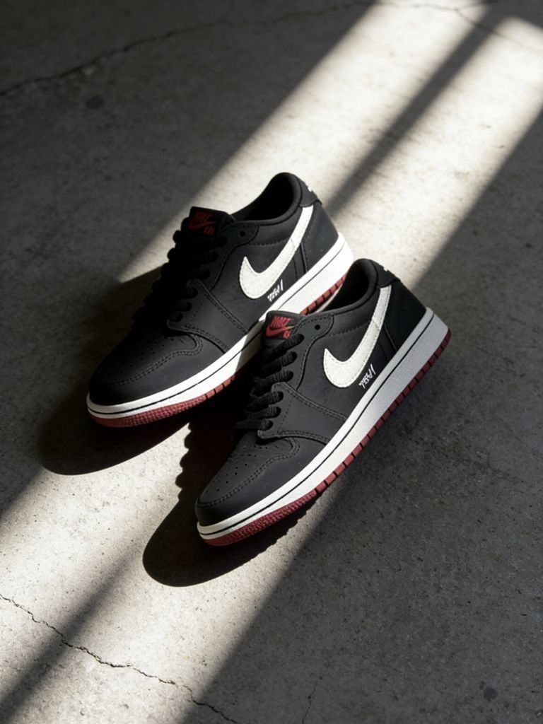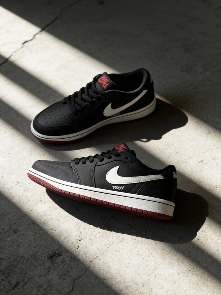 来聊聊这双AJ1 Low的上脚感受!黑白色调真的经典,鞋型超百搭,随便穿都好看。脚感很舒服,从早到晚穿着都不闷脚。最加分的是那点红色点缀,一下就让鞋子不单调了,细节感满满!😍
