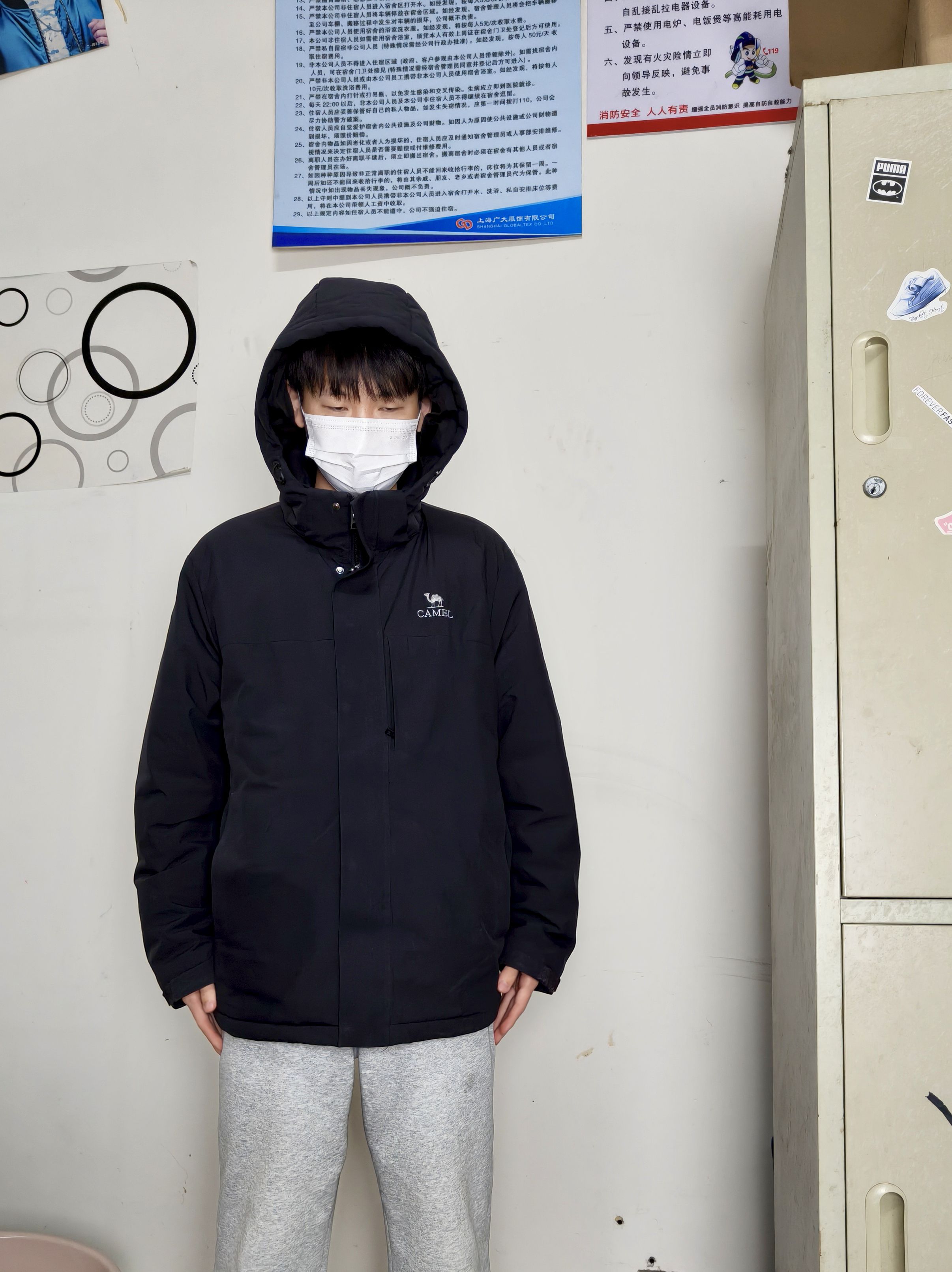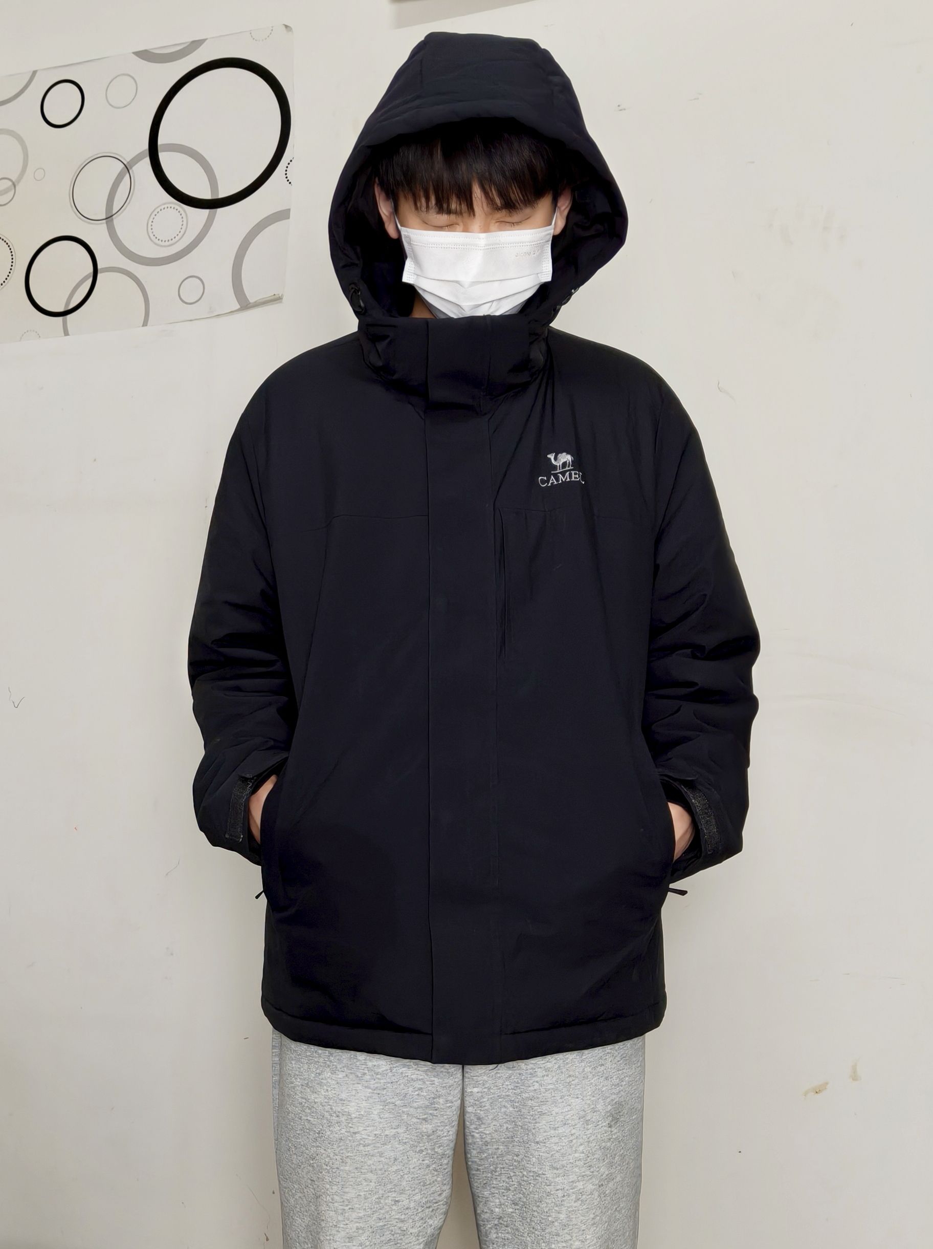骆驼这款棉衣冲锋衣真的挖到了! 整体是纯黑款,穿起来不挑身材,搭卫衣、毛衣都贼合适,日常出街或者通勤穿都没毛病。面料防水性亲测可以,泼点水直接滑走,内里填充很扎实,北方初冬单穿也不冷,南方过冬完全够用。 版型是宽松款,我176穿XL码正合适,抬手弯腰都不勒,连帽设计还能挡风,工装机能风格,穿上拉风感十足, 本次拍摄包含了logo细节,防水细节,还有内部实拍和材质细节,喜欢的可以下手啦!!
