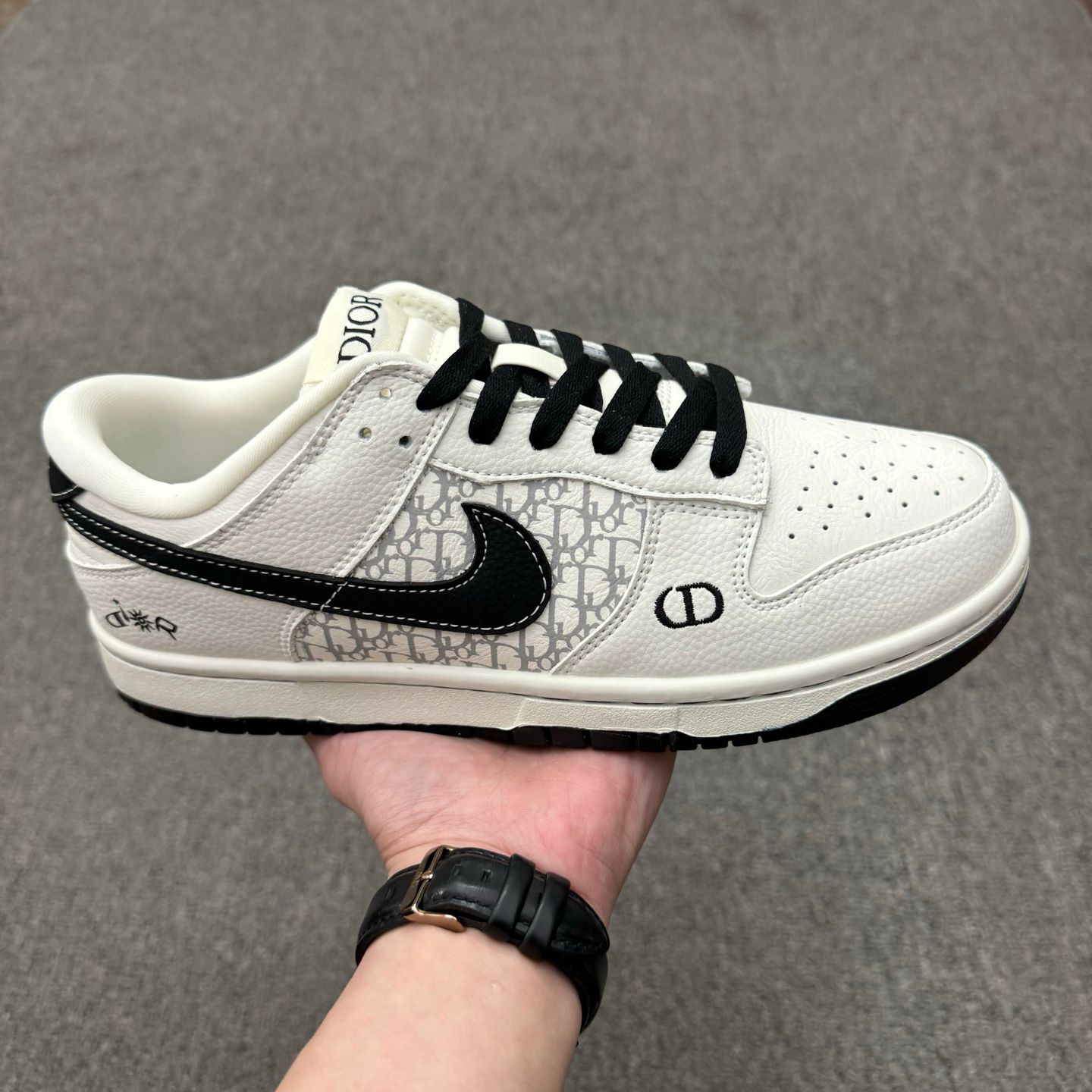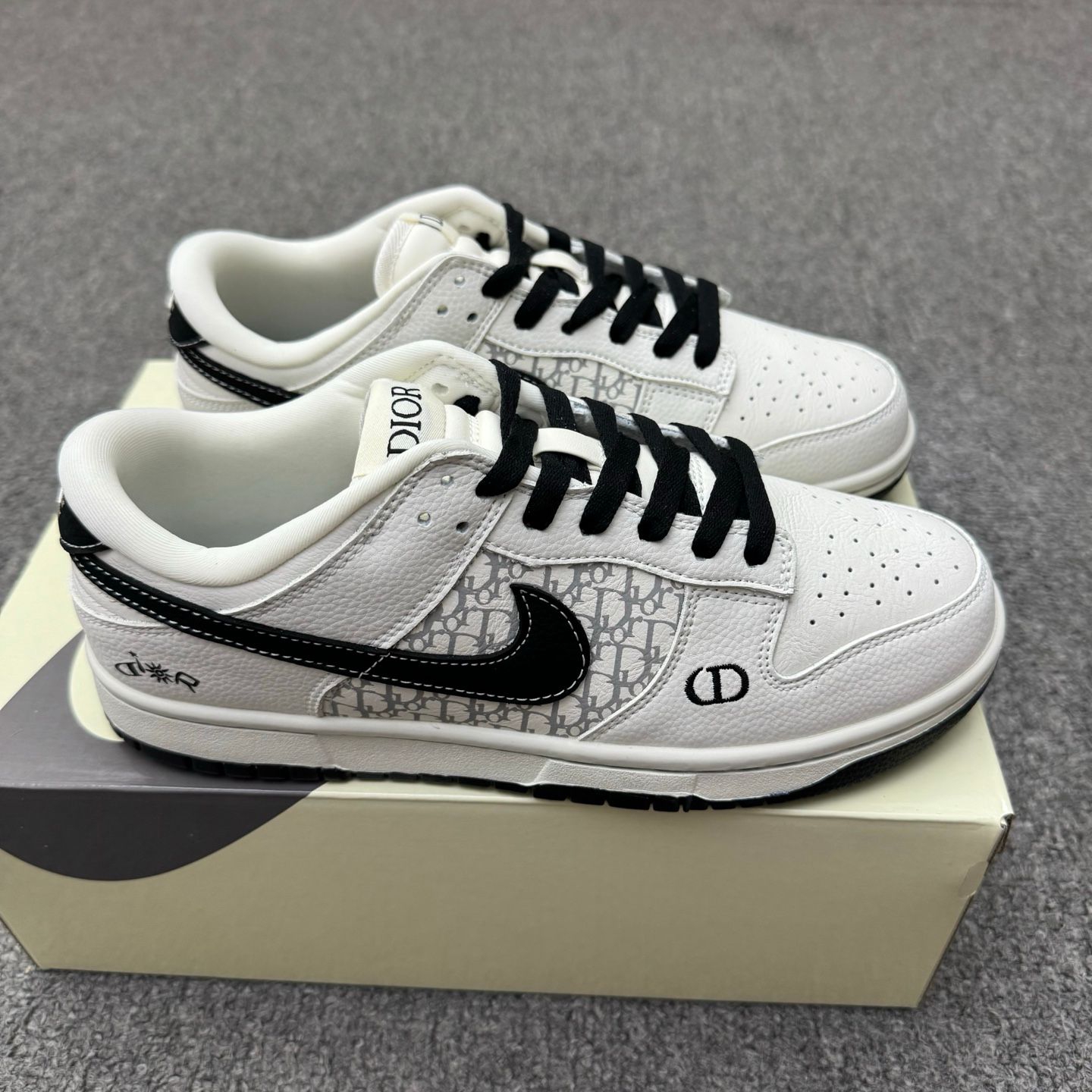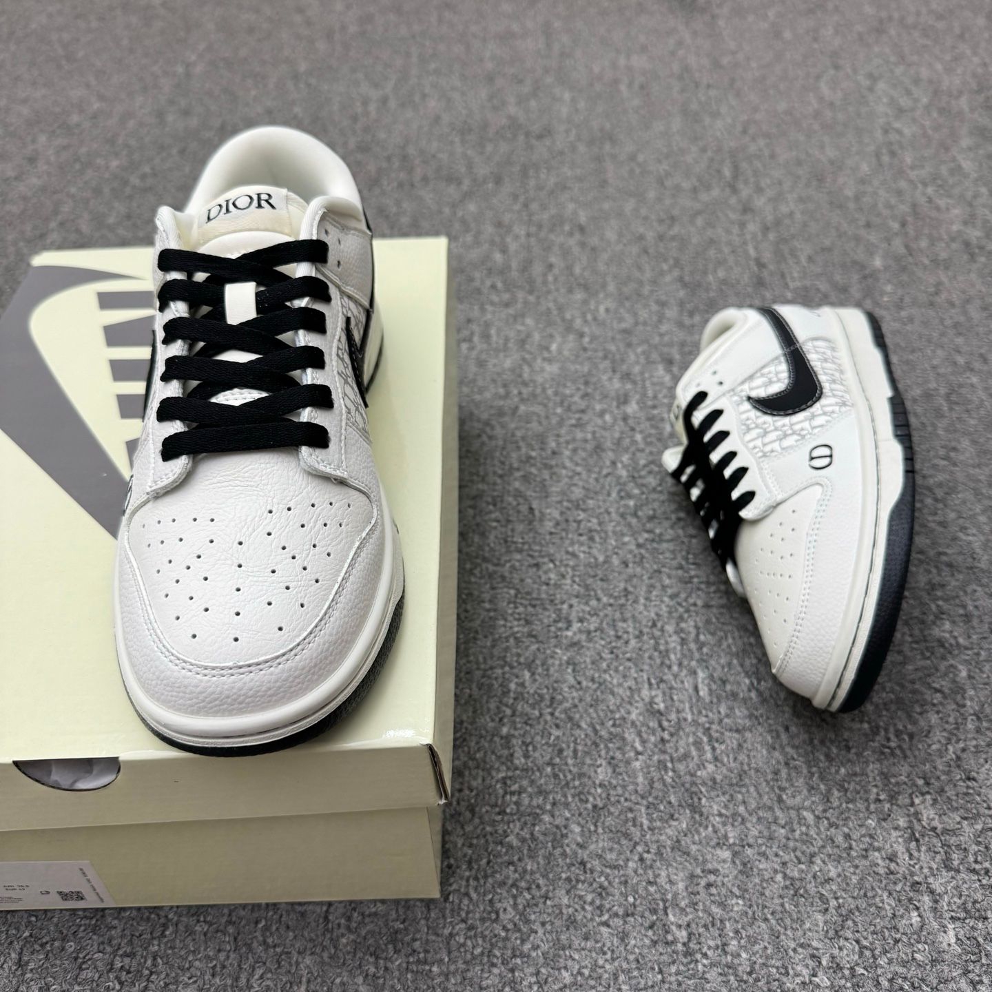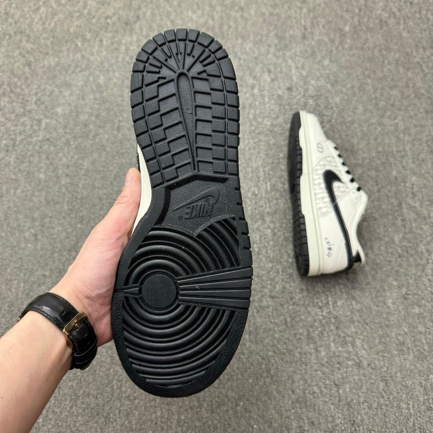 球鞋党直接DNA动了!这双Dior联名Nike Dunk到手,实物的精致度直接把我惊艳到失语,朋友圈发图被问爆链接! 第一眼就被满印老花设计拿捏,浅灰色的Dior图腾和黑白鞋身撞出高级感,低调又不缺细节,鞋舌的Dior标、鞋侧的手绘小logo,处处都是小心机,轻奢氛围感拉满到骨子里! 荔枝纹皮质摸起来超有质感,软乎乎的还不磨脚,我这种宽脚星人穿也超贴合。脚感更是绝了,鞋垫的回弹超舒服,暴走...