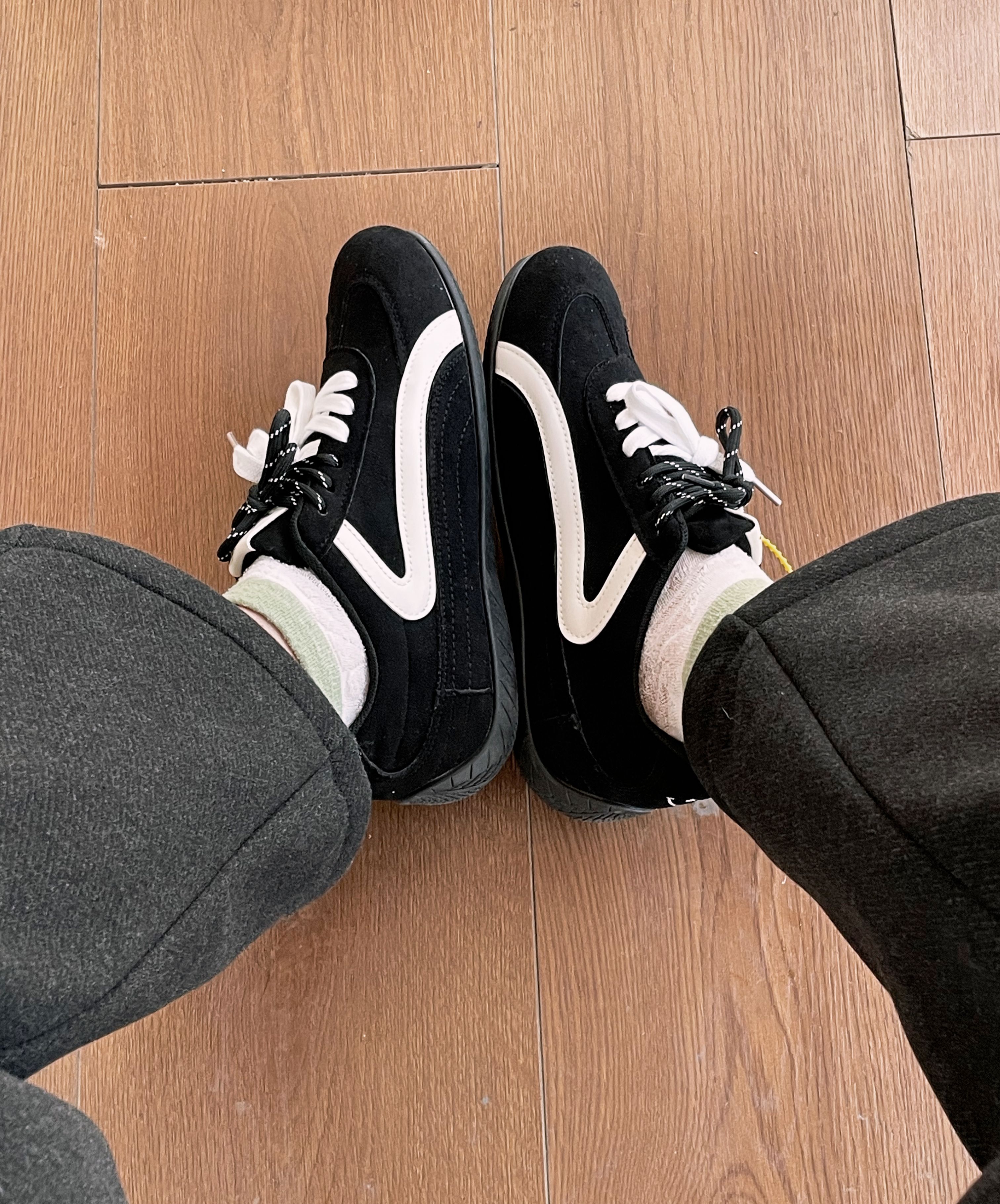 这双鞋子 它竟然有支撑力 穿上明显感觉是有弧度的 穿起来一点不累脚 颜色耶很漂亮 漂亮到随便一穿就时尚感拉满, 约会、通勤、日常出去玩都超合适 不仅适合早秋穿 这个季节穿也一点不逊色 冬天穿德训鞋真的美炸了啊