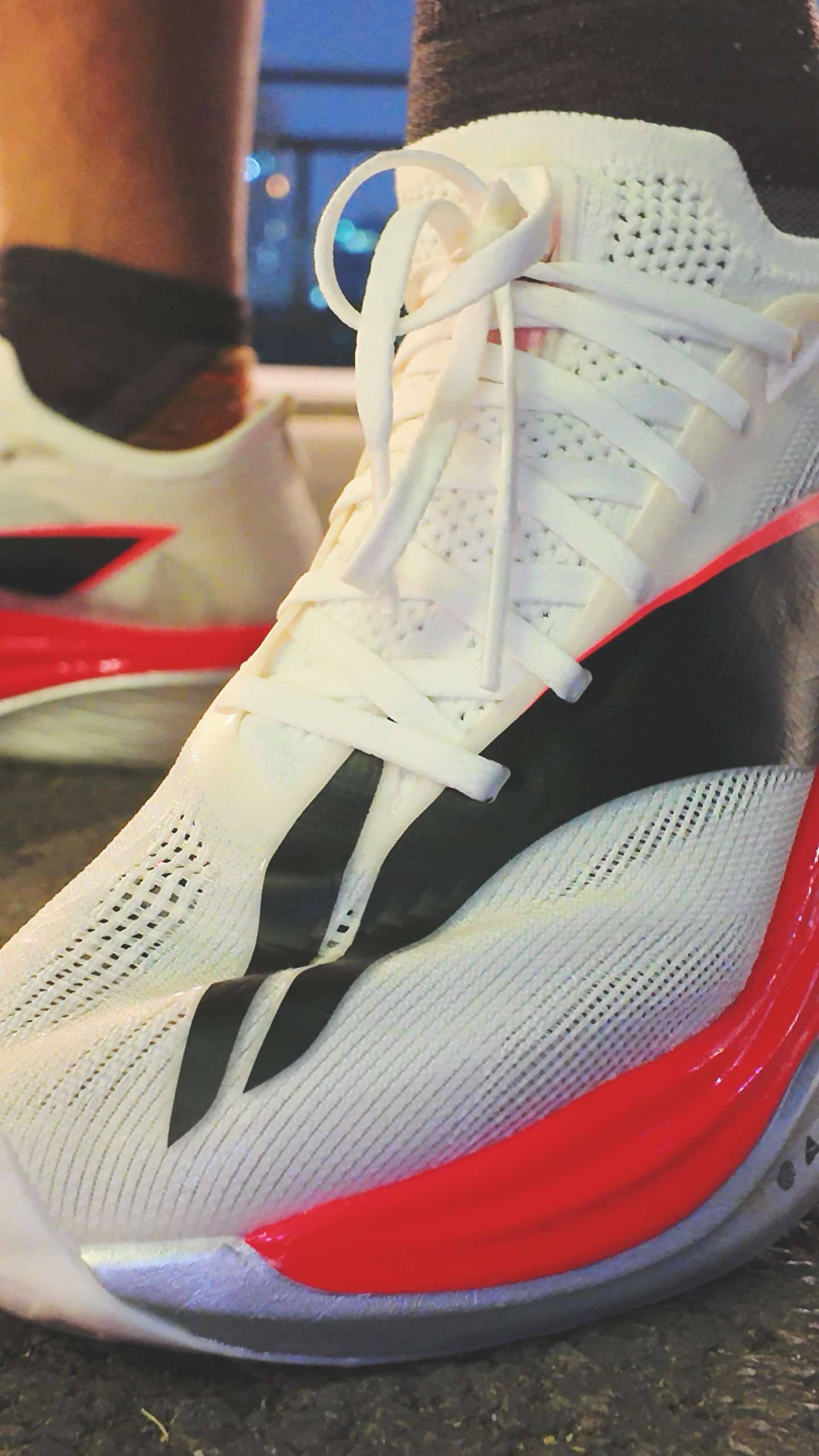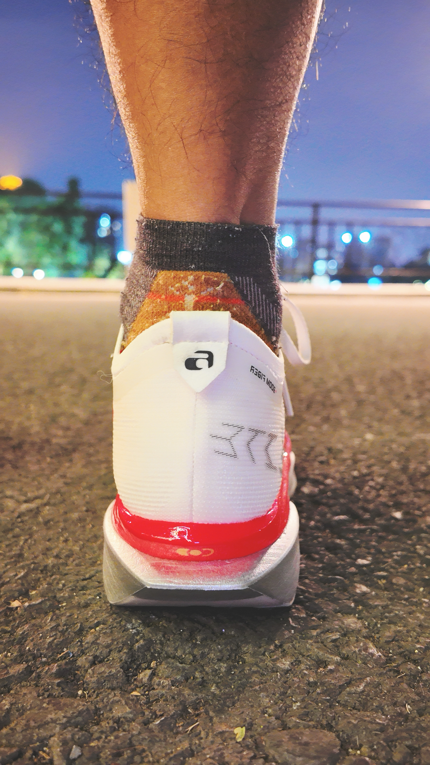 今晚更加确定一个问题,从我个人感受来说,6E后掌的大切角,确实不适合后掌落地,尤其速度慢的情况下(500-530往后),后掌内侧支撑几乎没有。 但配速430以内全掌落地,只要身体稍向前倾,触地是稳的。 大家别觉得这是6E的缺点,这完全就是一双倾向前掌落地跑法的PB神器,且触地时间越短,中底回弹速度越猛烈。 也许很多人会想,6E和5E对比怎样?我的老看法是,不需要对比上一代,6E可以说是全新的...