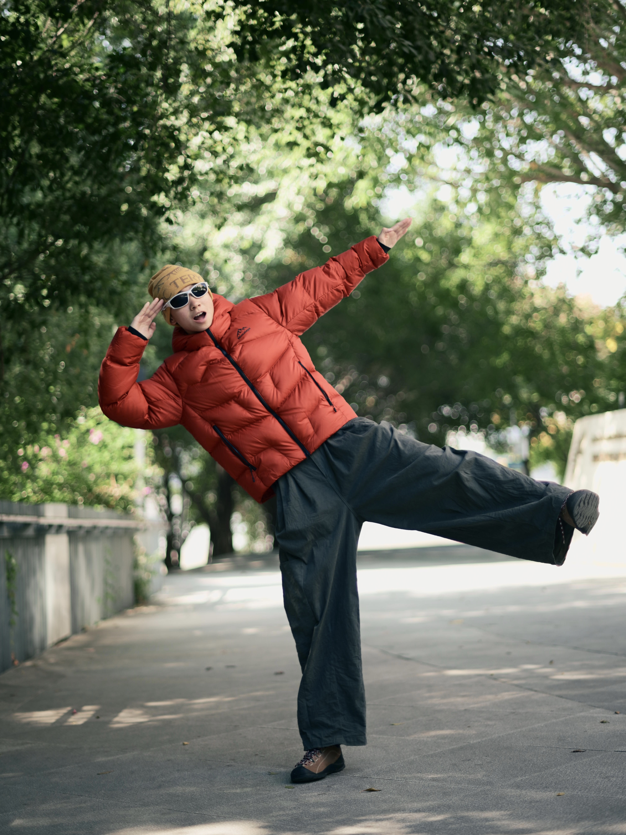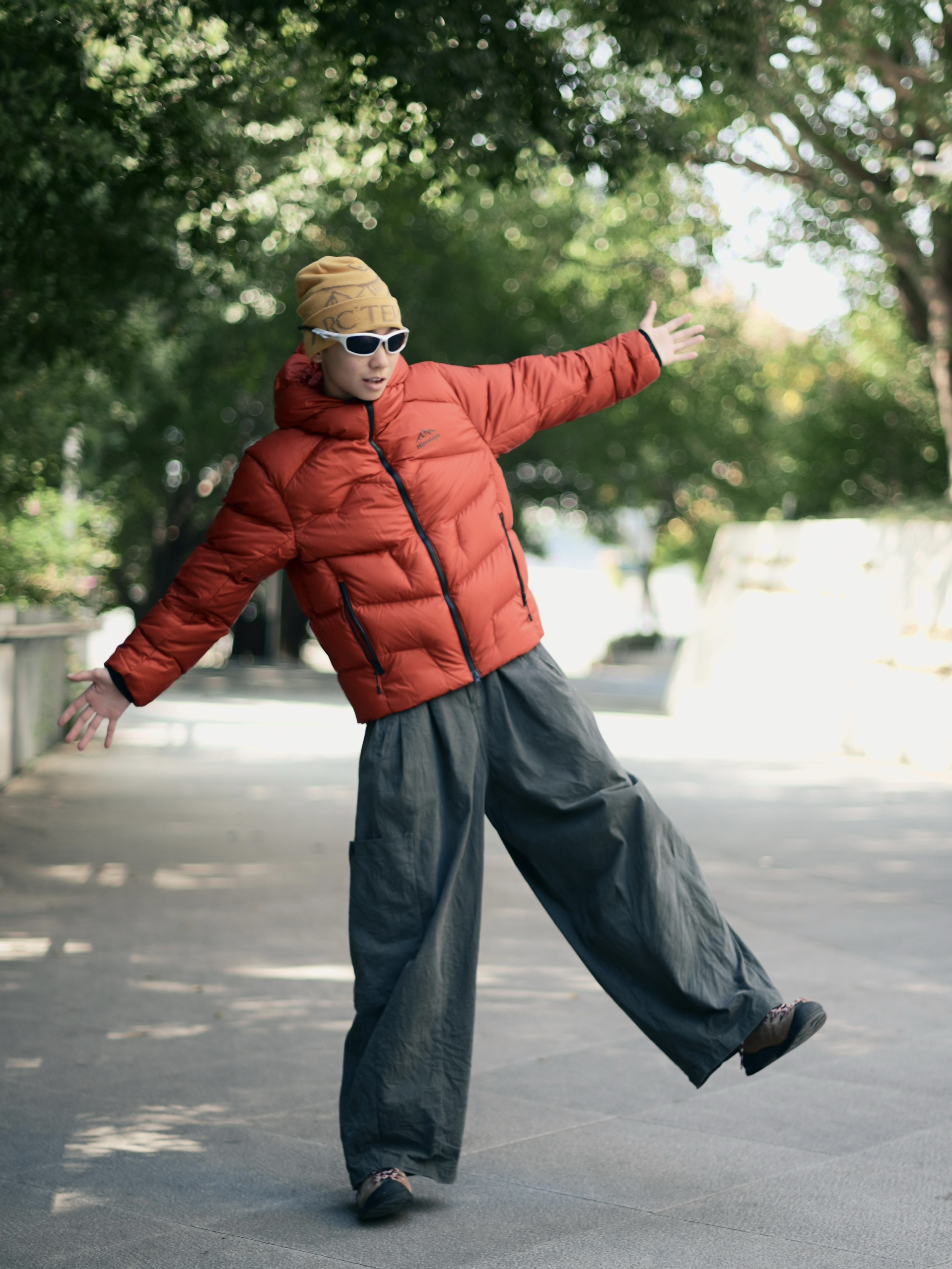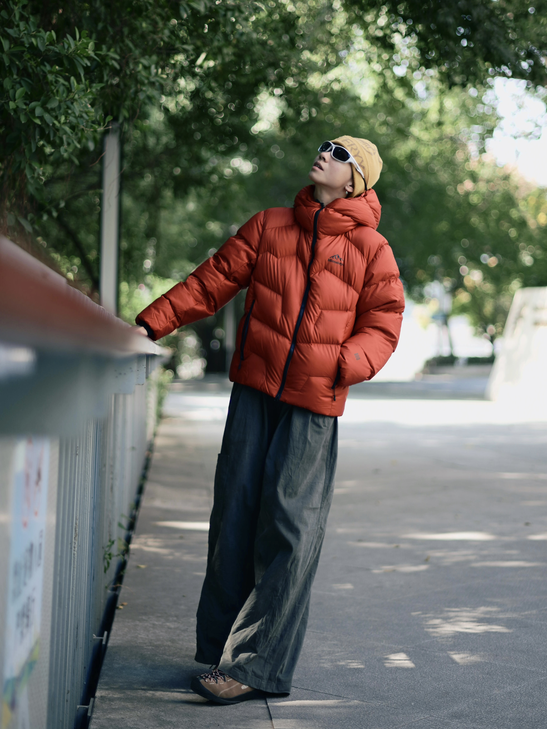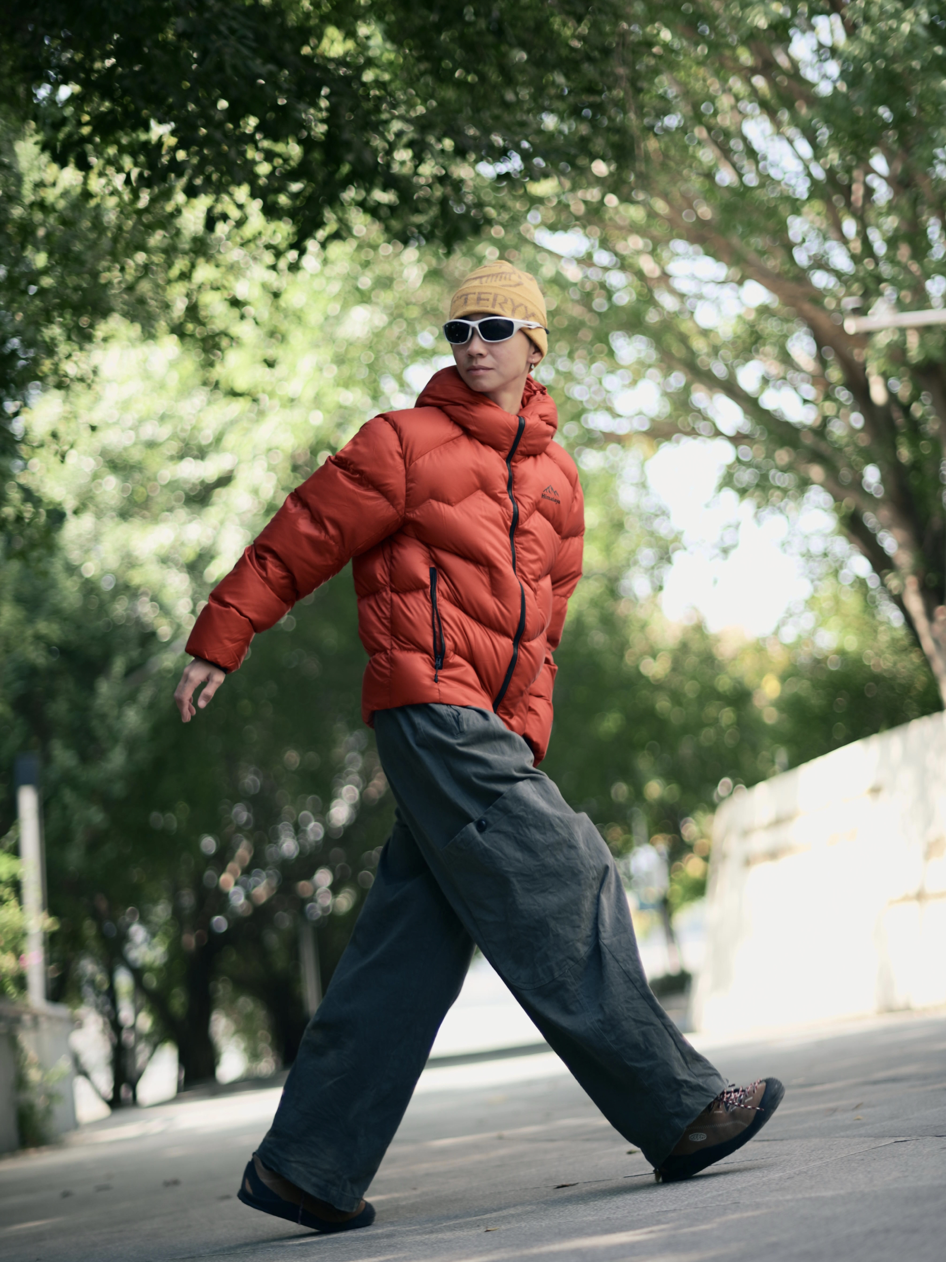 172CM|55KG 👔:m👖:m|👟:39码 今日份街头造型,上身喜马拉雅红色短款羽绒服点亮秋冬穿搭 -20℃可应对的700蓬白鹅绒填充耶✌️ 搭配一条深灰色阔腿长裤 戴上黄色针织帽与白色墨镜作为点缀,为整体注入一抹亮色与轻松感。