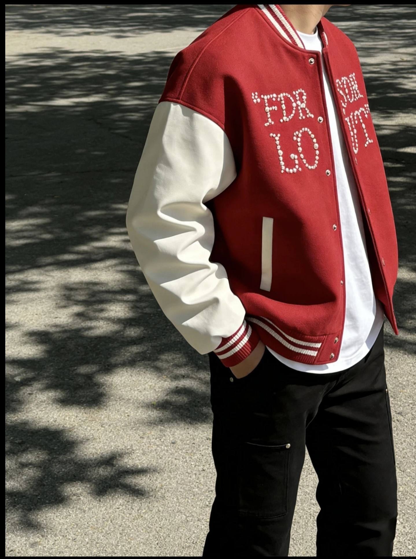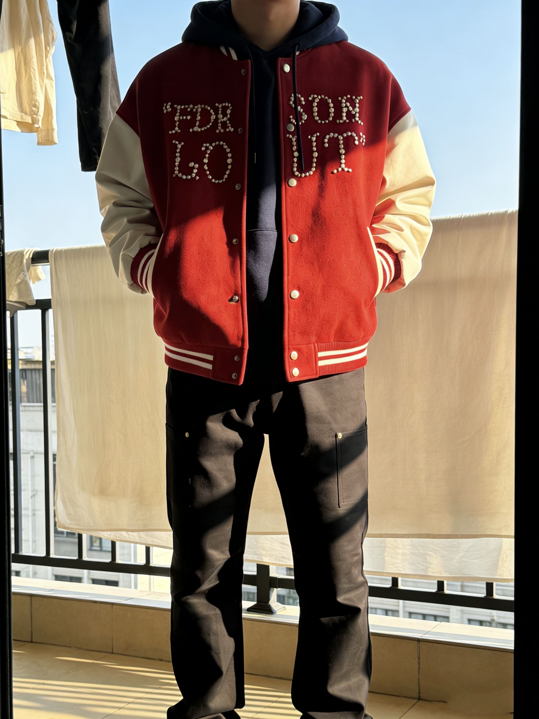 本篇笔记关联了FDR 美式珍珠撞色印花棒球领夹克 男女同款 H5047 红(夹棉款) H5047-服等商品,为用户提供真实的使用体验和购买参考。