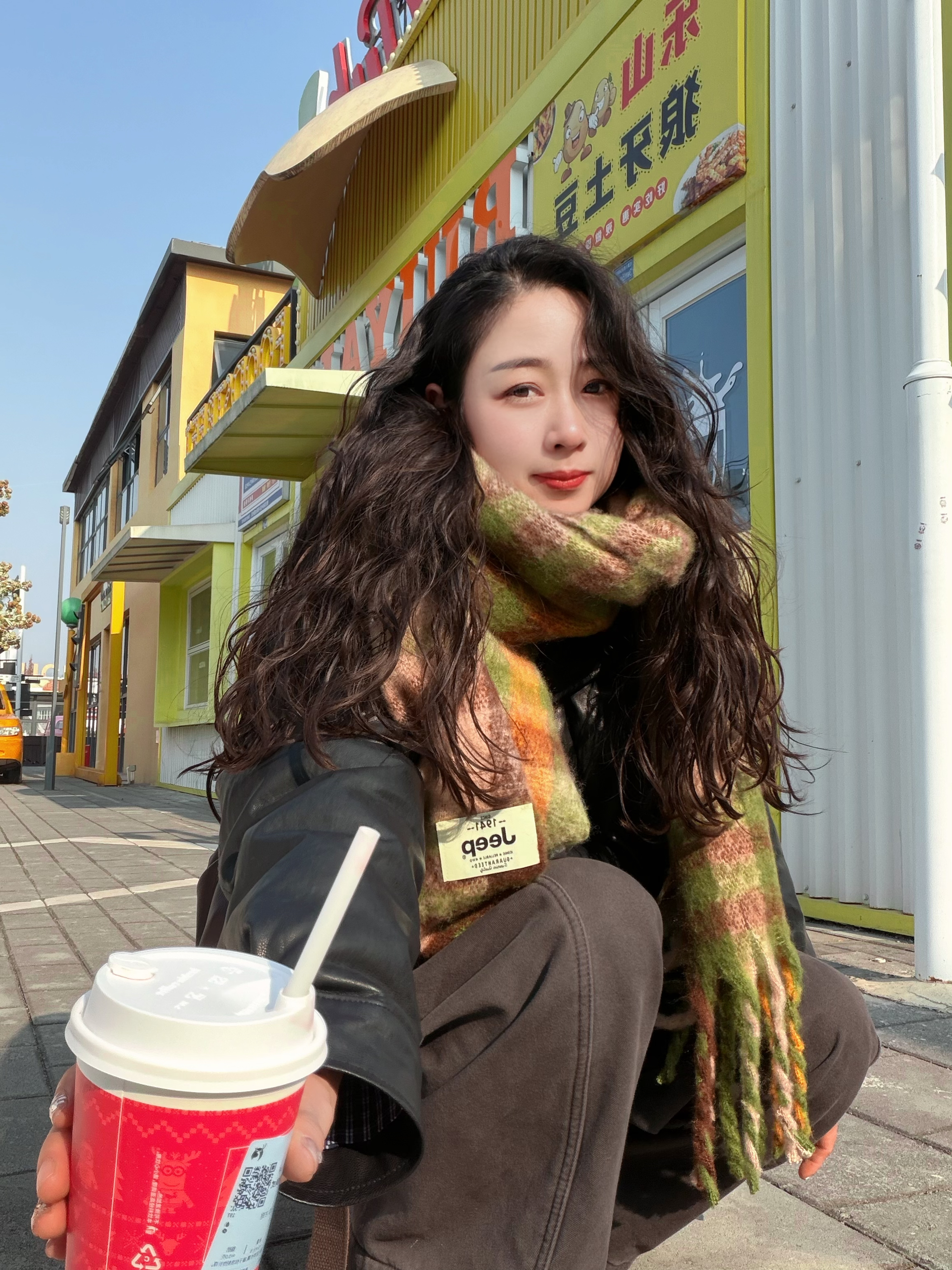冬天出门当然少不了一条围巾啦! 戴上不仅软软糯糯,而且拍照也好出片呀!