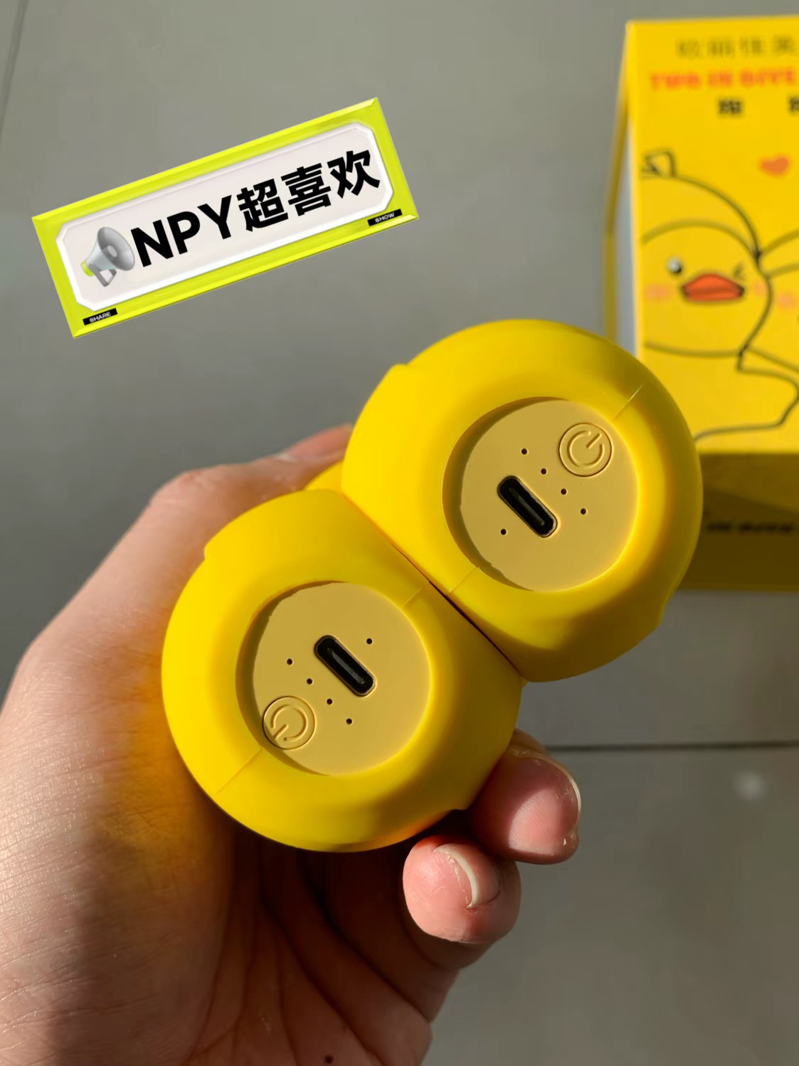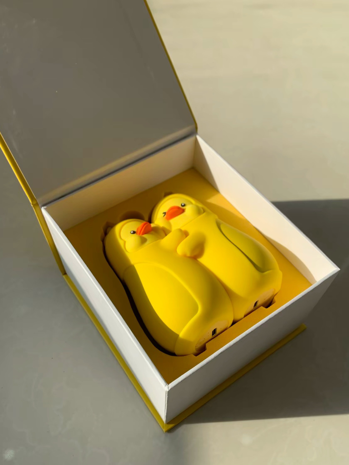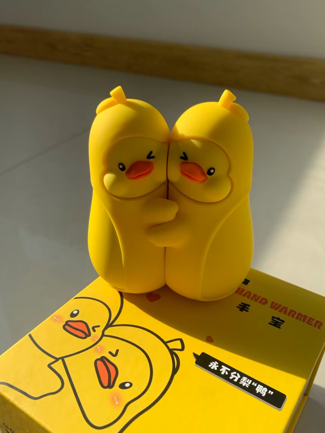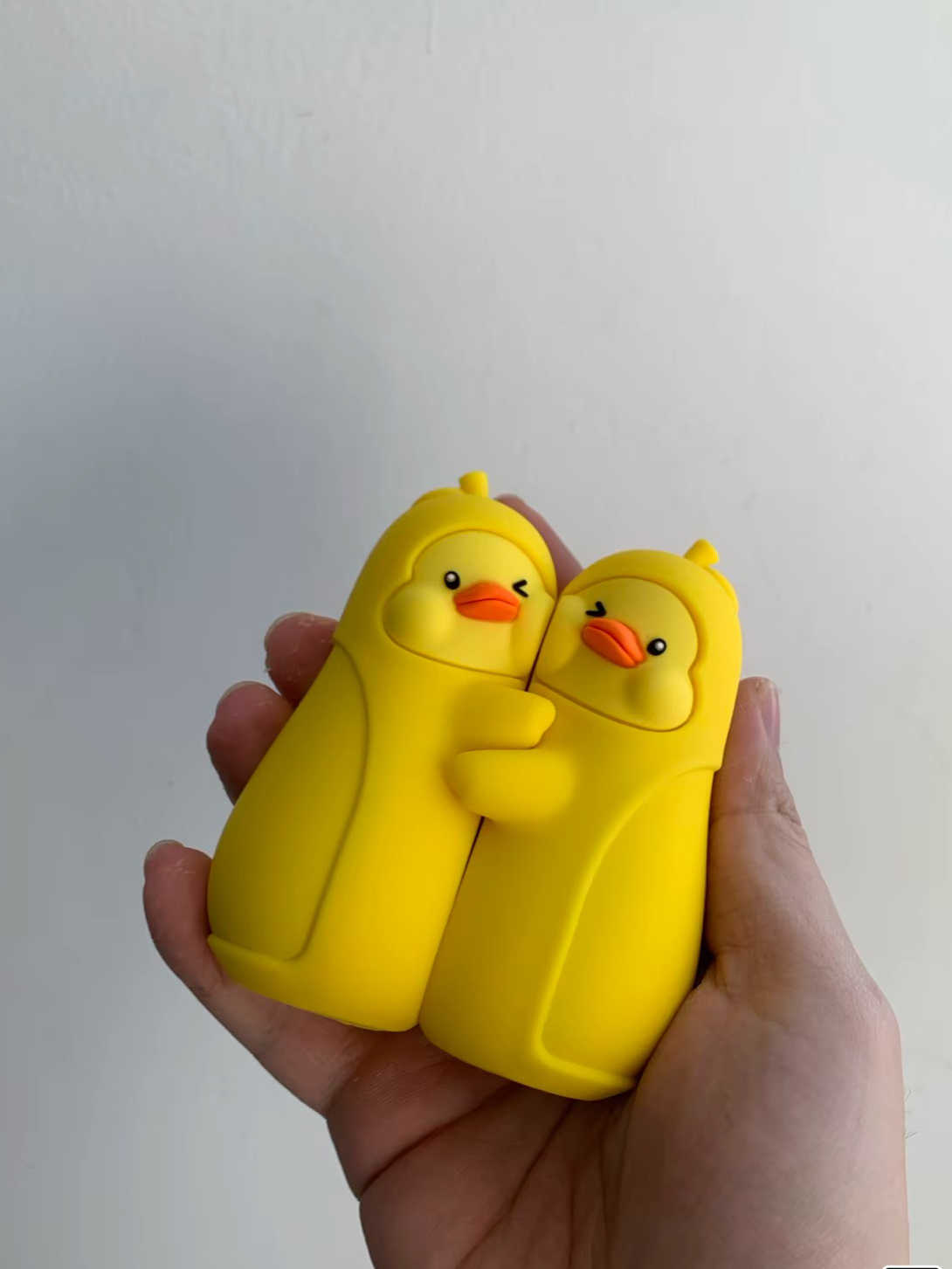 最近被这对小黄鸭暖手宝圈粉了,亮黄色的小鸭子造型软萌到想揣兜里,最妙的是能拆成两只单独用,通勤攥一只放口袋,另一只搁办公桌上暖手,不用凑着用太方便。 材质摸起来像肌肤一样丝滑,握手里温温的不硌手,像我这种冬天手冰的打工人,挤地铁或敲键盘时揣着它,暖乎乎的能撑半天,可爱又实用~,还可以作为送给NPY的贴心小礼物,让这个冬天都有你暖暖的关怀