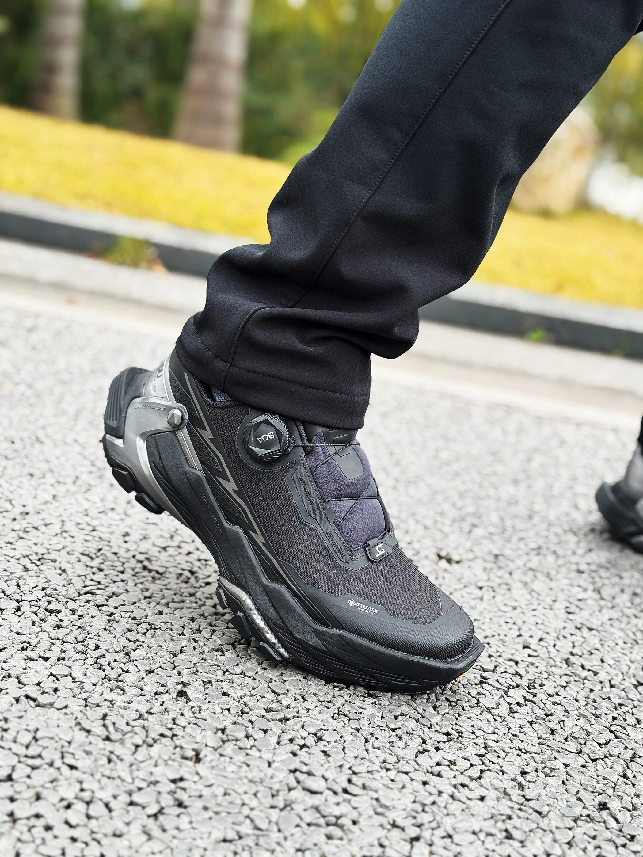 很早就被这双凯乐石FUGA DU 黑山大坡王种草了 整体黑武士装扮太酷了! BOA绑带系统是我最喜欢的 让鞋子穿脱起来很方便!鞋子整体上脚很轻便 网布鞋面透气舒适 防水防泼也很实用!中底采用了超临界 脚感很舒服 爬山徒步久了不会觉得累脚! 黑色又充满机能风的造型日常通勤穿也不错 尺码正常选择!