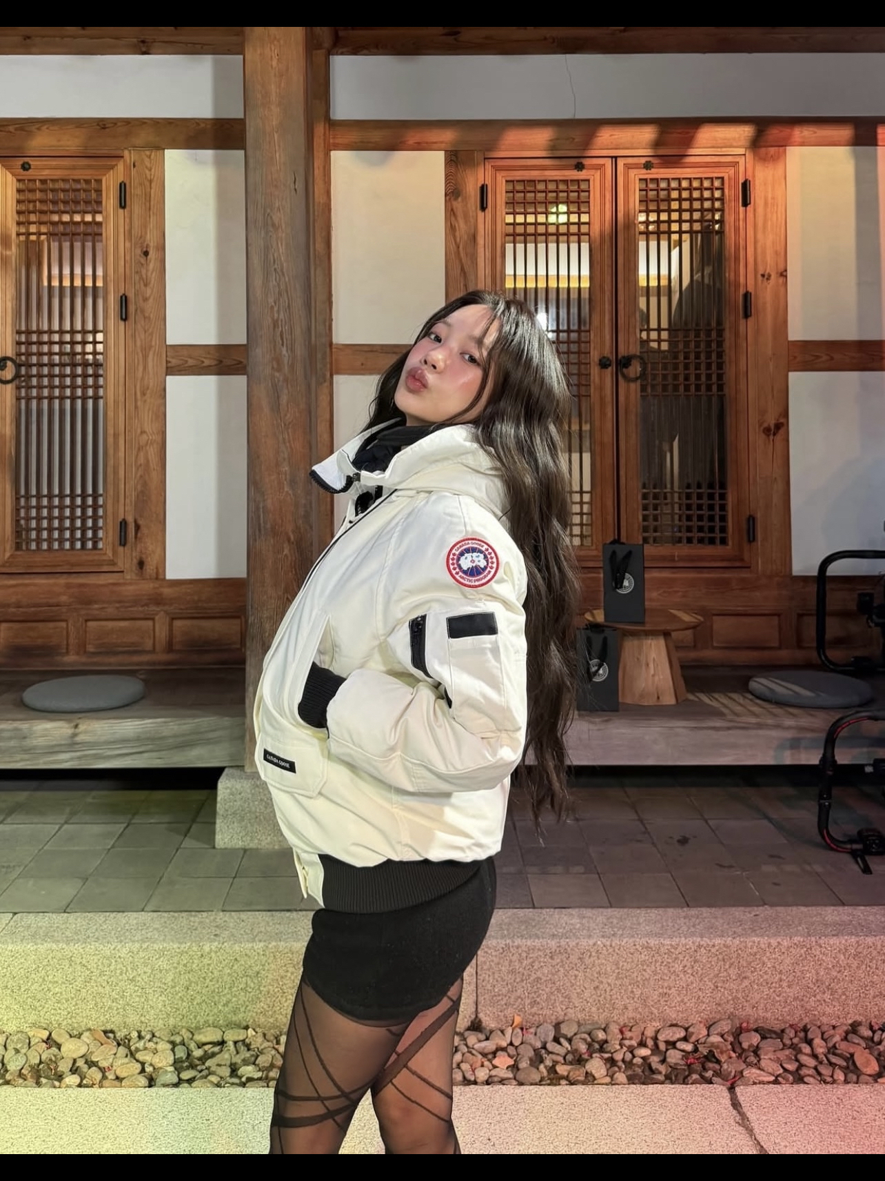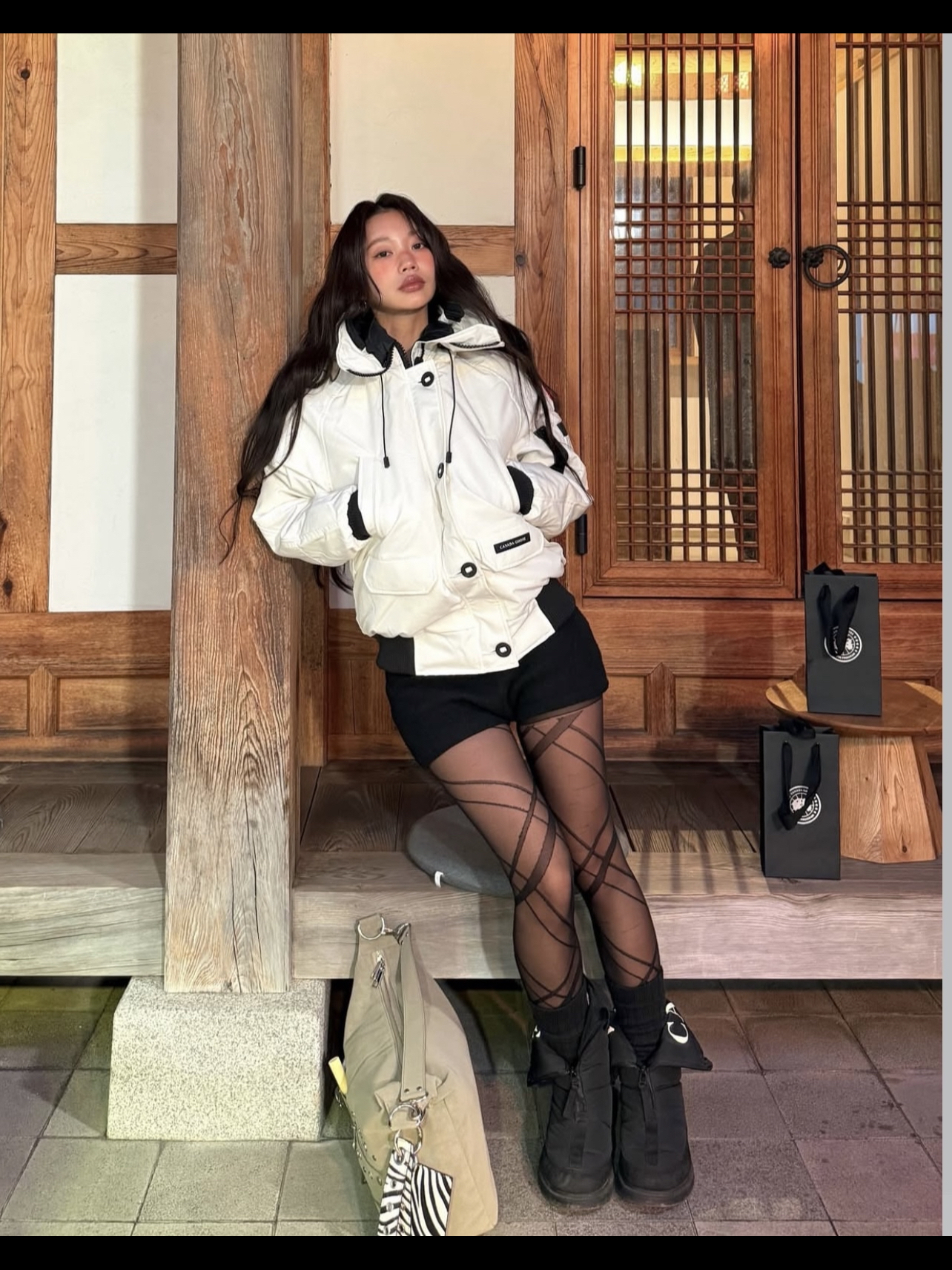 被ins博主mulbada的冬日造型帅到!白色大鹅外套搭配黑色短裤,再配上交叉绑带黑丝,甜酷辣妹感直接拉满,同品牌冷帽一戴,细节感也狠狠拿捏~ 厚重的外套和下衣失踪的穿法形成反差,保暖又显瘦,冬天这么穿出门,回头率直接拉满!