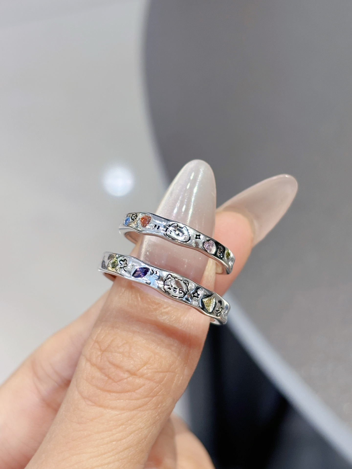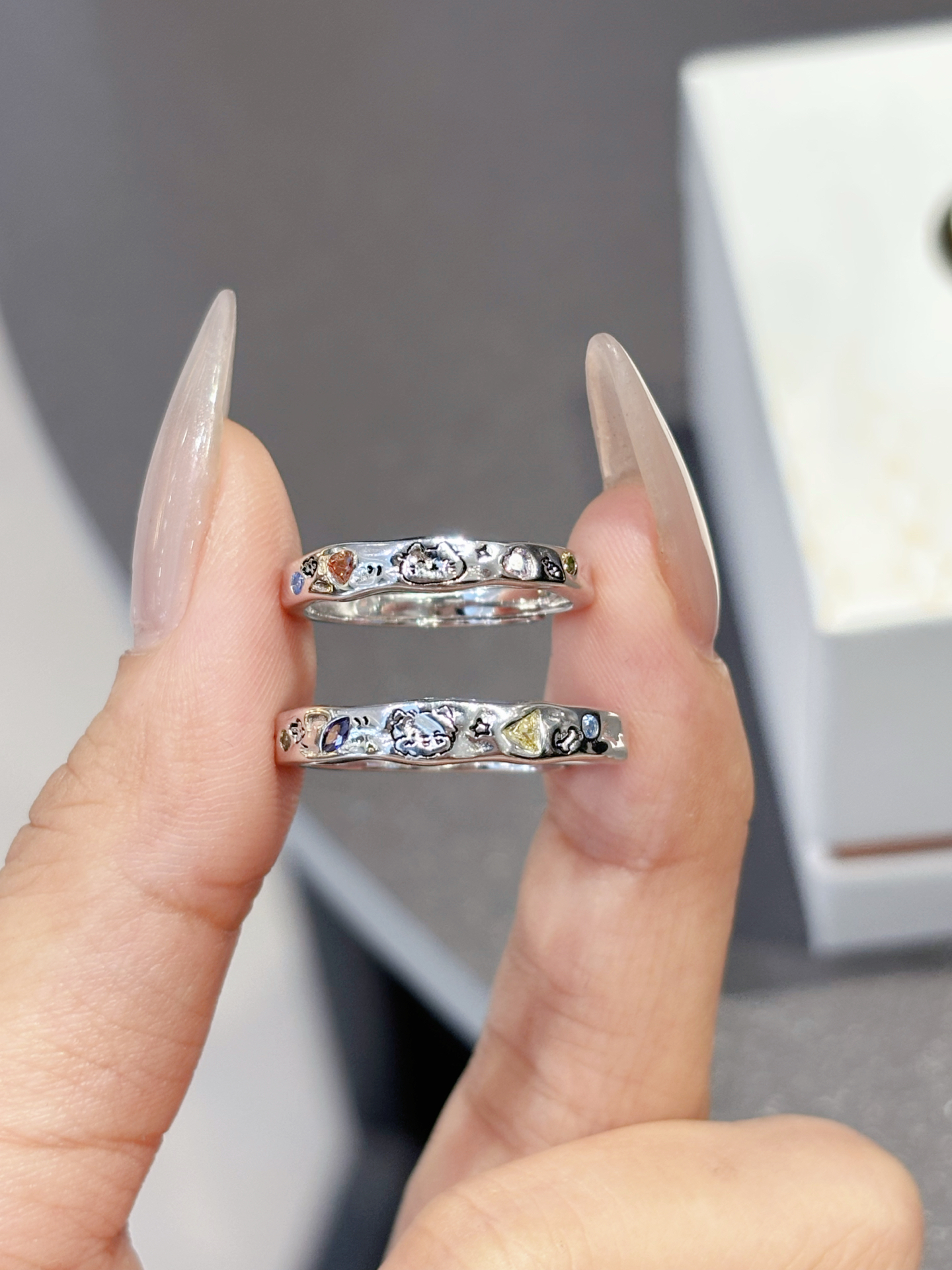 谁懂啊家人们!我发现这对情侣戒好适合恋爱脑戴🥹 设计是简简单单那种,不会夸张到像戴了个“信号灯”,但彩色锆石一点缀又很灵动俏皮~实物拿手上质感也在线!七夕和对象约会戴,主打一个浪漫氛围拉满💕 不过尺码选择有点少,手粗星人得谨慎点选~
