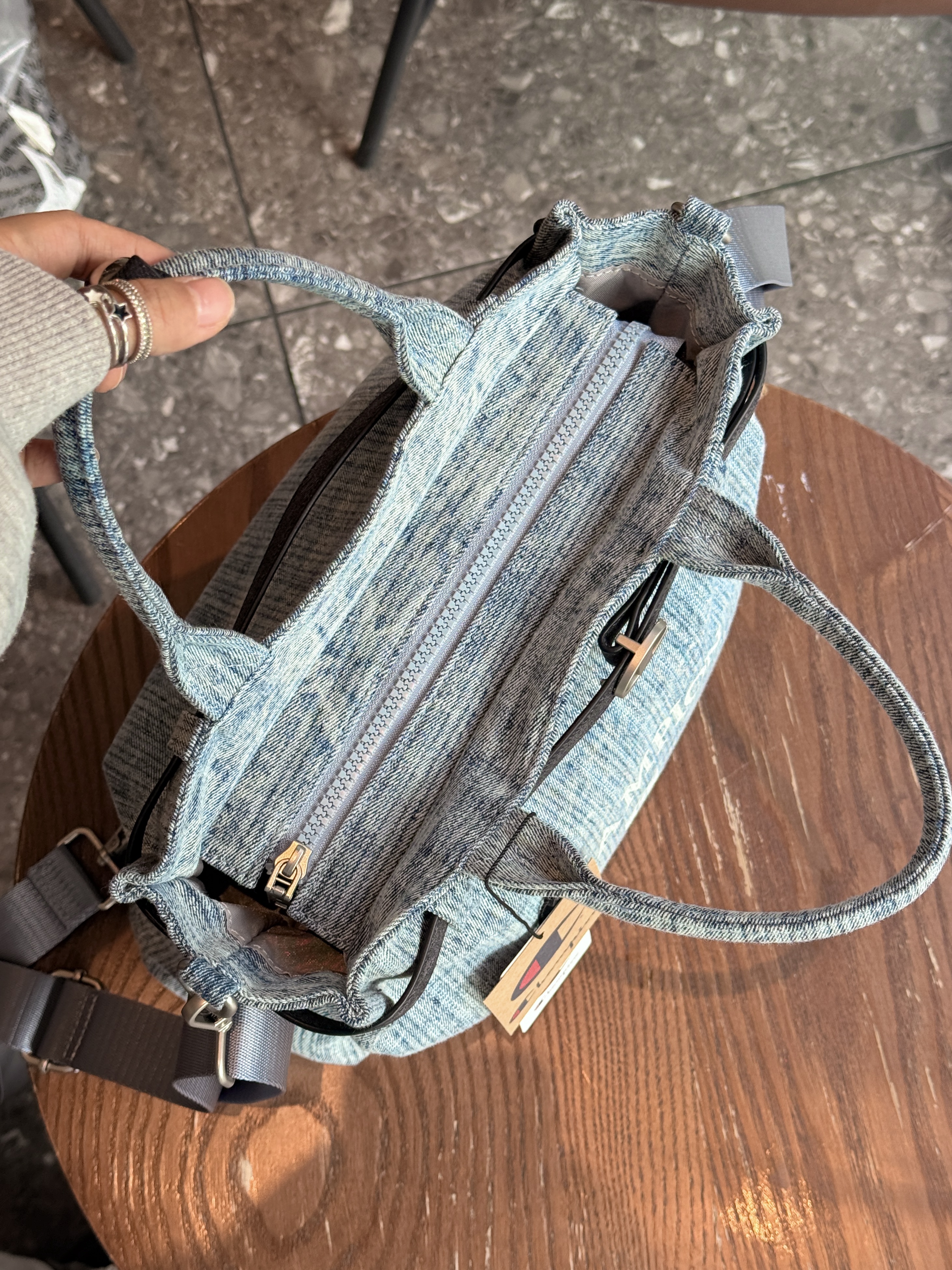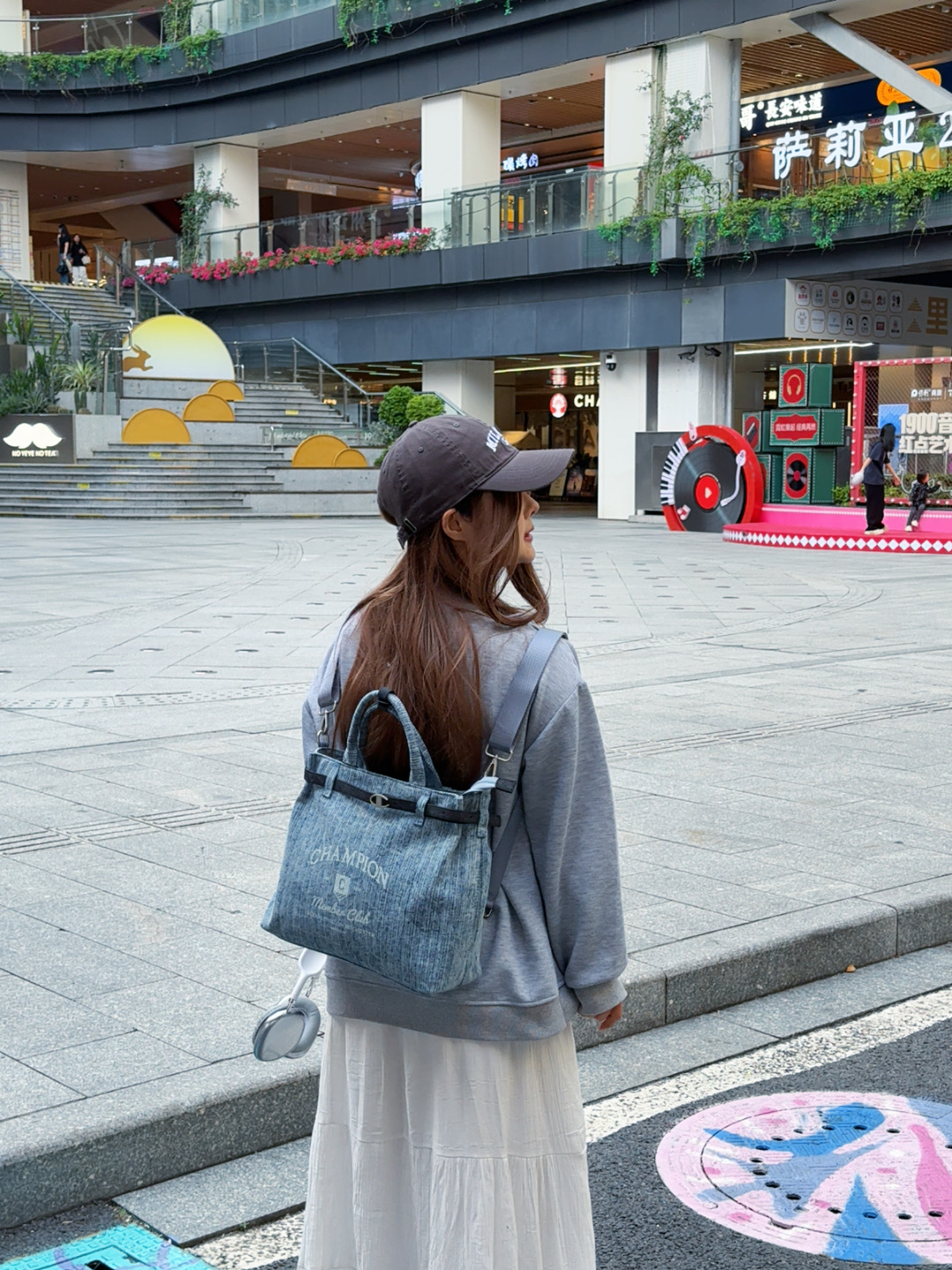 谁懂啊!今天背这个包出门,闺蜜说我像在韩国街头乱窜的女高~皮带设计好点睛,手提斜挎双肩背都ok,主打一个百变!牛仔布软乎乎的,装笔记本🎧 完全没问题~不过我觉得它自重不算轻,背久了肩膀有点点累,但架不住它好看哇,女大冲就完事儿!#冠军champion #秋冬本命托特包 图片源于网络,侵删