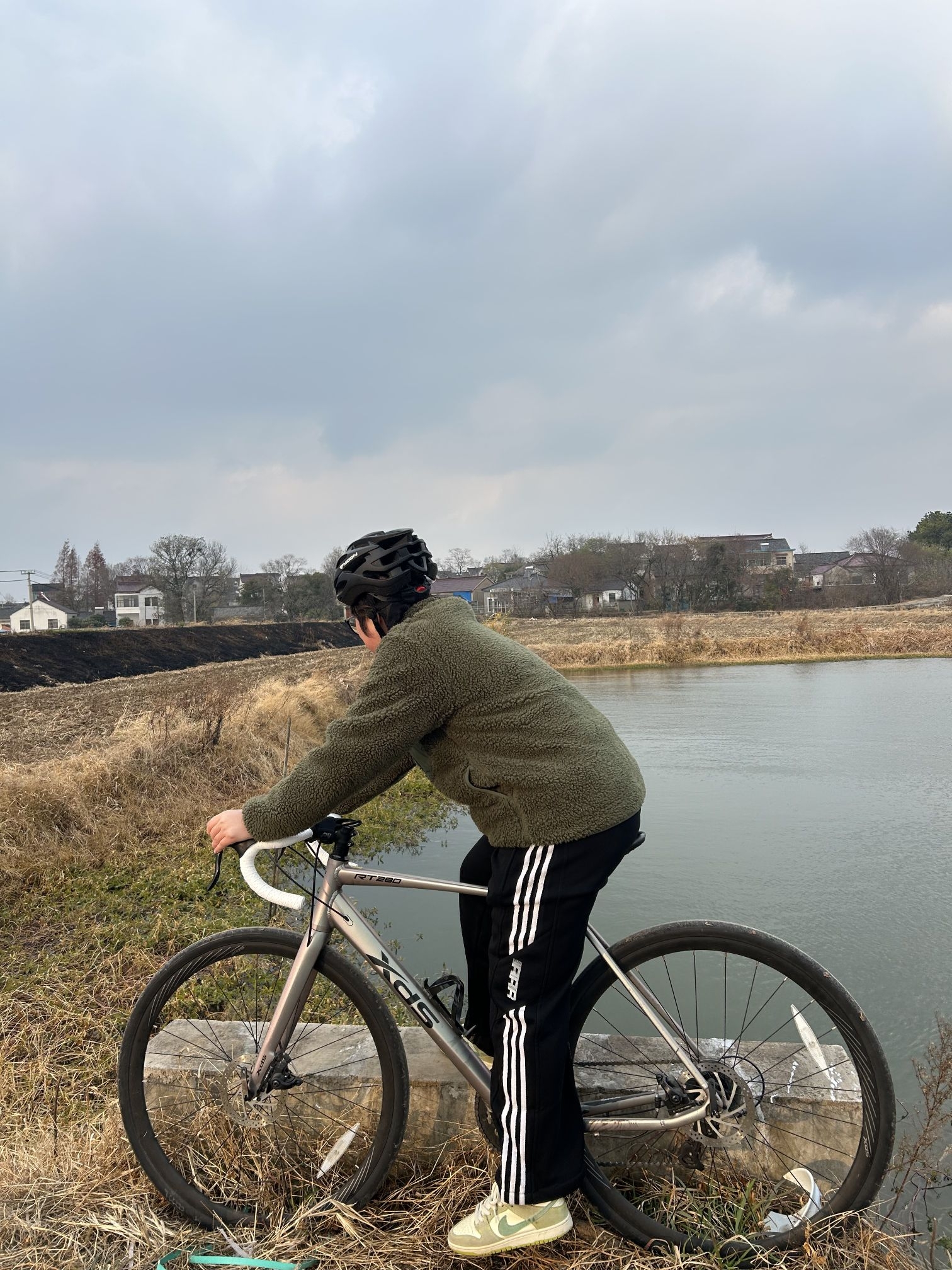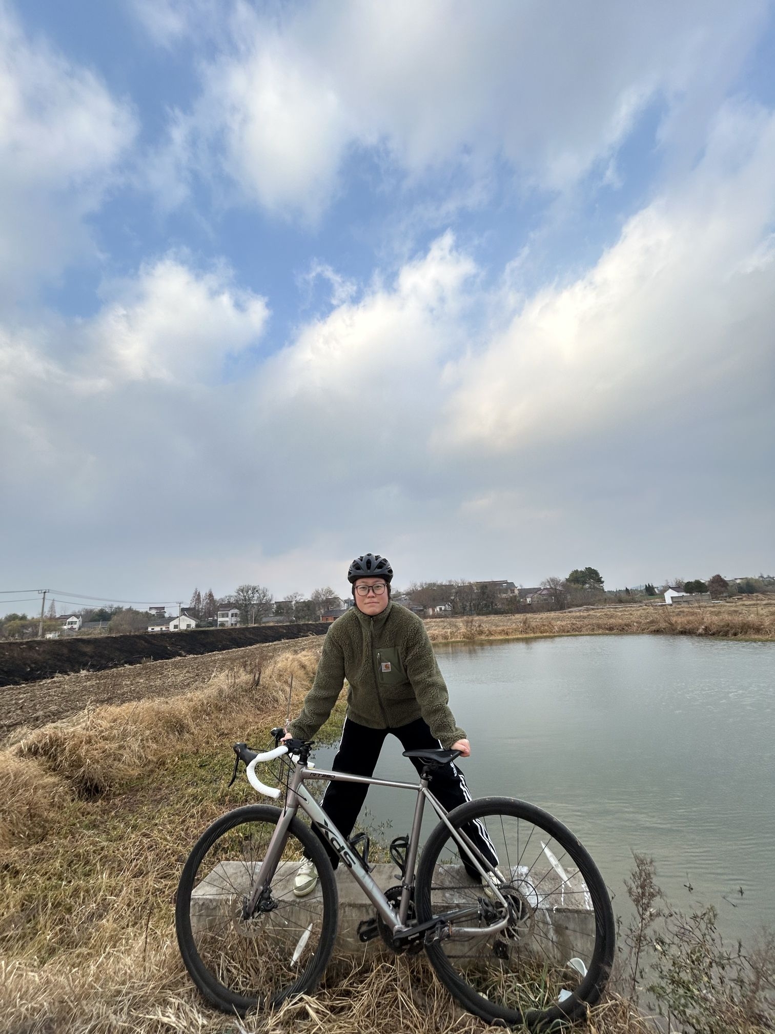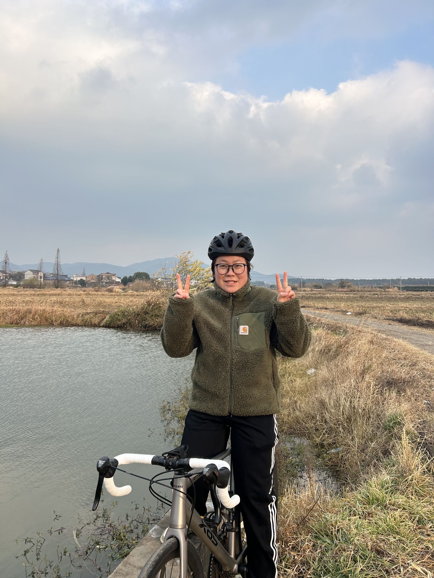 哈喽! 我是刘根! 今日骑行超保暖穿搭! 👔卡哈特羊羔绒,虽然有一点臃肿,是因为我里面穿了加绒卫衣,保暖效果杠杠的! 👖这条直筒长裤真的百搭,搭任何颜色的衣服都不会突兀,而且很遮肉! 👟依旧青苹果🍏dunk! 清清爽爽一整套,冬日骑行一定要做好保暖!