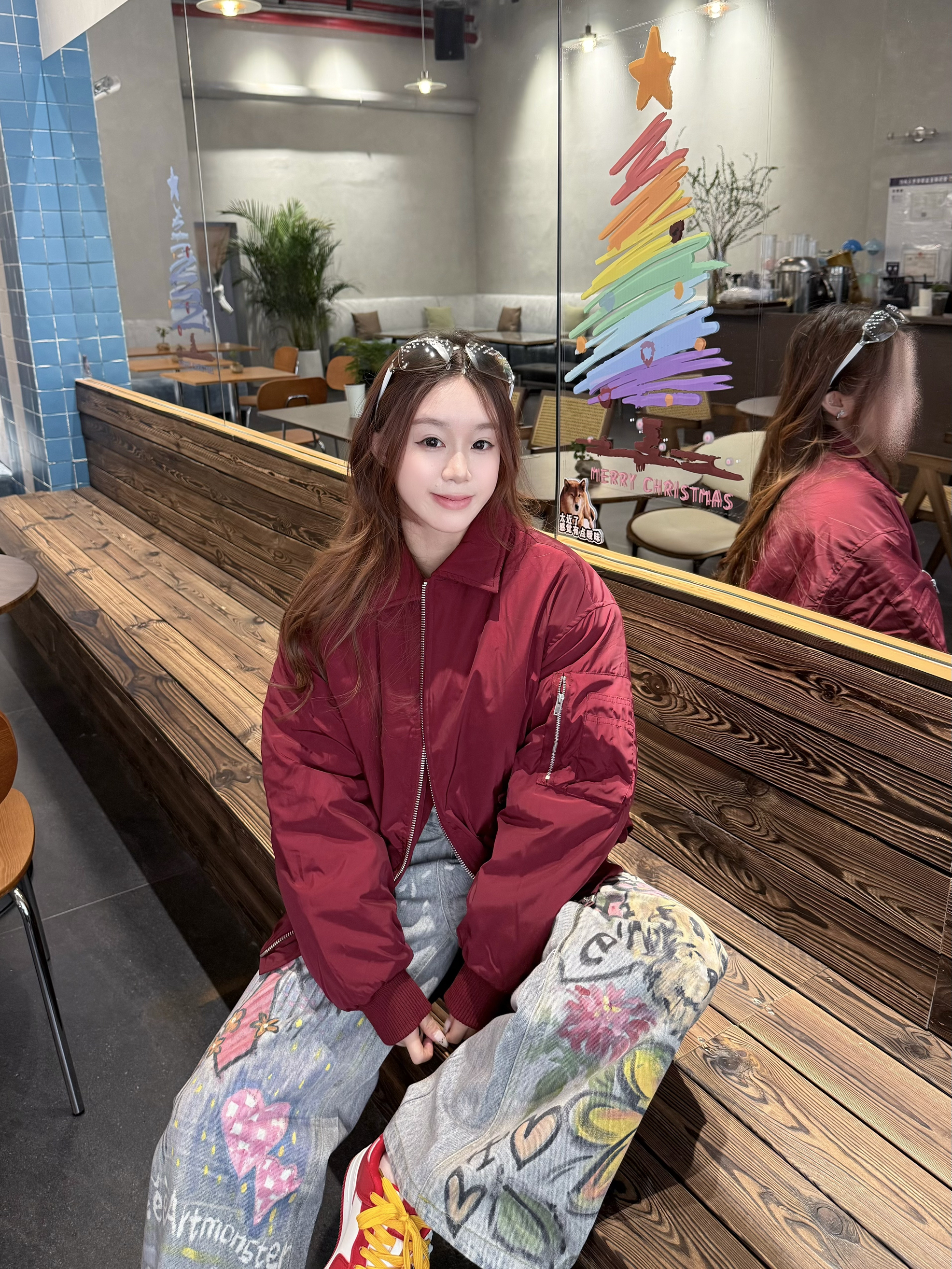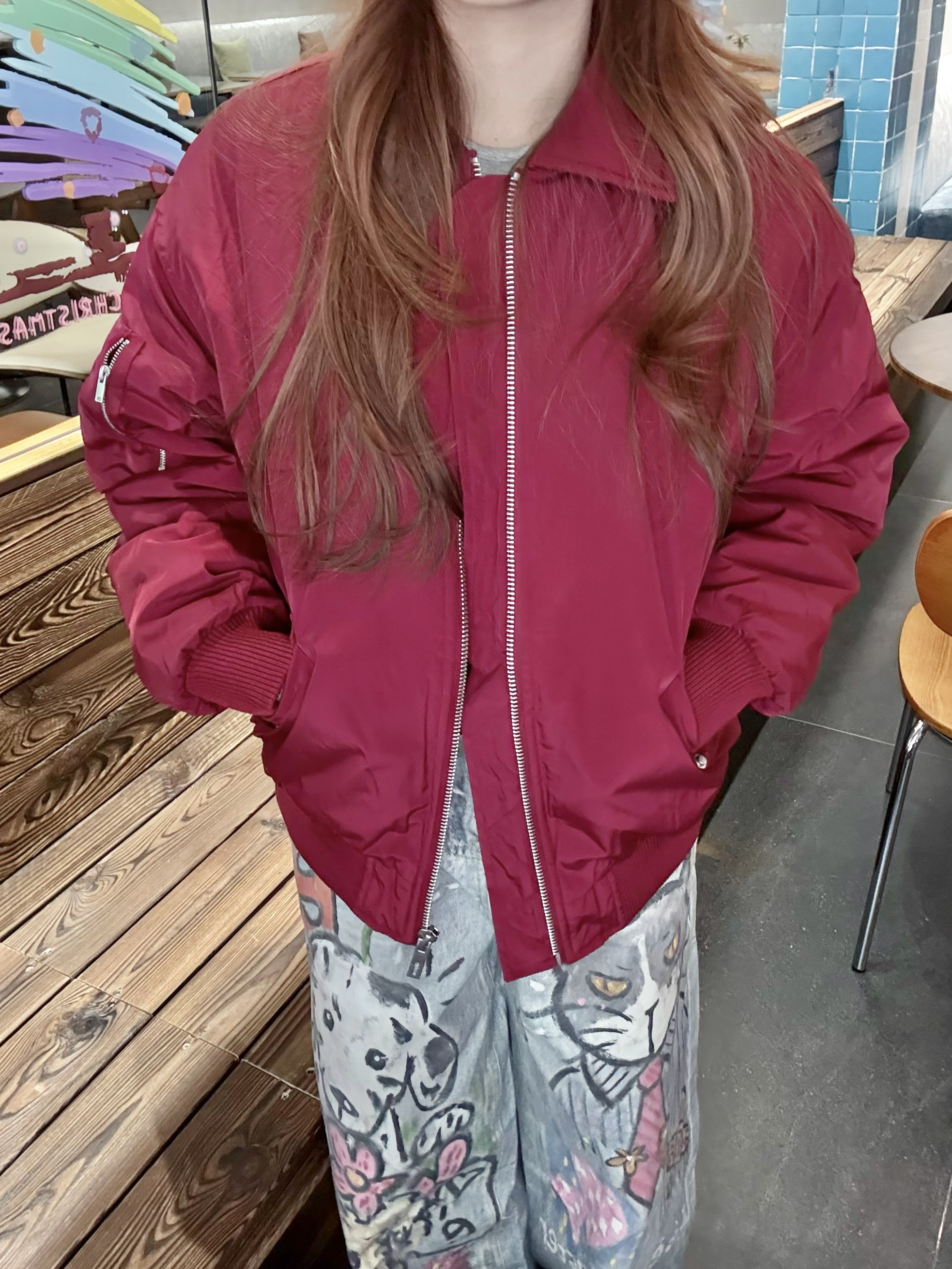 圣诞跨年战袍我就选这套啦 穿出氛围感的红色夹克棉服 冬日里的一抹红🧀做叠穿好有活力 外面已经有了大面积红色 所以里面就不要再叠加红色啦 南方现在还不算冷 十几度的天气我在里面穿了修身灰内搭➕印花牛仔裤 嘿嘿这个圣诞新年还是喜欢复古氛围感的感觉 大家的圣诞都打算穿哪套呀?欢迎分享👏