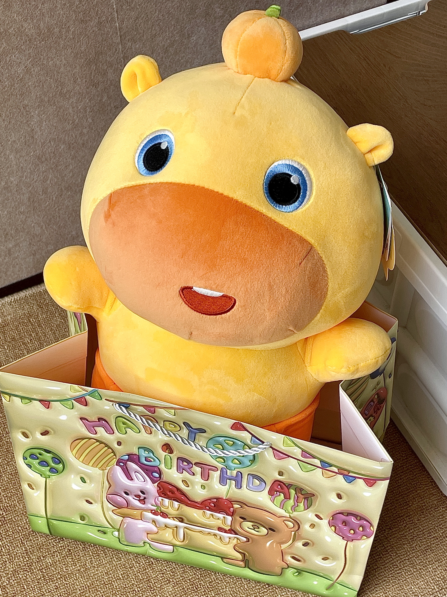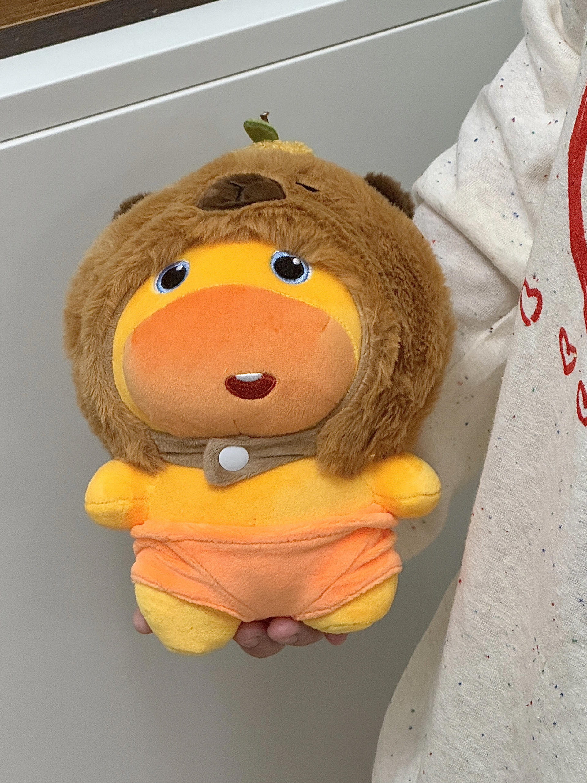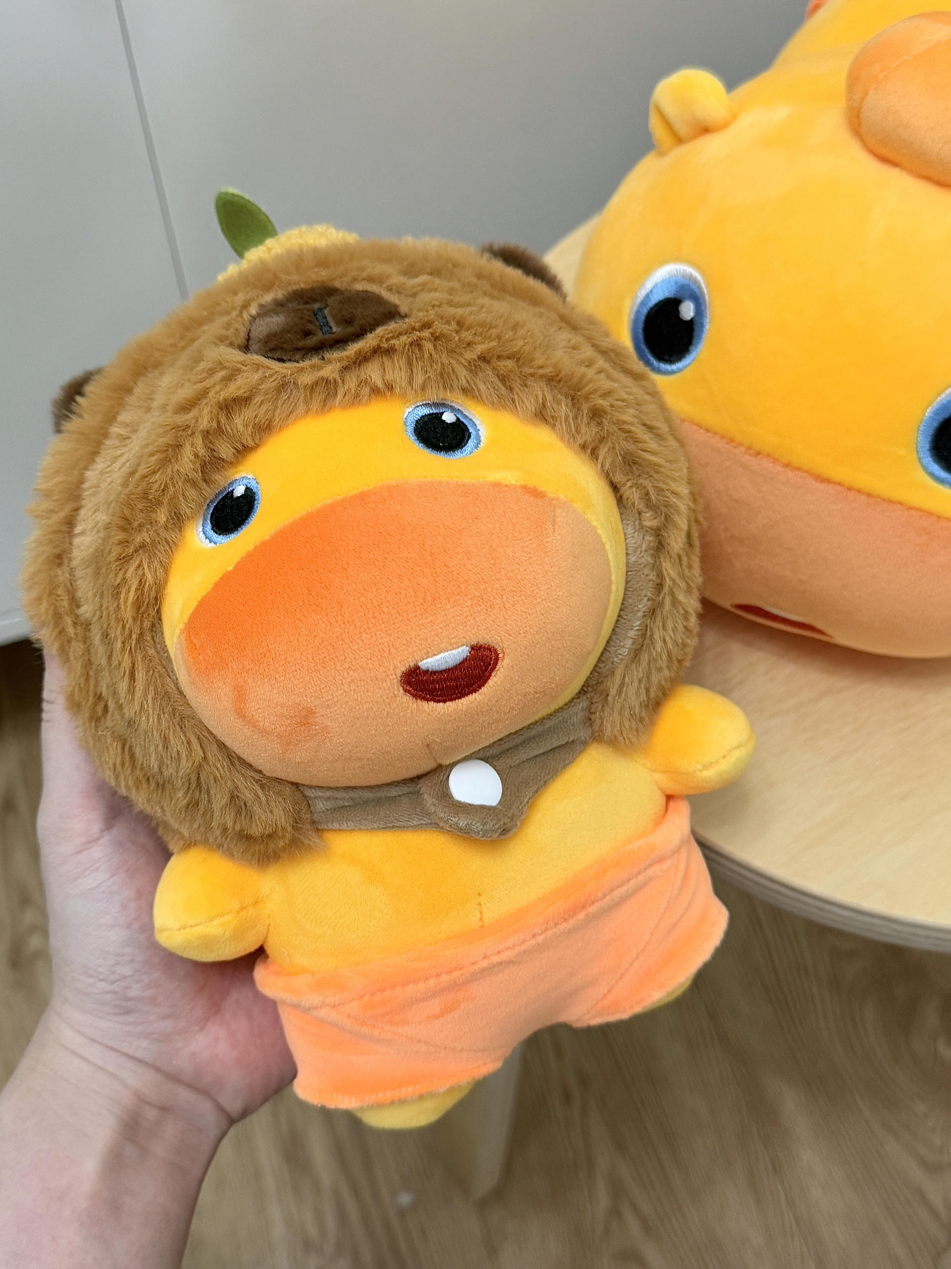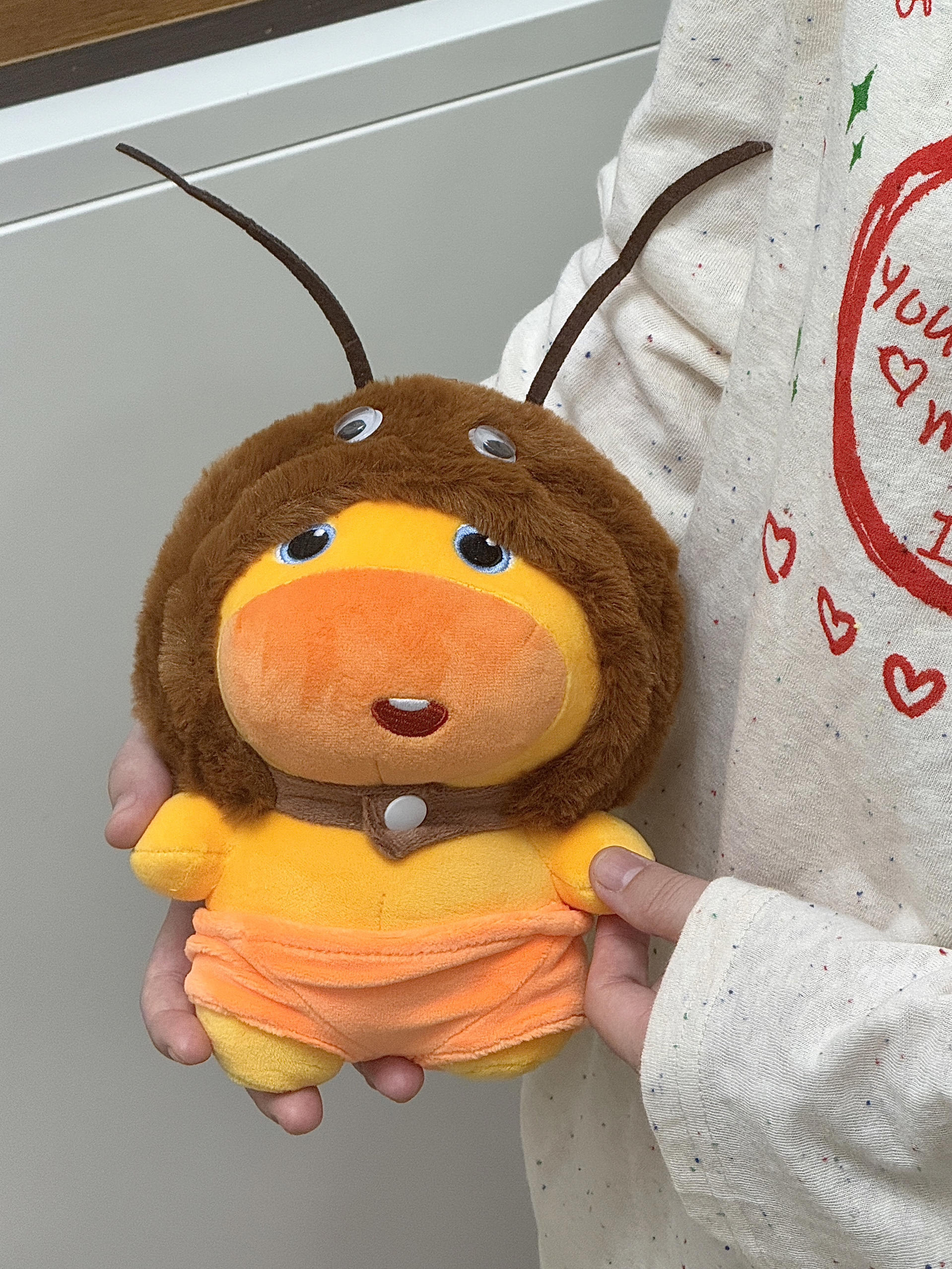 嘿嘿新拥有了一个很可爱的噜噜 有两个头套喔~换装后敲可爱的! 一个是蟑螂头套另一个是卡皮巴拉头套 小蟑螂的头套还有两个触角好还原 头套和娃的手感都很舒服毛茸茸的不扎手 不算很大的噜噜 手持抱着是刚好把玩滴! 刚好跟我的睡觉搭子趴趴噜噜一起放 嘿嘿泰搭配了感觉睡觉😪都更安心啦