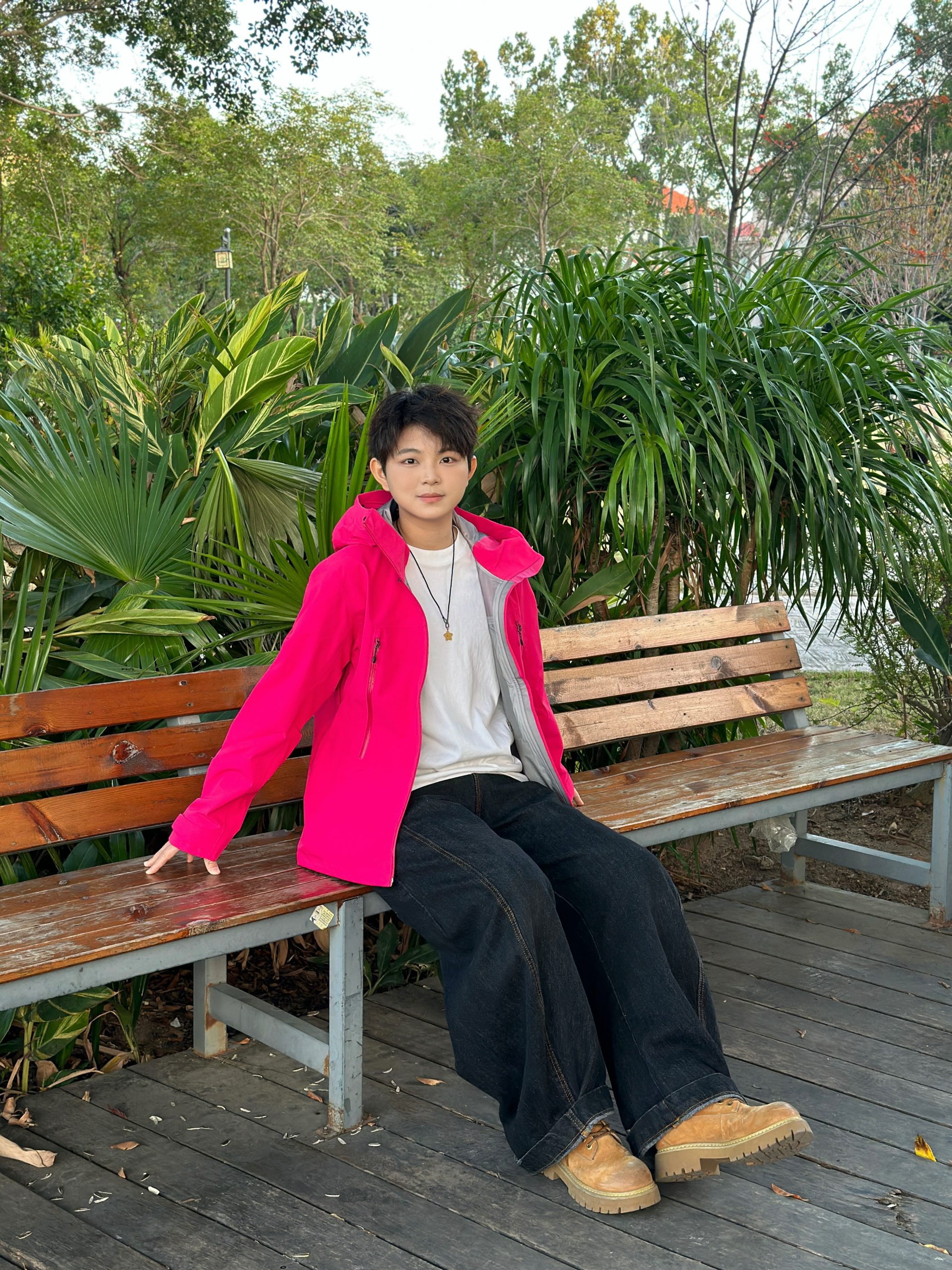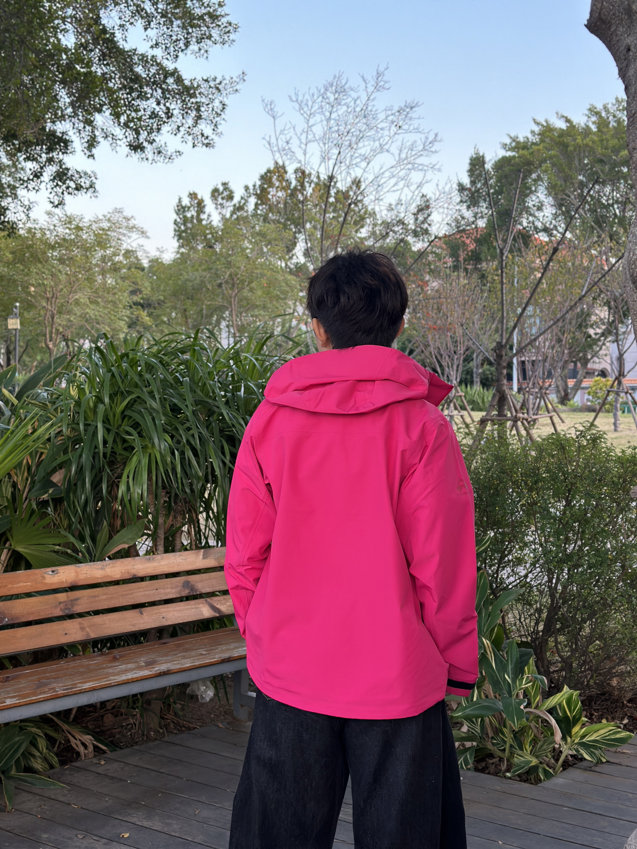 秋日出游的穿搭C位,被这件玫红冲锋衣承包啦~ 亮色系的冲锋衣自带活力感,和户外的绿意撞出清爽氛围,宽松版型藏肉又自在,内搭白T就很随性。 防风又百搭的冲锋衣,让秋日出门的快乐多了一份实用主义的浪漫✨