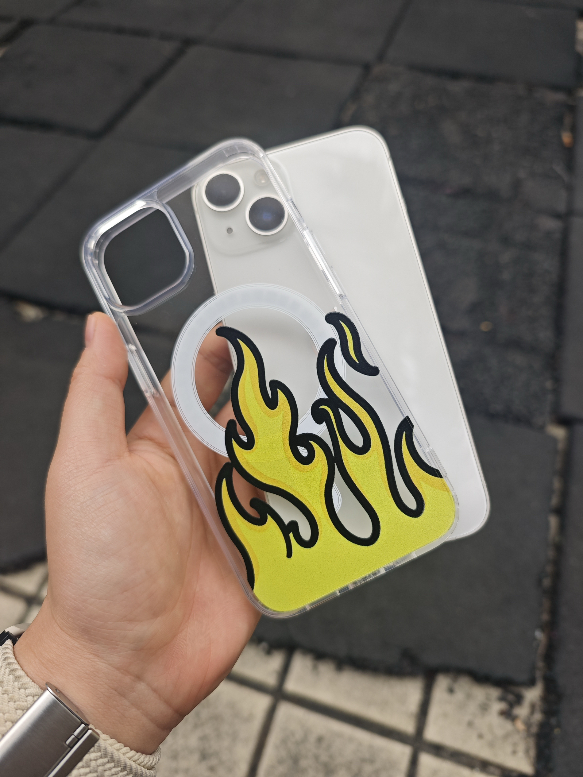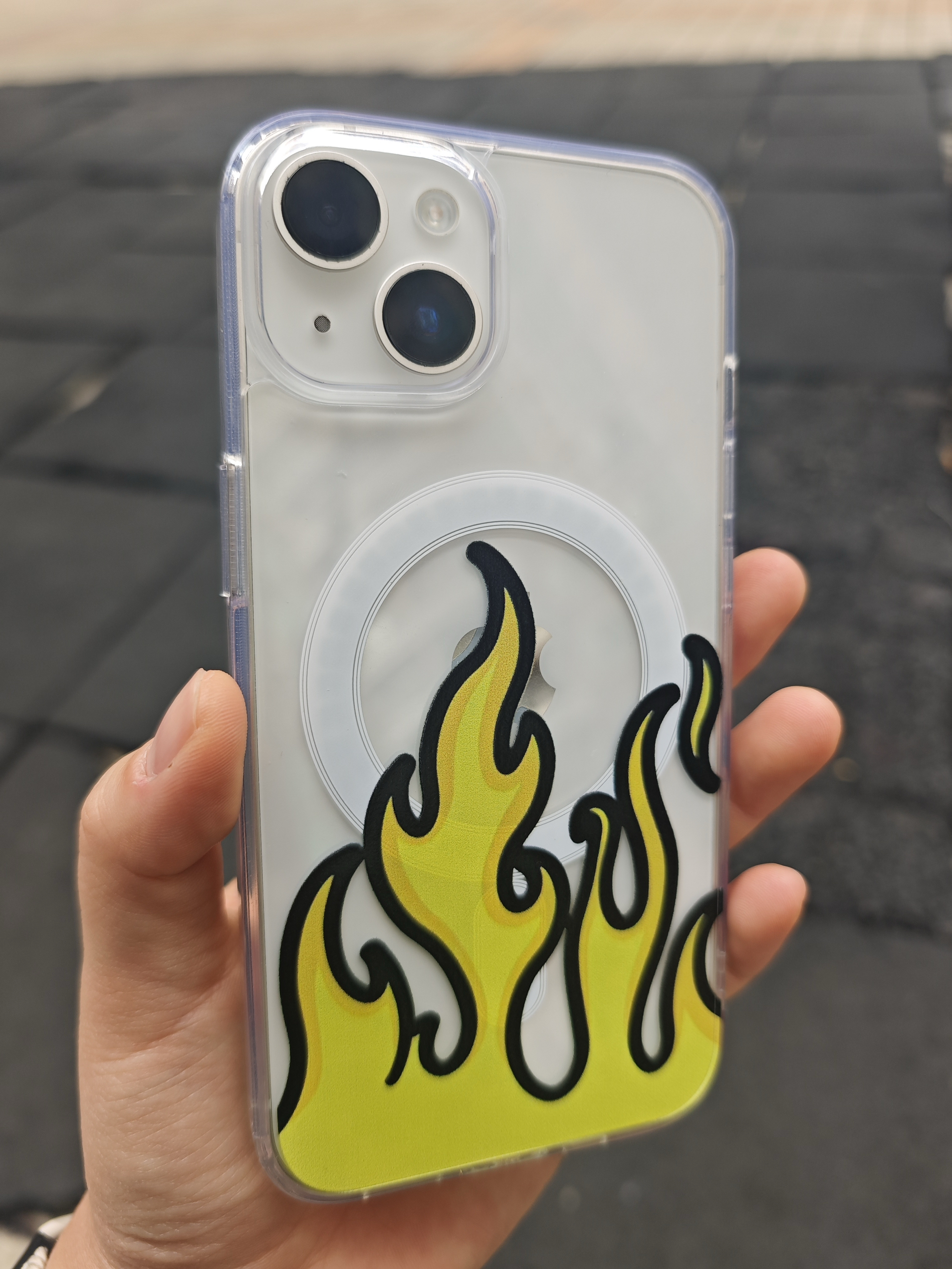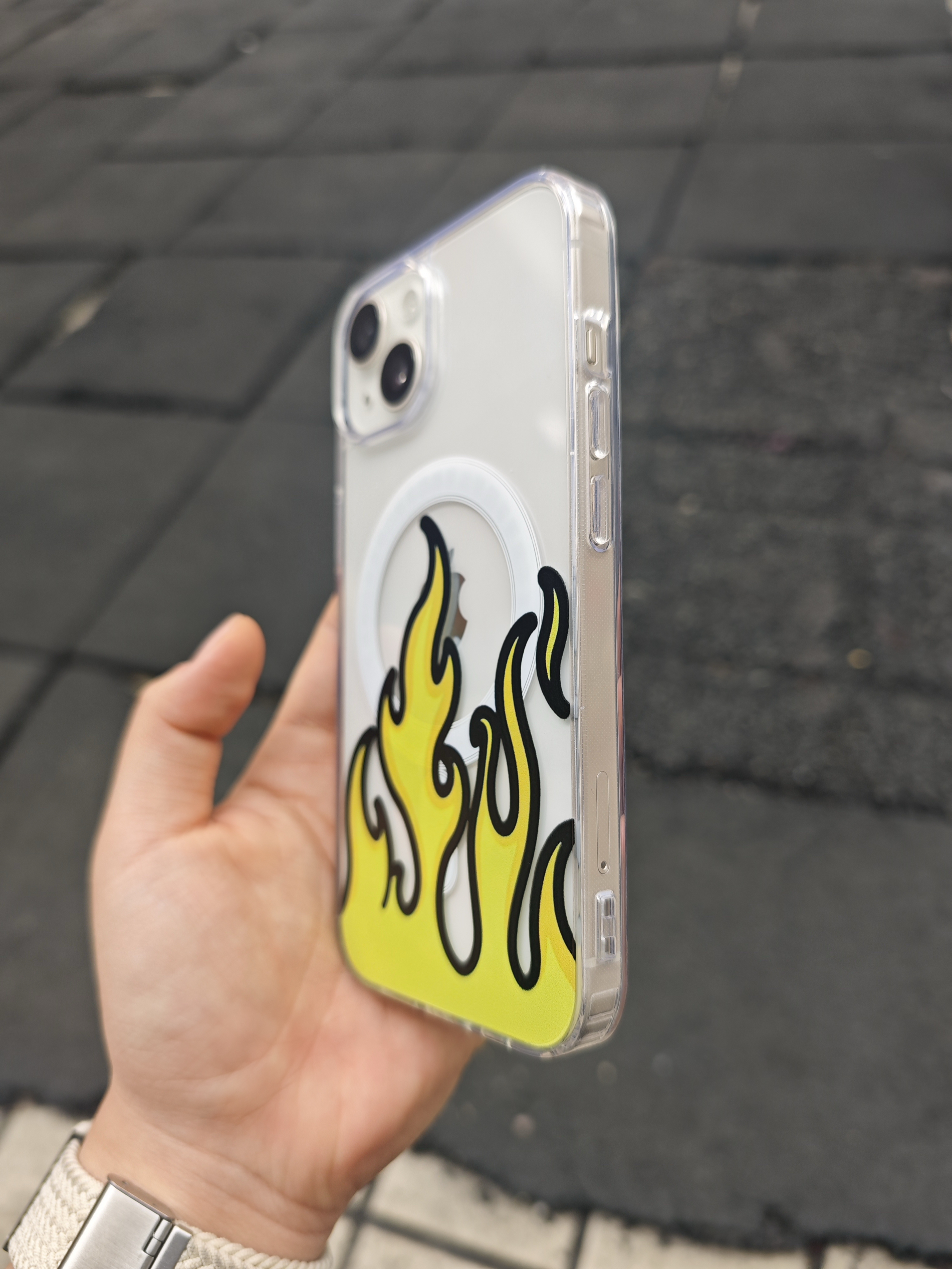 哈喽👋兄弟们👬 这里是小刘默爱奋斗💪 又挖到一宽超小众的苹果手机壳 分享给兄弟们! 颜值很高,黄色火焰超级炫酷带感! 而且握在手上,很舒服,四个角有加厚设计,镜头处也有增高,都很好的保护了我们的手机! 最让我满意的是,它还有磁吸功能,出门直接带个磁吸充电宝就好了,超级方便!