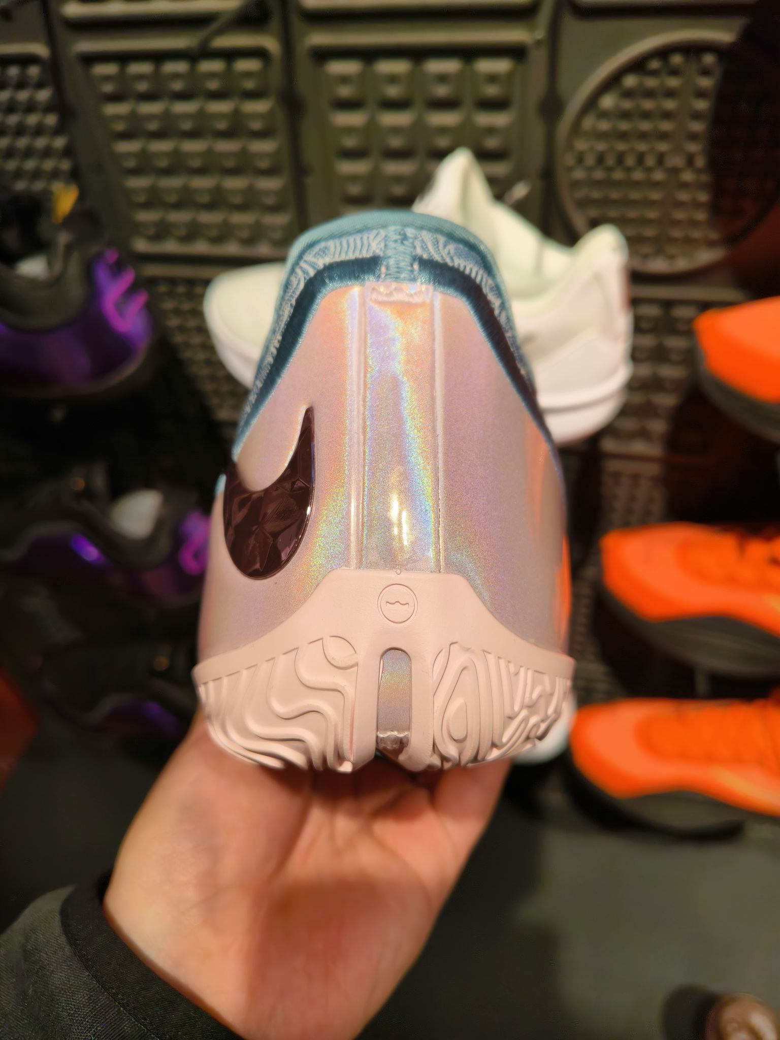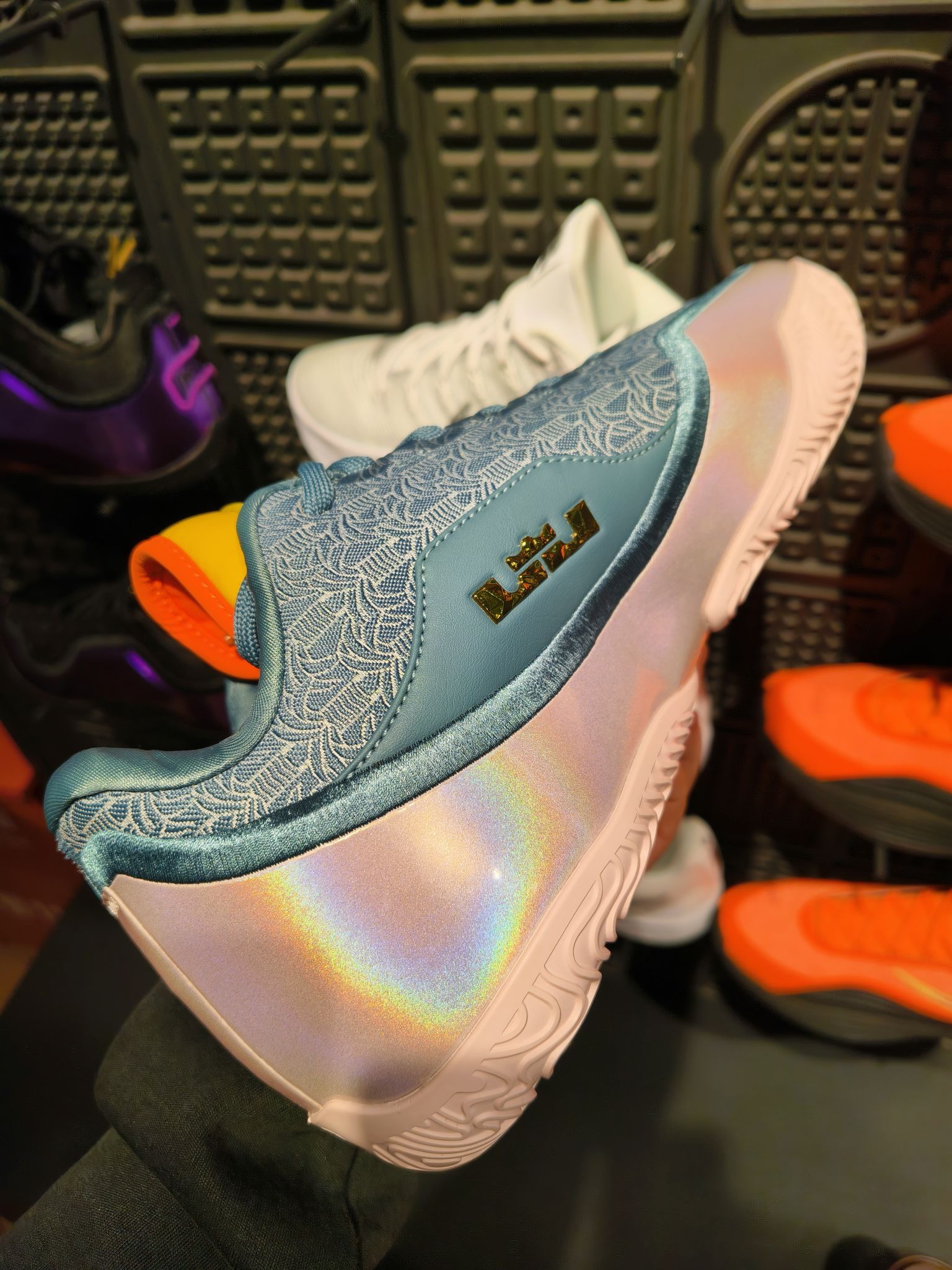 周末小逛,看看lbj23 Miami Twice致敬迈阿密热火两冠,配色蛮骚气的。Chosen One鸳鸯纪念与布朗尼同台竞技的配色,很湖人的一双。这一代的皇冠logo元素作为设计元素,类似喷泡的感觉蛮不错