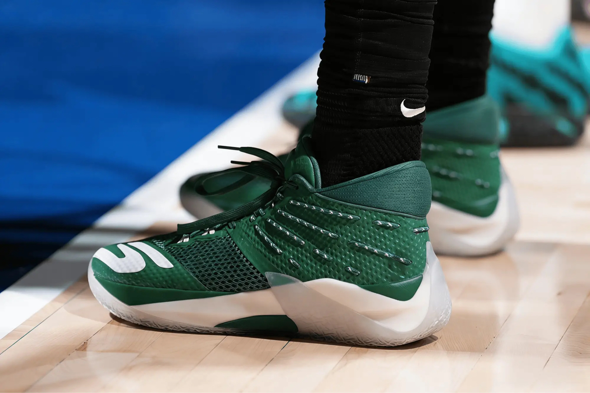 里德上脚反转青蜂侠配色Nike Kobe 6 Protro 得到16分7篮板2助攻1抢断1盖帽 兰德尔上脚绿色Skechers SKX Reign PE 得到21分5篮板3助攻3抢断 戈贝尔上脚Nike G.T Hustle3 PE 得到16分16篮板4助攻1抢断4盖帽 迪温琴佐上脚青蛇配色安踏瞬息3 得到19分11篮板4助攻3抢断1盖帽 杰克逊上脚Nike G.T Hustle3 PE 得到28...