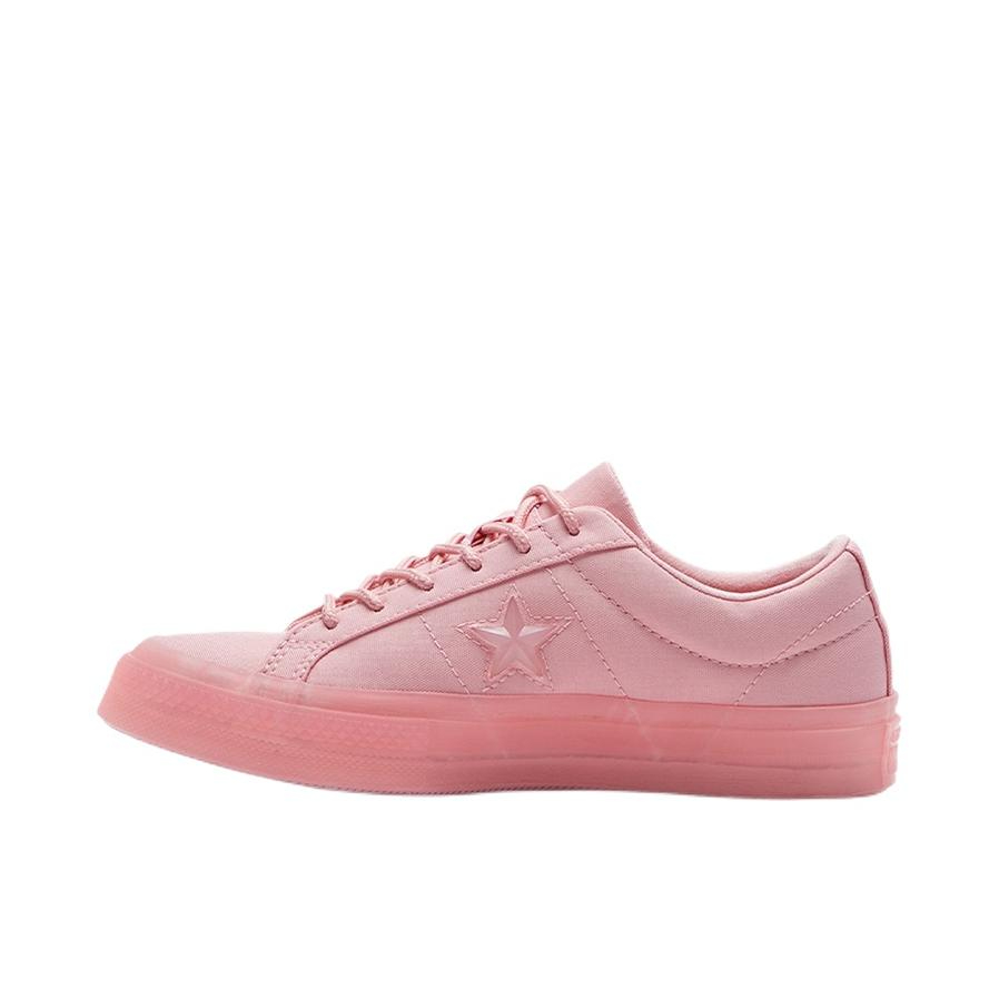 👕推荐单品 Converse One Star 樱花粉麂皮低帮板鞋 🛒推荐理由 经典One Star鞋型搭配樱花粉通体设计,甜美元气又少女感十足;麂皮鞋面质感柔软高级,透明粉色果冻大底增添潮流细节,鞋侧星星标志简约又具辨识度;鞋款适配多种穿搭风格,女生可搭配白色蕾丝边连衣裙+浅粉色针织开衫、浅蓝色牛仔背带裤+白色短袖T恤,男生可搭配浅灰色连帽卫衣+粉色工装短裤、米色休闲西装+白色内搭,轻松打...