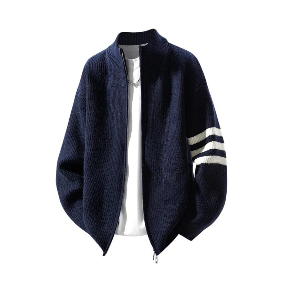 秋冬想穿得有质感又轻松?真维斯2025AW这件针织夹克刚好戳中需求!藏蓝底+三条杠利落又耐看,双拉链立领设计很实用——拉满能锁温,半开露内搭还能玩层次感,针织面料软乎又耐穿。 不管是单配牛仔裤走休闲风,还是内搭白T叠穿外套,都能穿出秋冬的松弛高级感,男生日常通勤、出门逛吃穿它都适配,平价款里的质感选手直接冲~ 图源网络侵删