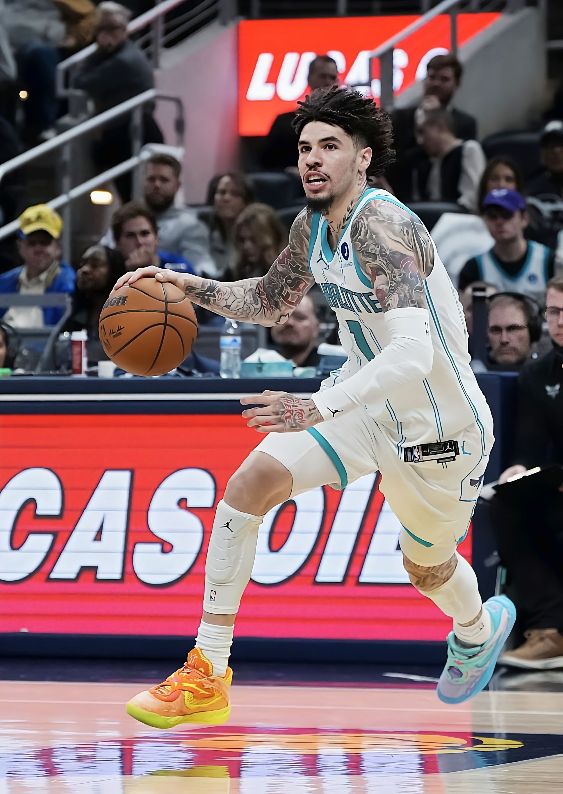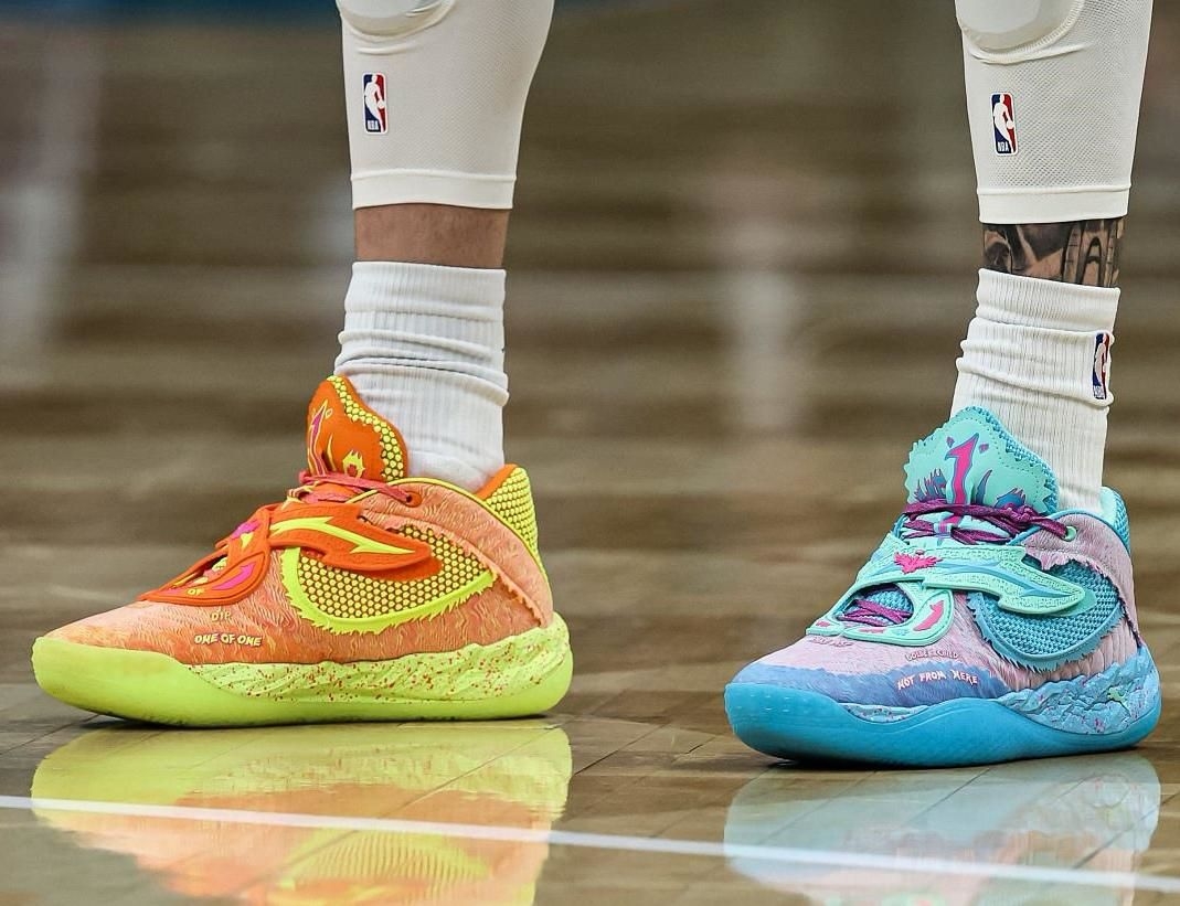 今天蹲黄蜂对老鹰的比赛,三球复出这场也太炸了!重点是他脚上那双Puma MB.05鸳鸯,居然是《瑞克与莫蒂》联名款,蓝绿撞色配上细节纹路,赛场木地板上一眼就能抓到,个性到不行。 说回比赛表现,三球这状态哪里像缺阵三场的人啊!出战不到30分钟,16投10中飙进8记三分,狂砍28分4篮板13助攻,末节老鹰追分追到只差1分的时候,他连得7分直接锁定胜局,这关键球能力真的绝了。 球鞋颜值和实战表现...