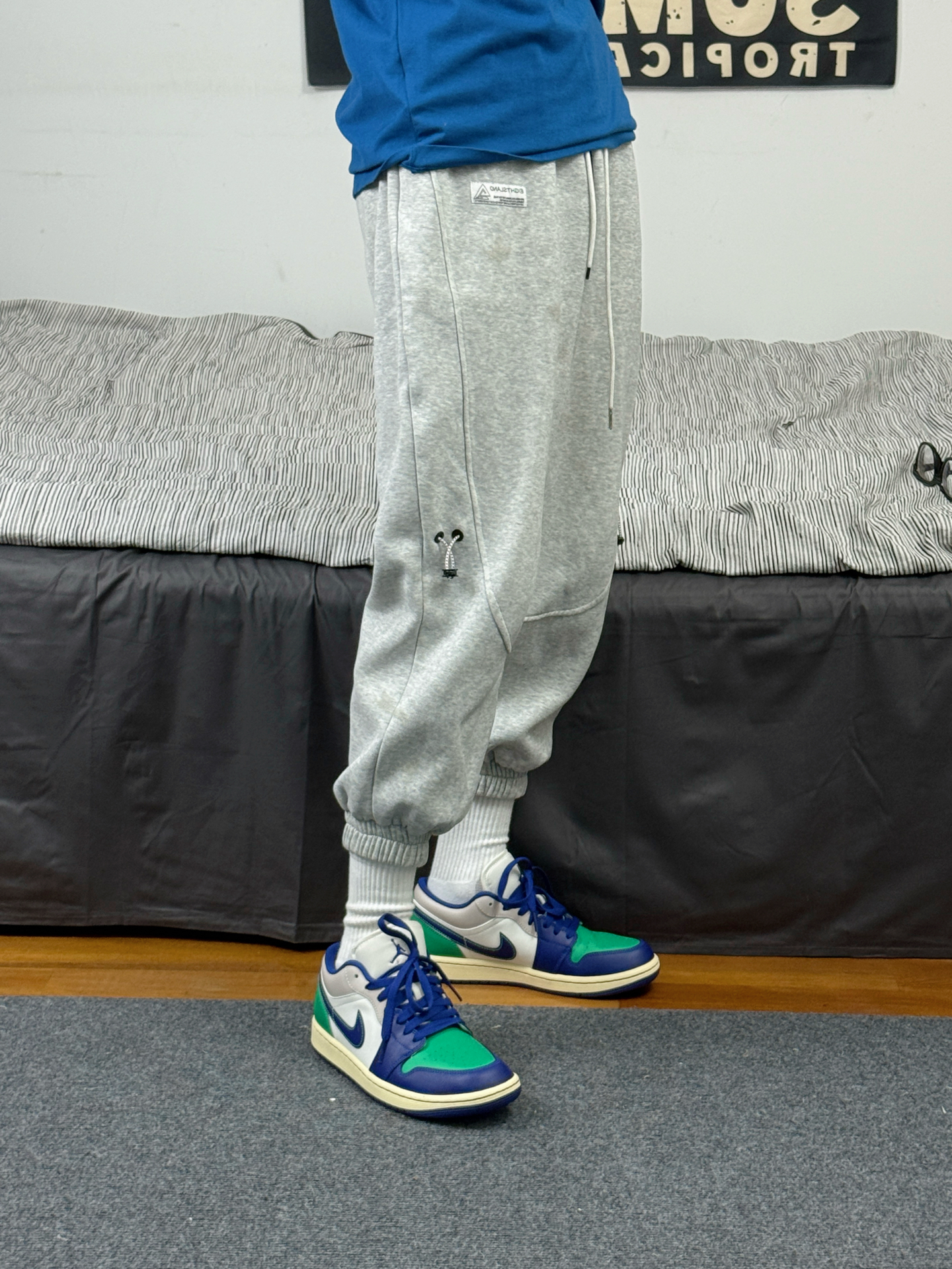 蓝白色开衫毛衣搭配浅灰色工装裤 少年感十足 宽松直筒的版型 不挑身材 外壳是软壳的防水材质 内里摇粒绒很保暖 三合一的可拆卸设计 一条抵三条 南方冬天穿这一条就够了 颜色也很百搭 秋日出游就穿这一身 包帅的! 👖:GSUE