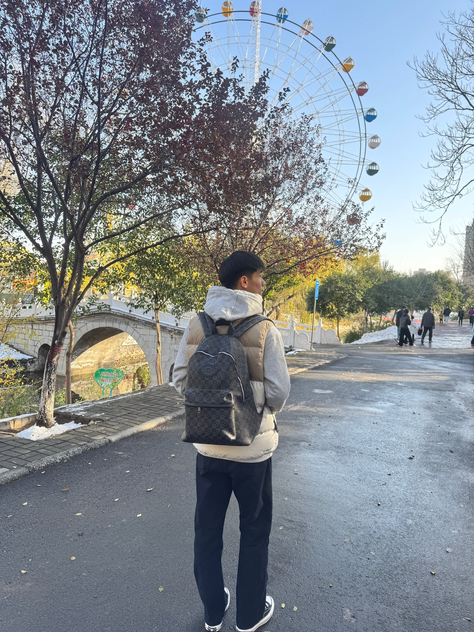 身上背的是 Dickies 家的背包 皮革质 看起来很高级 有自家logo 质感不错 搭起来很容易 身上是 Nike 家的羽绒马甲 蓬松度很好 颜色是暖色系 搭起来也很容易 保温效果也很好 初冬穿非常不错 脚穿的是converse的1970s 最最最经典款式 百搭神器 注意⚠️ 拍它要小一码