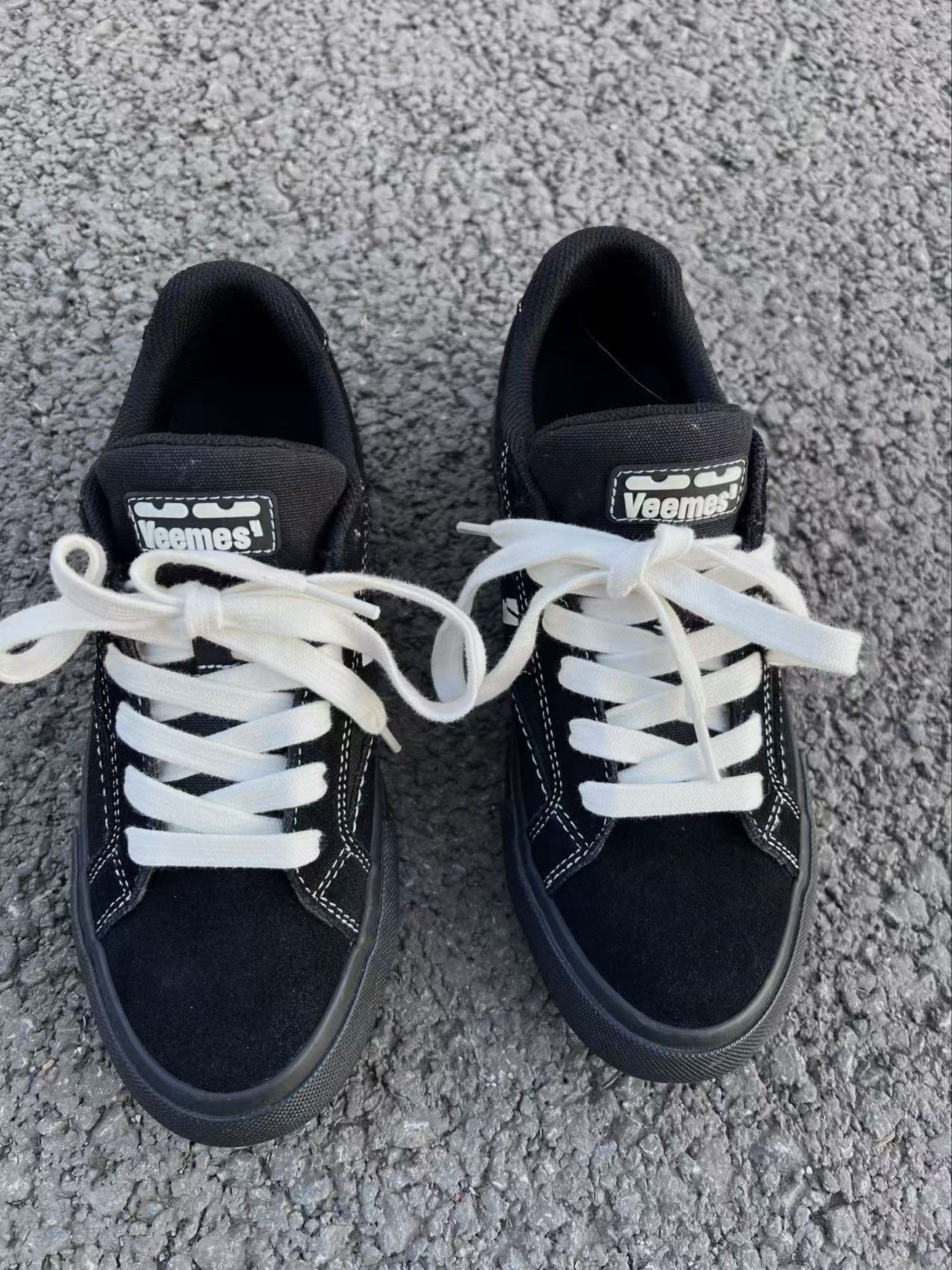 • 经典黑帆布鞋面 × 纯白鞋带,高级感拉满 • 低帮剪裁+微翘鞋头,视觉拉长腿部线条