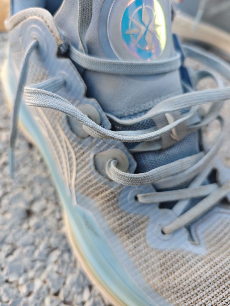 ①鞋面材质:䨻丝鞋面!很韧,注意穿久鞋面强度会削弱!! ②球鞋配置:中底搭配全掌䨻科技, 外底TUFF RB耐磨科技, probar loc 双层的TPU抗扭片☞在鞋底可以看到蓝色的一个,还有在中底网布有一块黑色的。 鞋带动态绑定,在我的图片中也可以发现,我也是穿半年了才发现。 🤓个人长期实战体验: 声明,本人已经穿了半年起码,主要为室外的大学篮球场地。 首先初上脚就有种软弹,让你想要跳,...