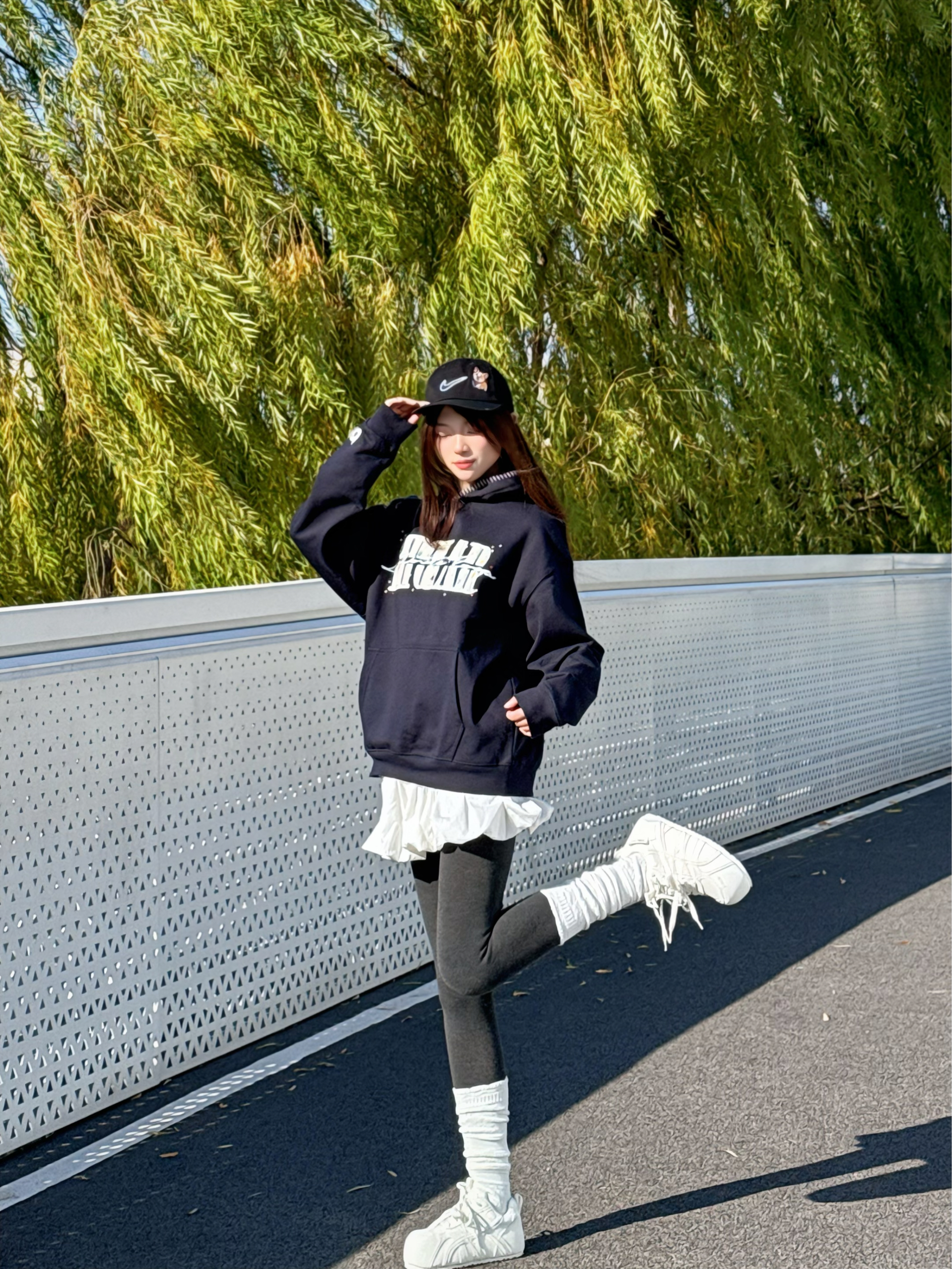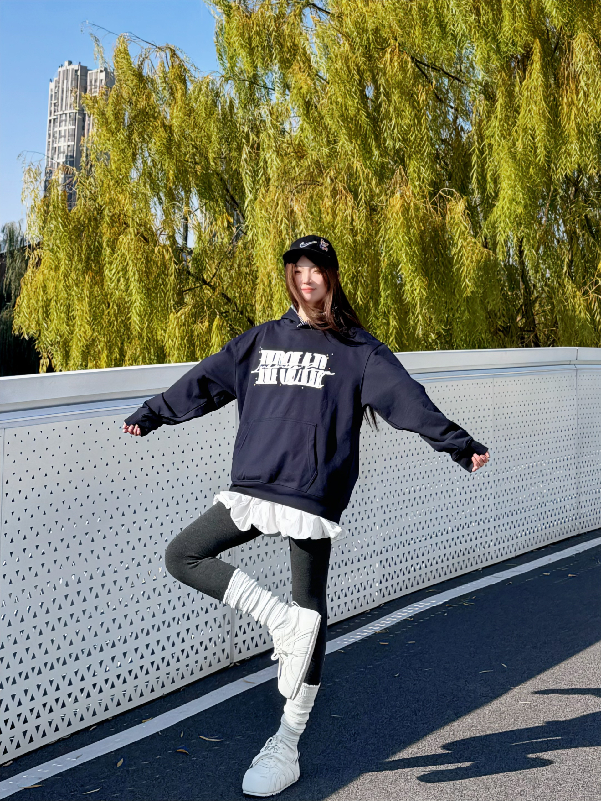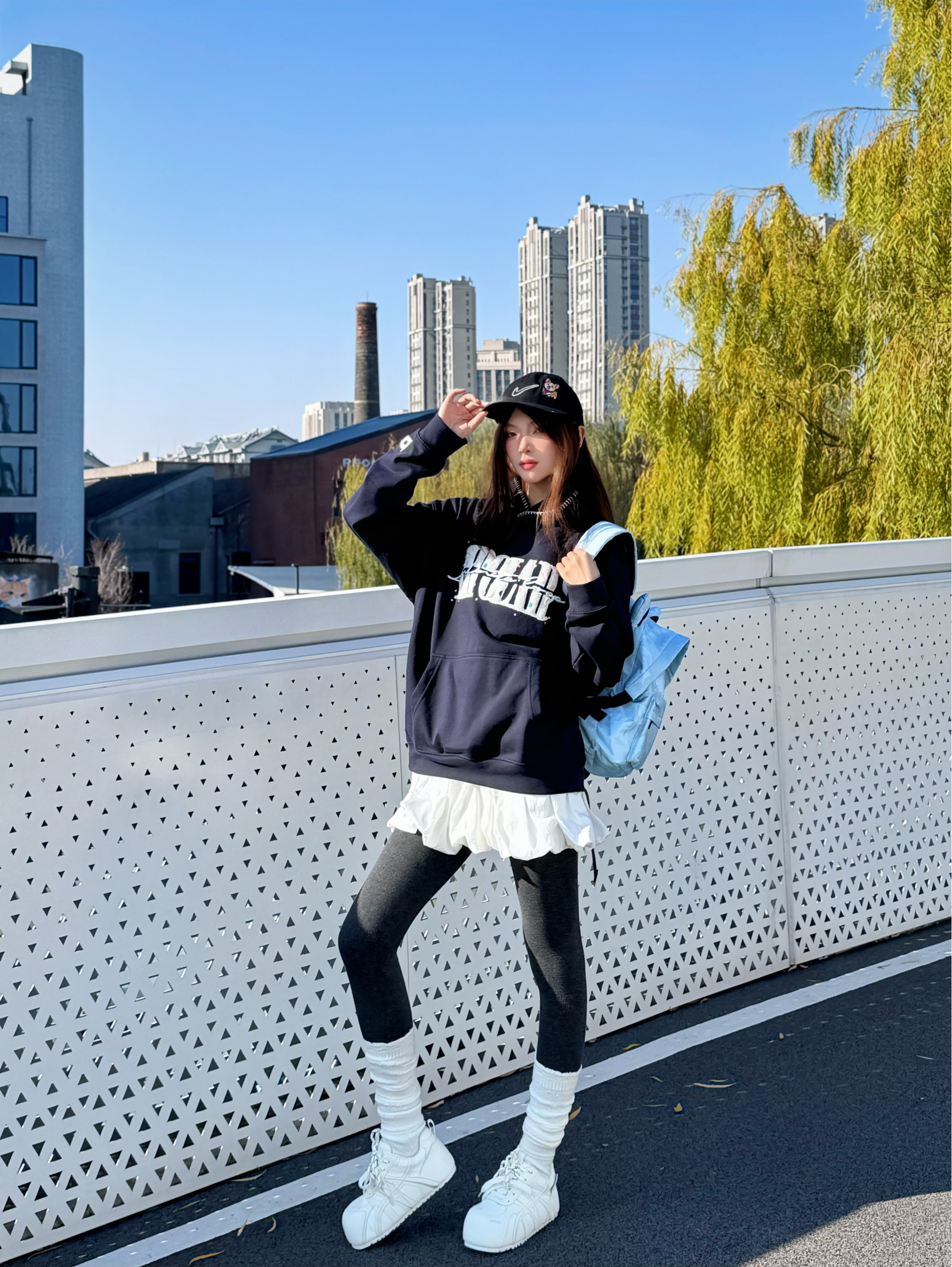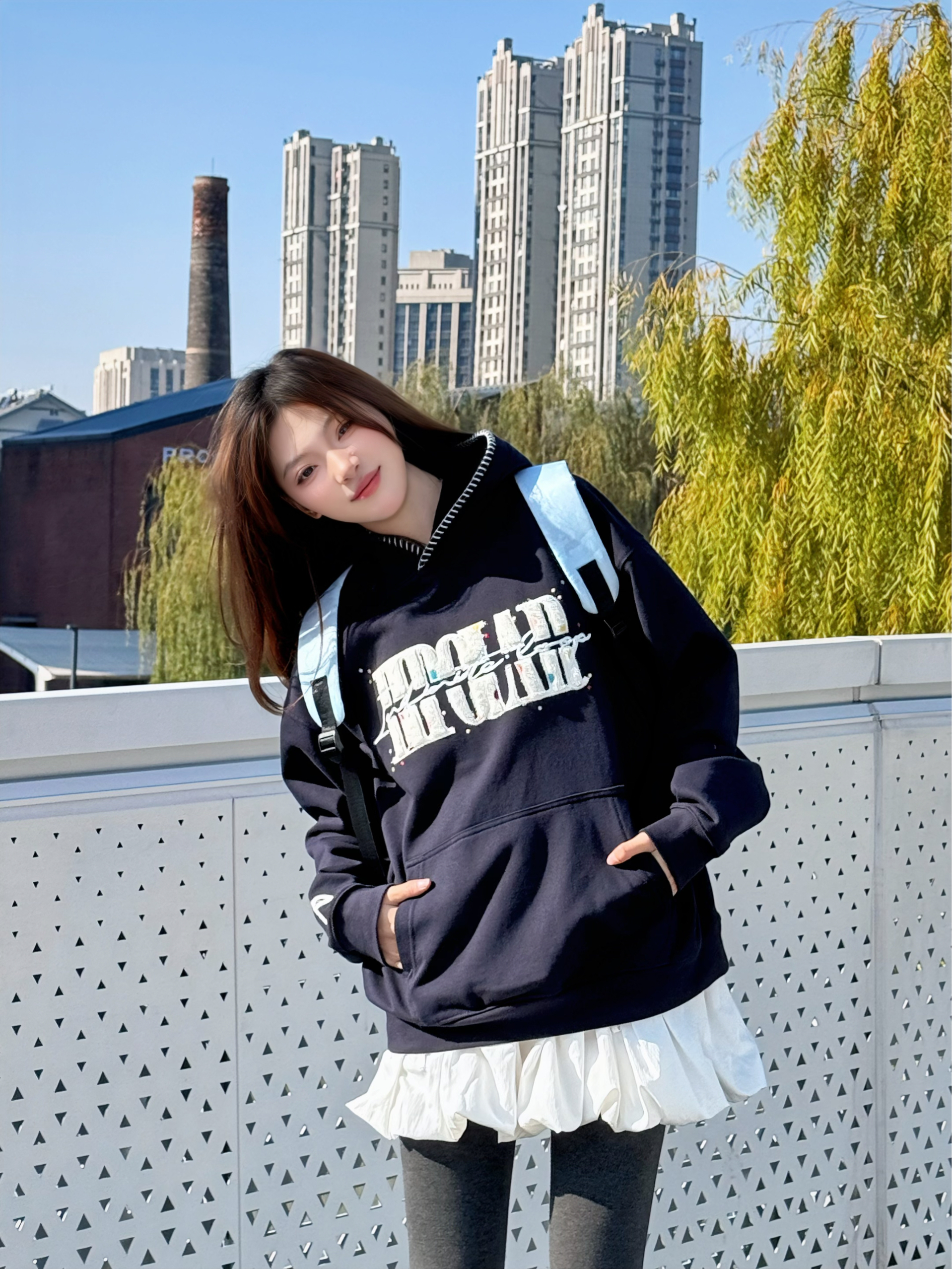 把蓝莓硬糖🍬穿在身上的一天! 藏青卫衣+蓬蓬裙+白色厚底面包鞋 秋冬韩系甜美风活力💖满满 卫衣BIPOLAR宽松版型慵懒不挑人 彩色波点logo敲有设计感 搭黑棒球帽和leggings和白色堆堆袜点缀💡 随性不费力穿搭 简简单单 酥服的刚刚🆗 奶钙168/95斤 穿的s码 内里加绒 上身很暖和
