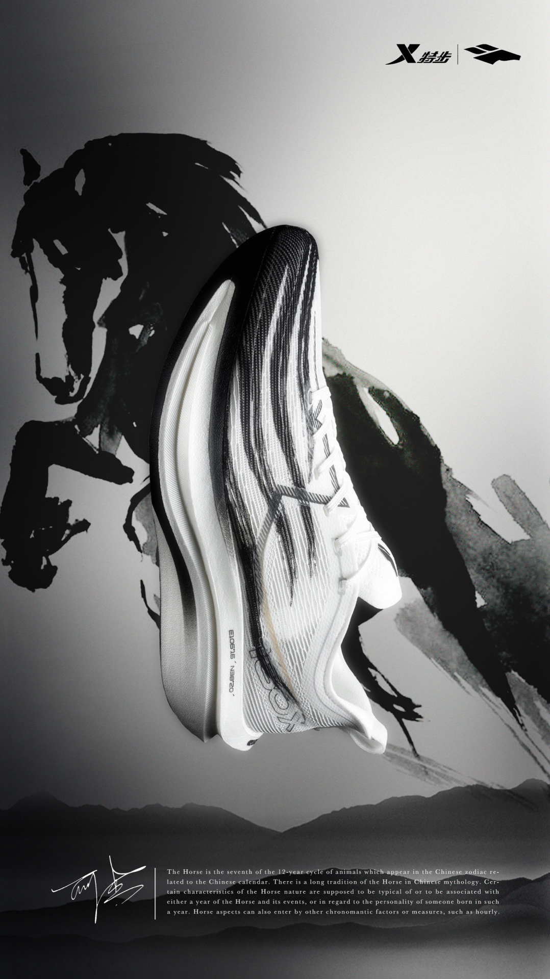 🐎策马奔腾🐎 👟:160X 7.0 JET 何杰联名款·黑马 特步和何杰联名推出“黑马”配色的160X 7.0 JET,整体使用了水墨风的处理方式,搭载了XTEP ACE+中底科技以及航天级GT1100黄金碳板,整体重量再次大幅缩减,40码低至177.8g,鞋脚一体性更加出色,不得不说在外形设计上更加具有曲线美,水墨风与“黑马”的灵感都很契合鞋款本身的设计风格,2026年也是马年,这一呼应也是...