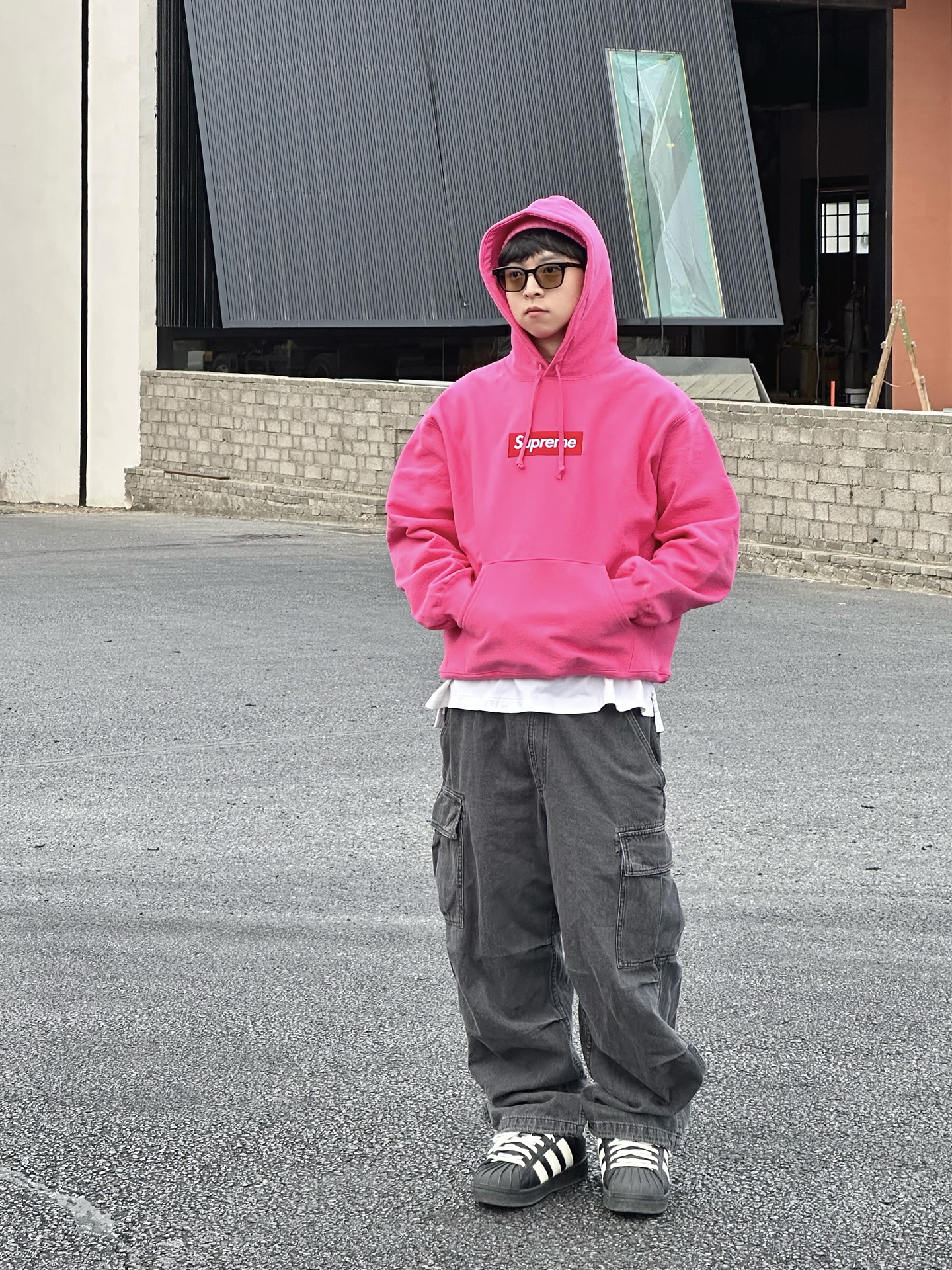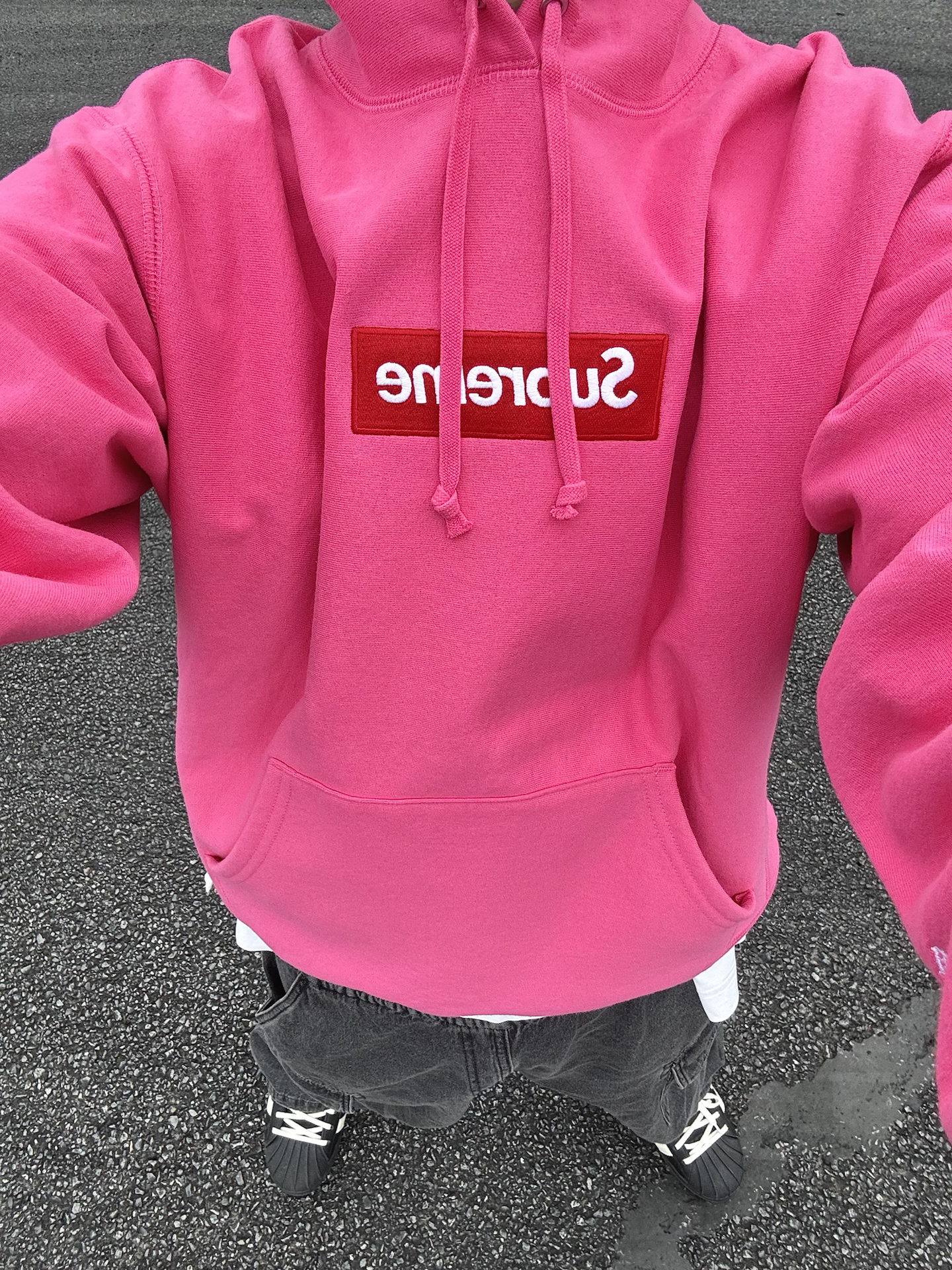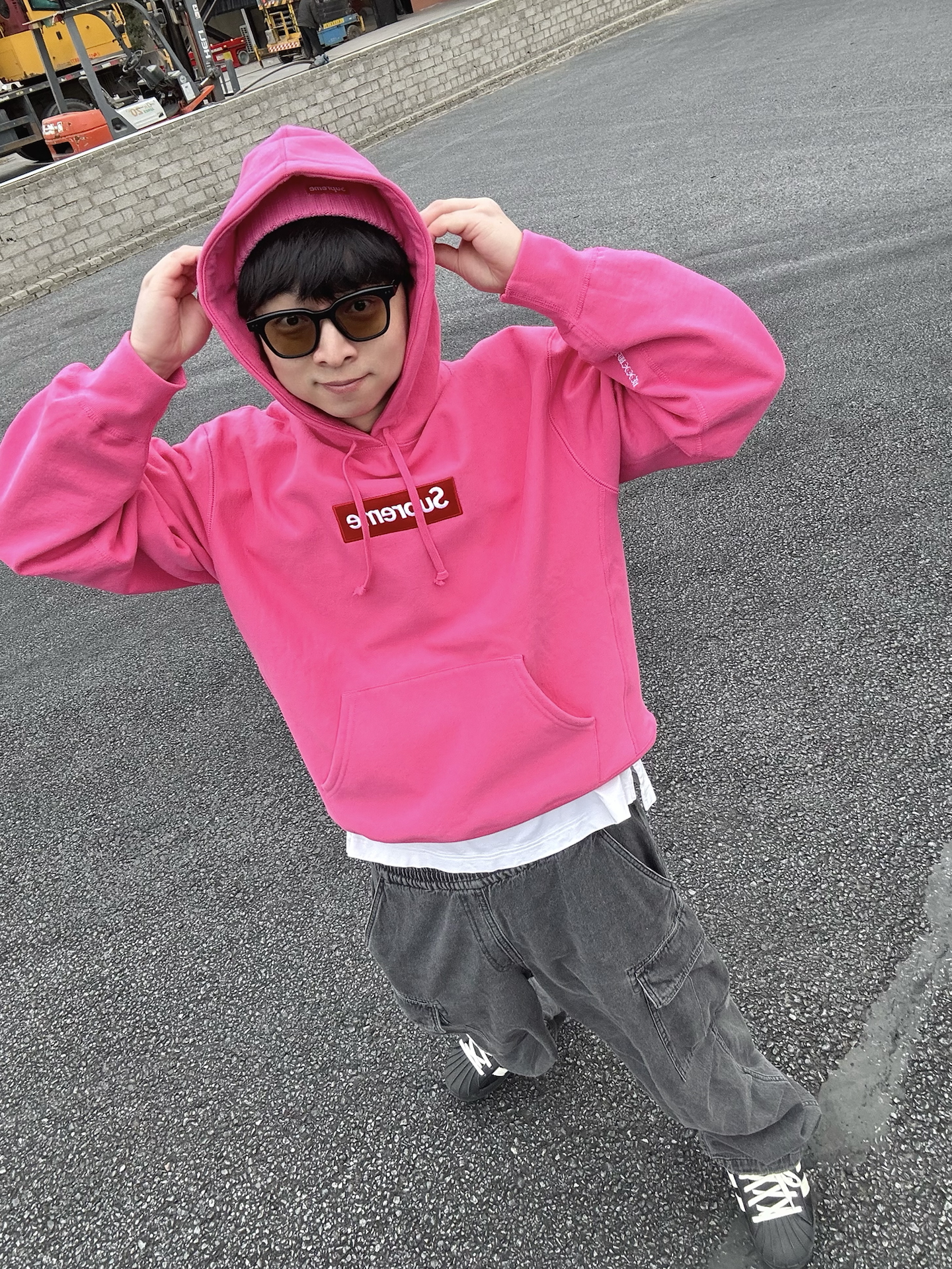 哈喽👋🏻大家好哇 这里是🪨石地夫的穿搭小日记📝 - 秋冬黑白灰穿多了也会觉得沉闷🥱 偶尔来点高饱和🎨outfit调节一下 今天上身supreme FW25 boxlogo卫衣 这BOGO的颜色是一年比一年大胆了💡 这件洋红色我感觉比去年的粉色更好看🩷 面料依旧厚实硬挺,单穿内搭都🆗 #冬天不止黑白灰 #Supreme #冬季穿搭帅出型 #一件摆脱路人感 #给冬天点颜色瞧瞧
