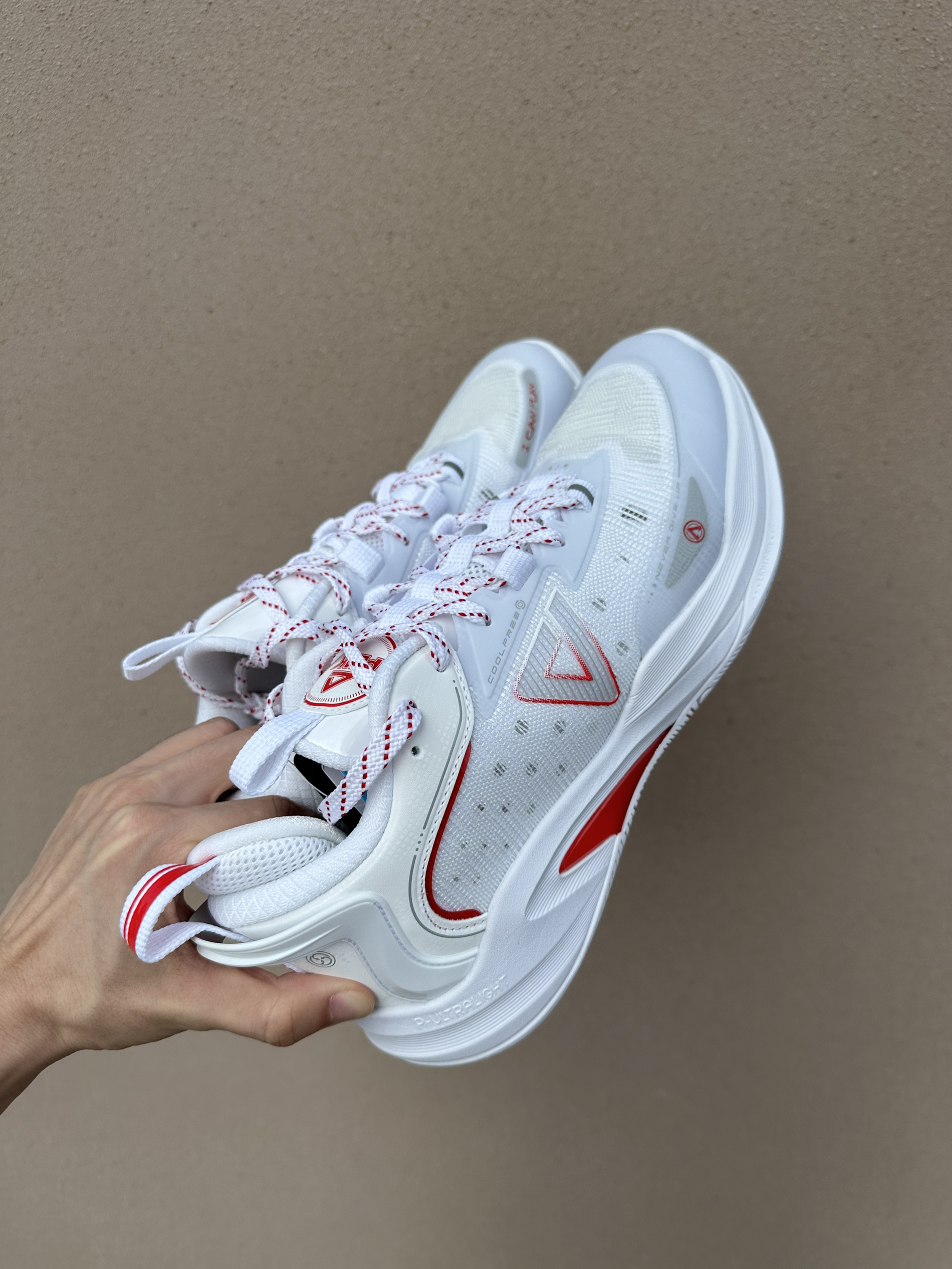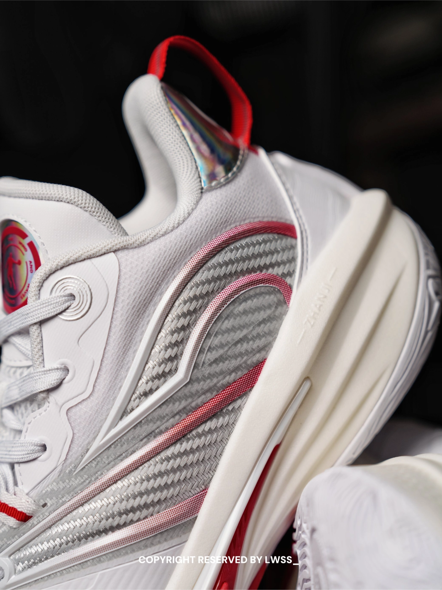 今日上脚,中乔破影7,这双鞋这几个配色,我感觉白红配色是最好看的,非常的清爽,非常的简约。前掌外侧的那个TPU非常的有辨识度。上脚以后我最大的感受就是这双鞋的鞋楦非常的舒服,对宽脚很友好。因为脚很宽,所以我日常篮球鞋要穿到44.5码或者是45码。这双鞋44码,我依旧可以穿,而且没有什么拇外翻和内扣的现象,上脚很轻快,很软弹,足以证明这一双非常不错的球鞋。只要2开的价格,对于学生党们来说也非常的友好...