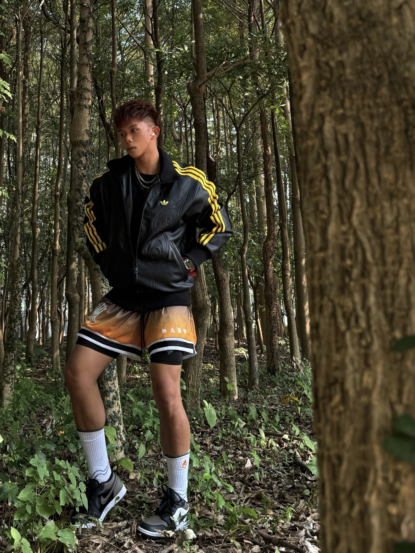 Hey bro‼️这里是小熊的穿搭日记 今天的穿搭主题是街头潮流mix运动风🏃🏻♂️ 黑为主色调 黄色短裤做视觉亮点 宽松外套➕运动短裤的结合 搭配长白袜和黑白棕AJ1 依旧是不过时的穿搭公式 上脚黑白摩卡三色拼接的AJ1 特别喜欢鞋面皮革和磨砂质感 低帮设计相比于中高帮更显轻便 今天晒这双就够了‼️ 秋冬出门穿搭 上长下短➕一双低帮aj 街头氛围感这一块儿轻松拿捏🤌🏻 #今天只晒...