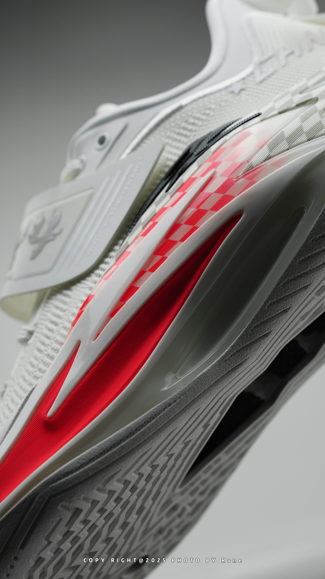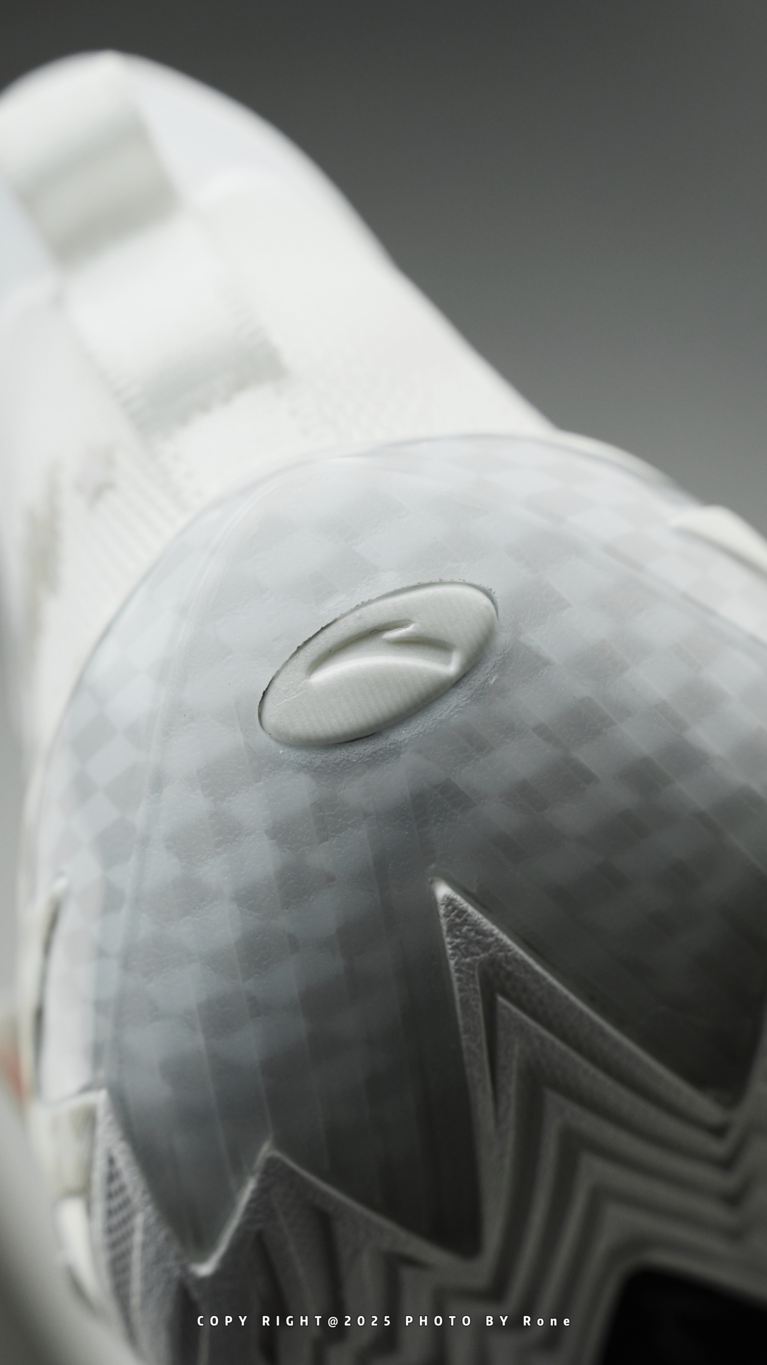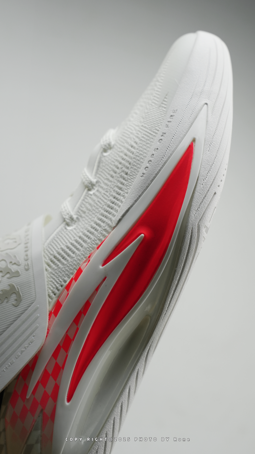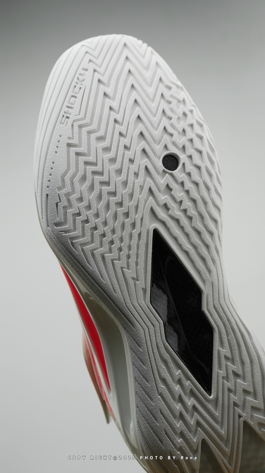 🇨🇳拿到这双白色为主的中国队配色,第一眼就被清爽的设计吸引。鞋身白色的网面相当通透,侧边的红白棋盘格和红色刀锋装饰条把国潮氛围拉满,后跟清晰的“CHN”标识低调又有辨识度。 这代外观上最明显的变化是魔术贴绑带,系紧后确实能感觉到包裹感的提升。中底换上了全新的A Shock X材料,初步上脚就感觉比之前更软弹一些。中足那块前叉碳板从外底微微露出,设计上应该是为了强化滚动感,具体效果还得等实战验证。...