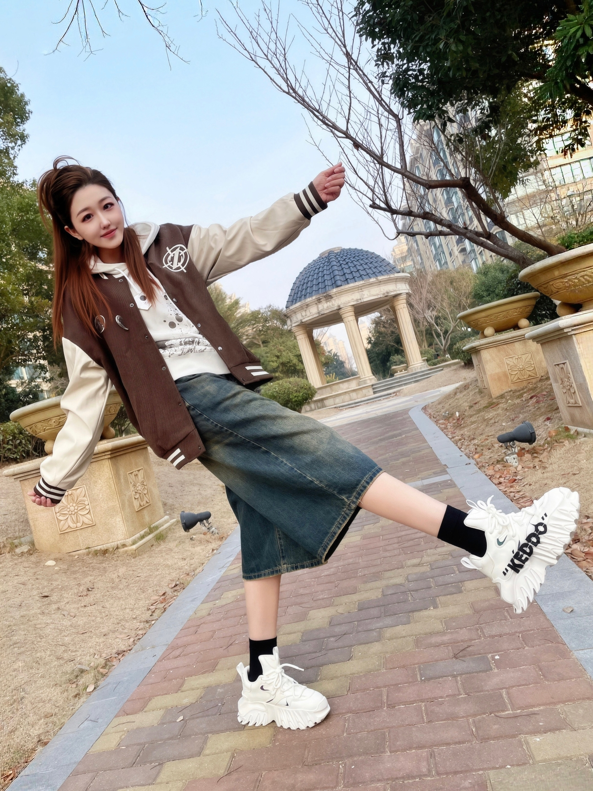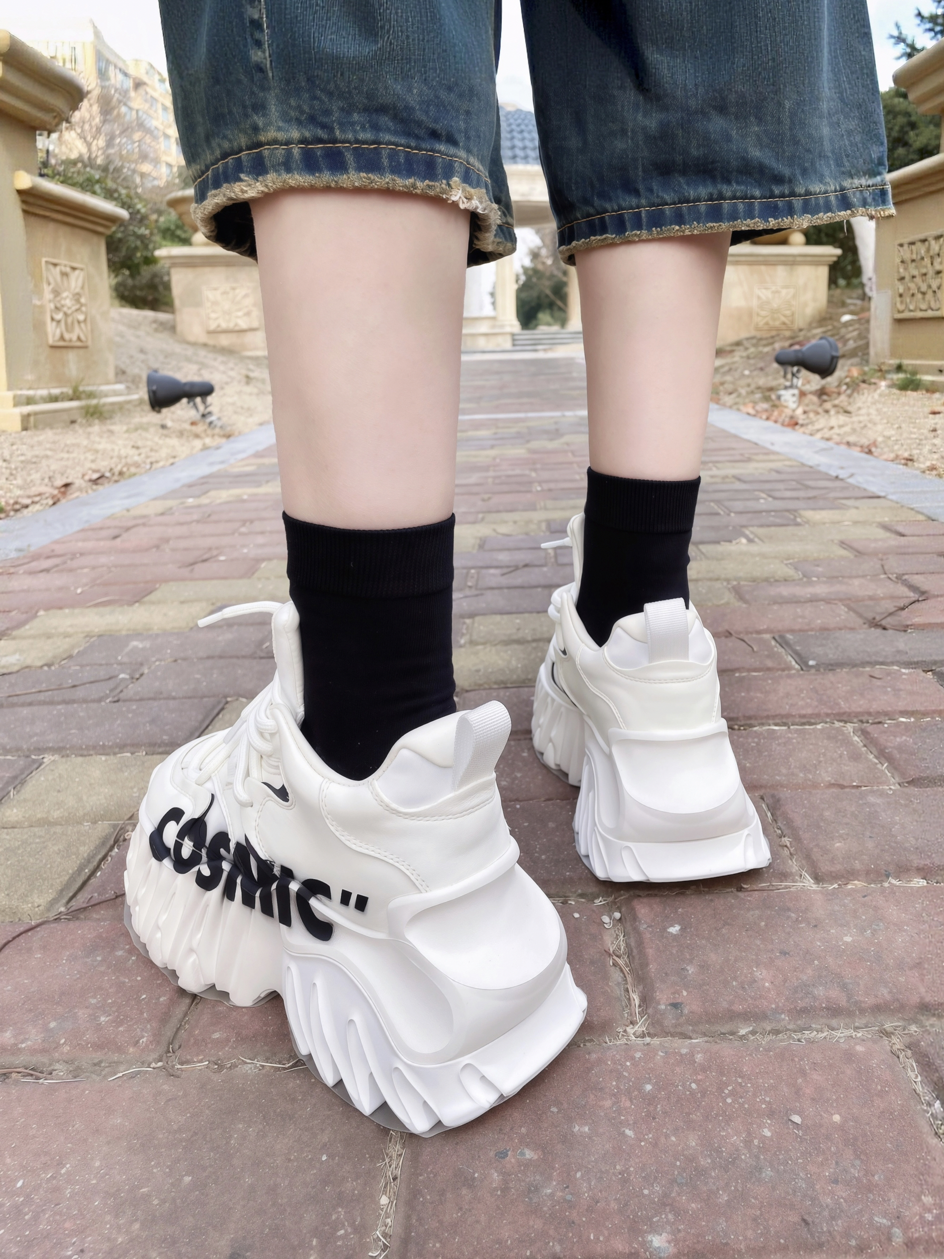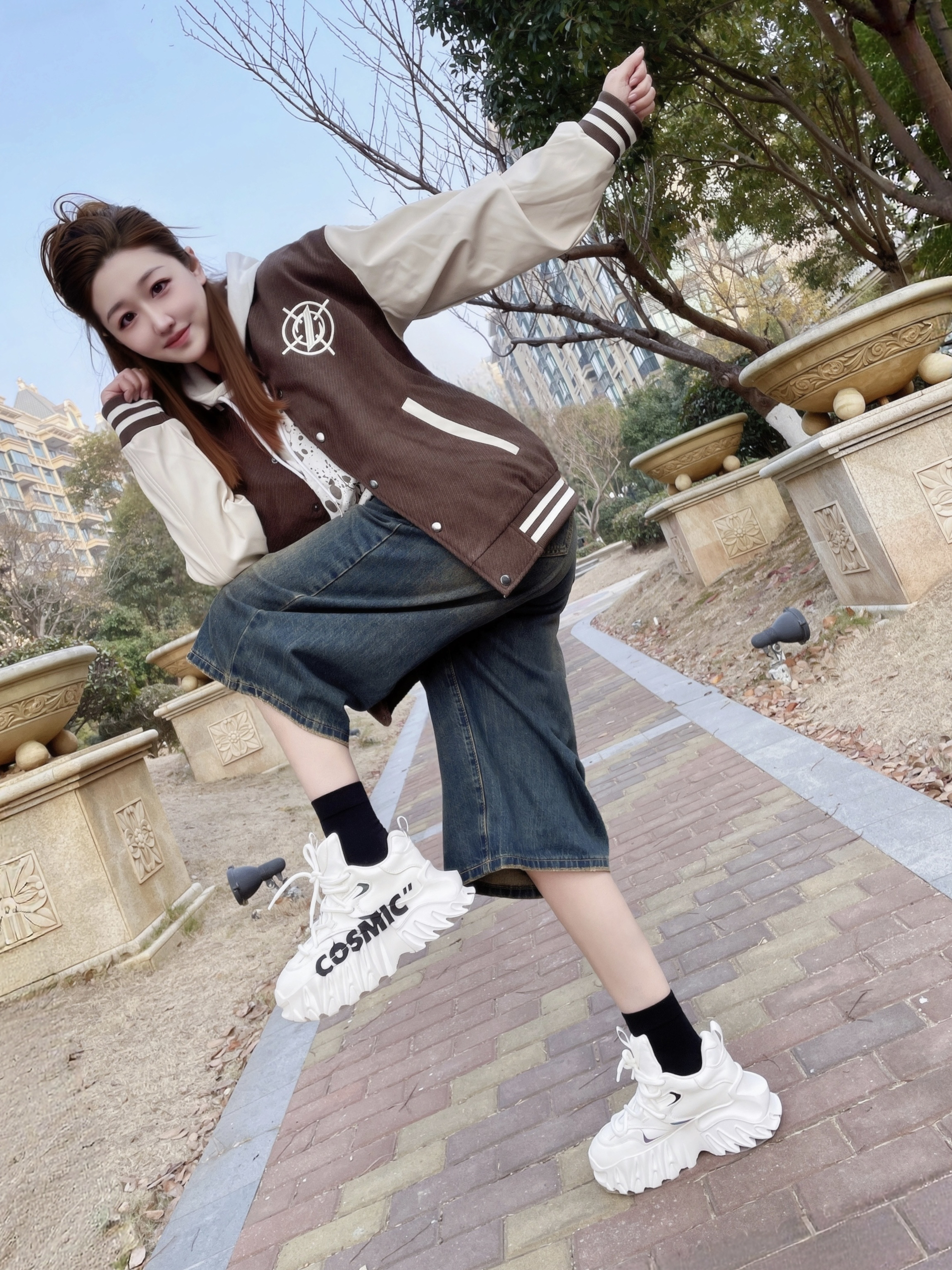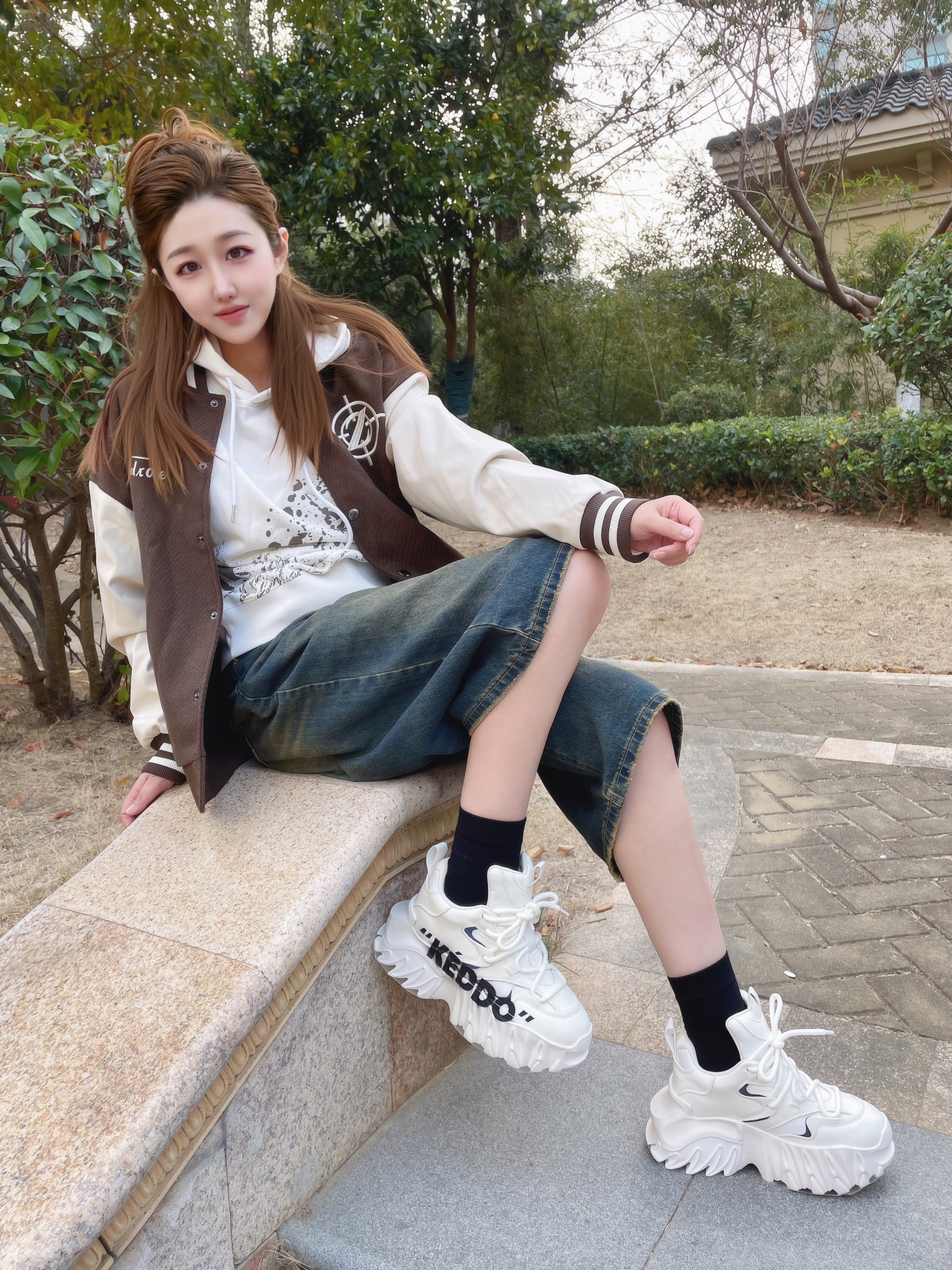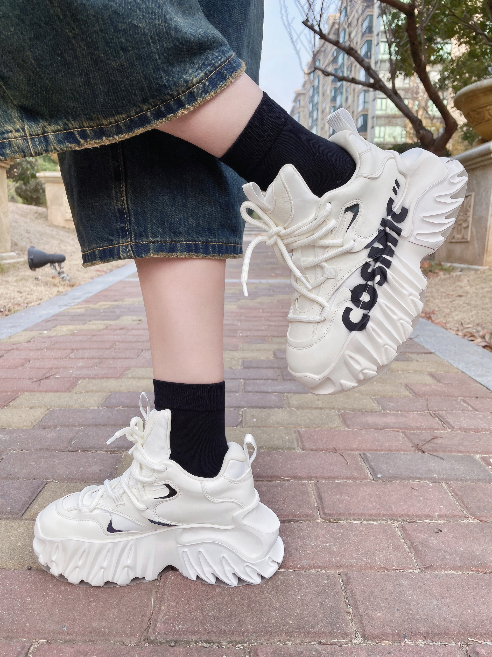 鞋柜里总得有一双炸街撑场面的鞋子吧 这双 KEDDO老爹鞋 我一眼就心动了 白色的鞋身+黑色的涂鸦 底色干干净净 又好有街头的潮酷感 这个麒麟鞋底设计感buff叠满 看着很有分量没想到上脚很轻盈 穿着走一天也不累脚 老爹鞋就得这种厚底款穿着才有腔调 搭配阔腿裤+准者棒球服 街头的松弛感轻松拿捏