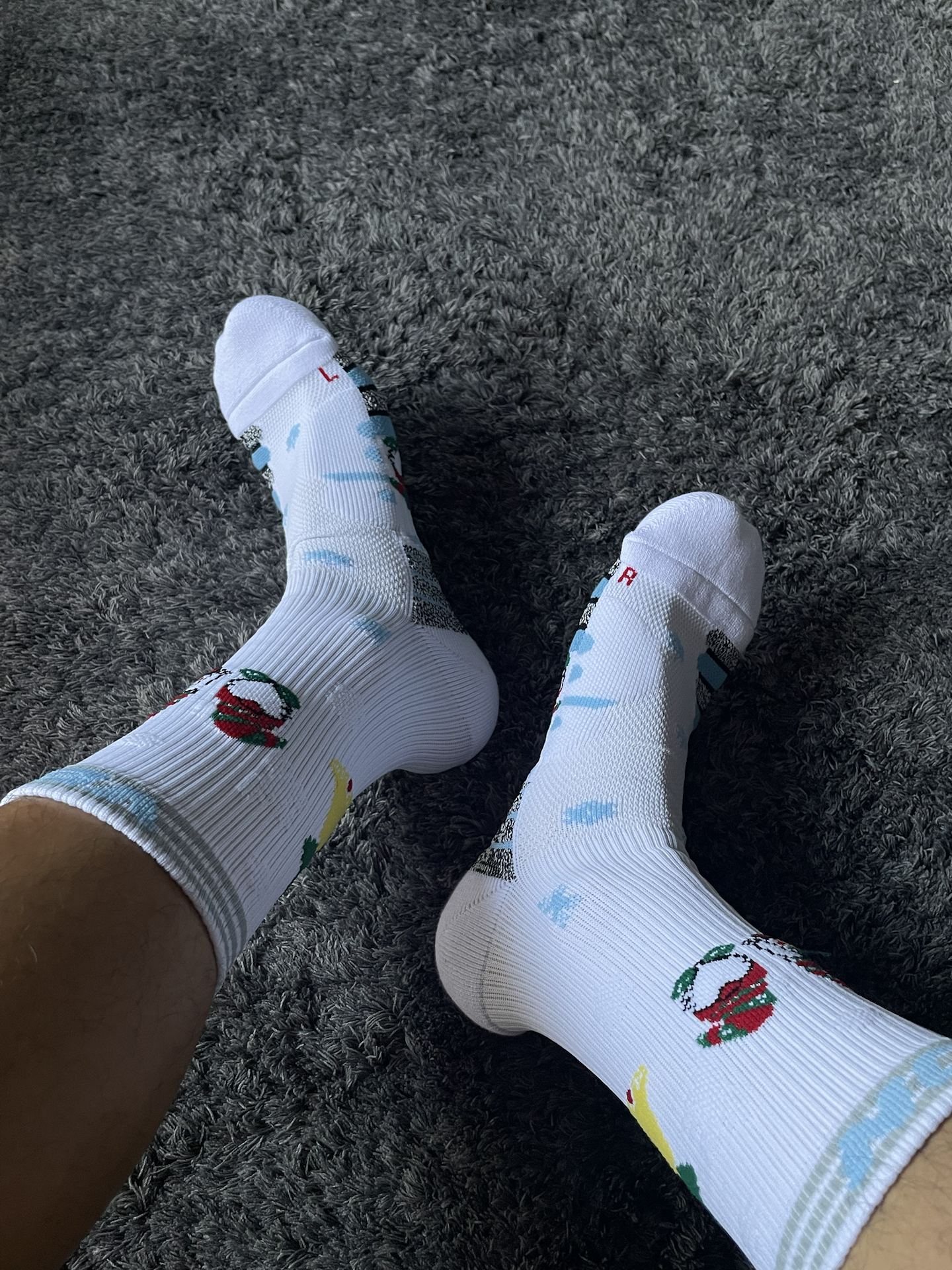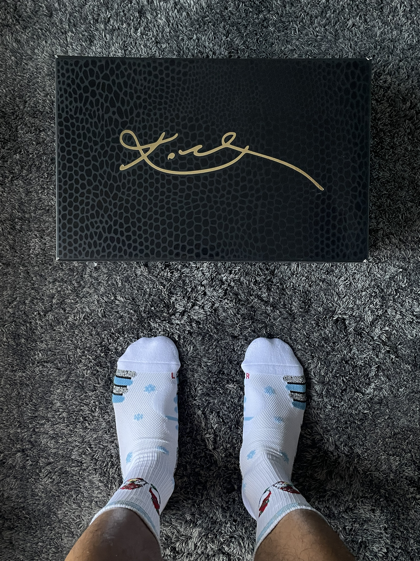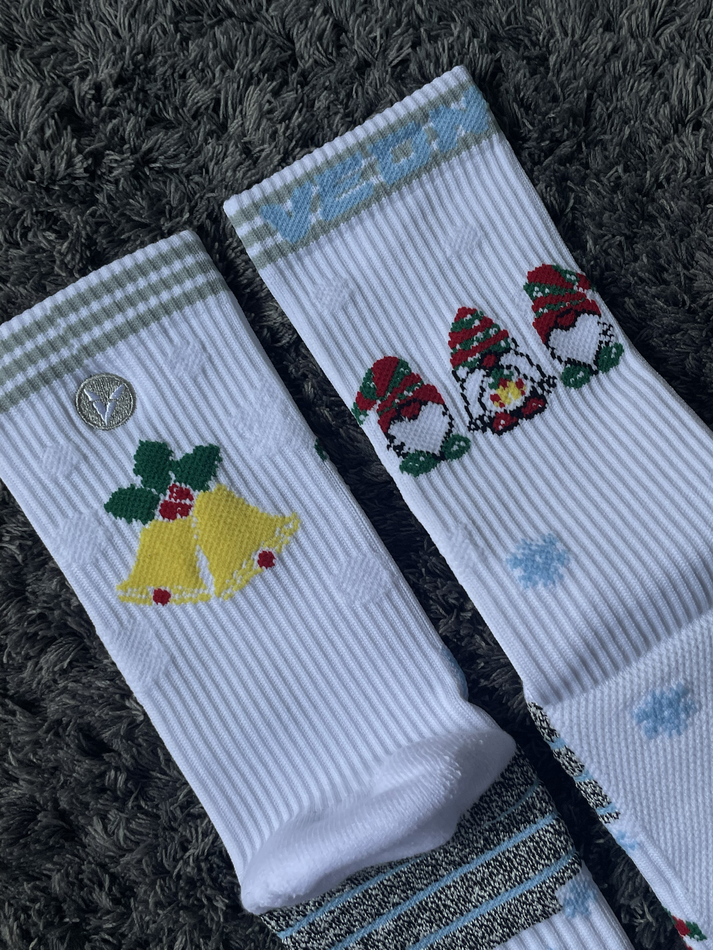 去年圣诞上脚了红红火火的kobe9🎄,今年试试这款冰蓝色的kobe3!这次搭配维动 VEIDOORN 的圣诞系列,上面的铃铛和胖胖圣诞老人真的蛮可爱,一上脚氛围感就来了! 圣诞系列🧦整体的厚度还可以,个人感觉比隼系列要厚,跟恶魔系列差不多的厚度,搭配买了大一码kobe3,系好鞋带后刚刚好,包裹不错,整体还是非常紧实的,没有出现勒脚的情况。这样搭配参加圣诞大战,你们觉得怎么样? #维动圣诞...