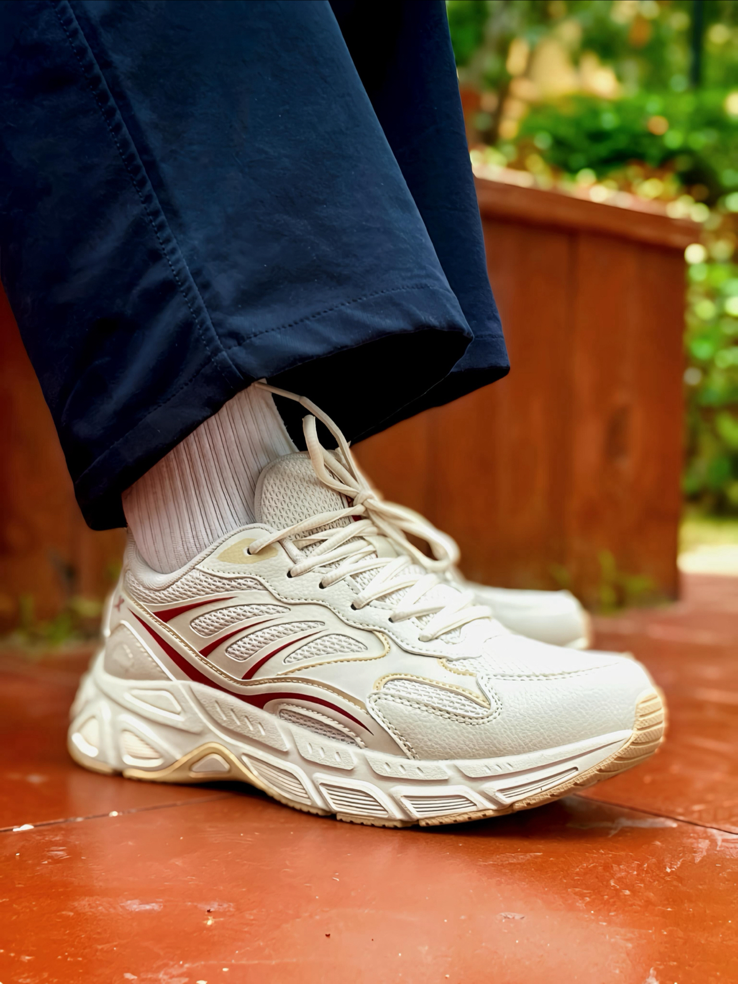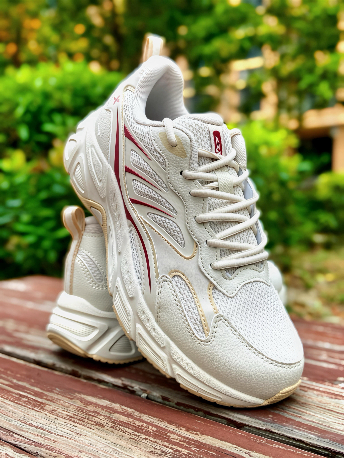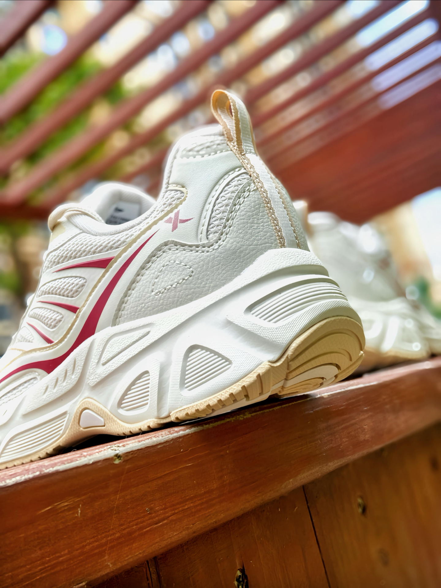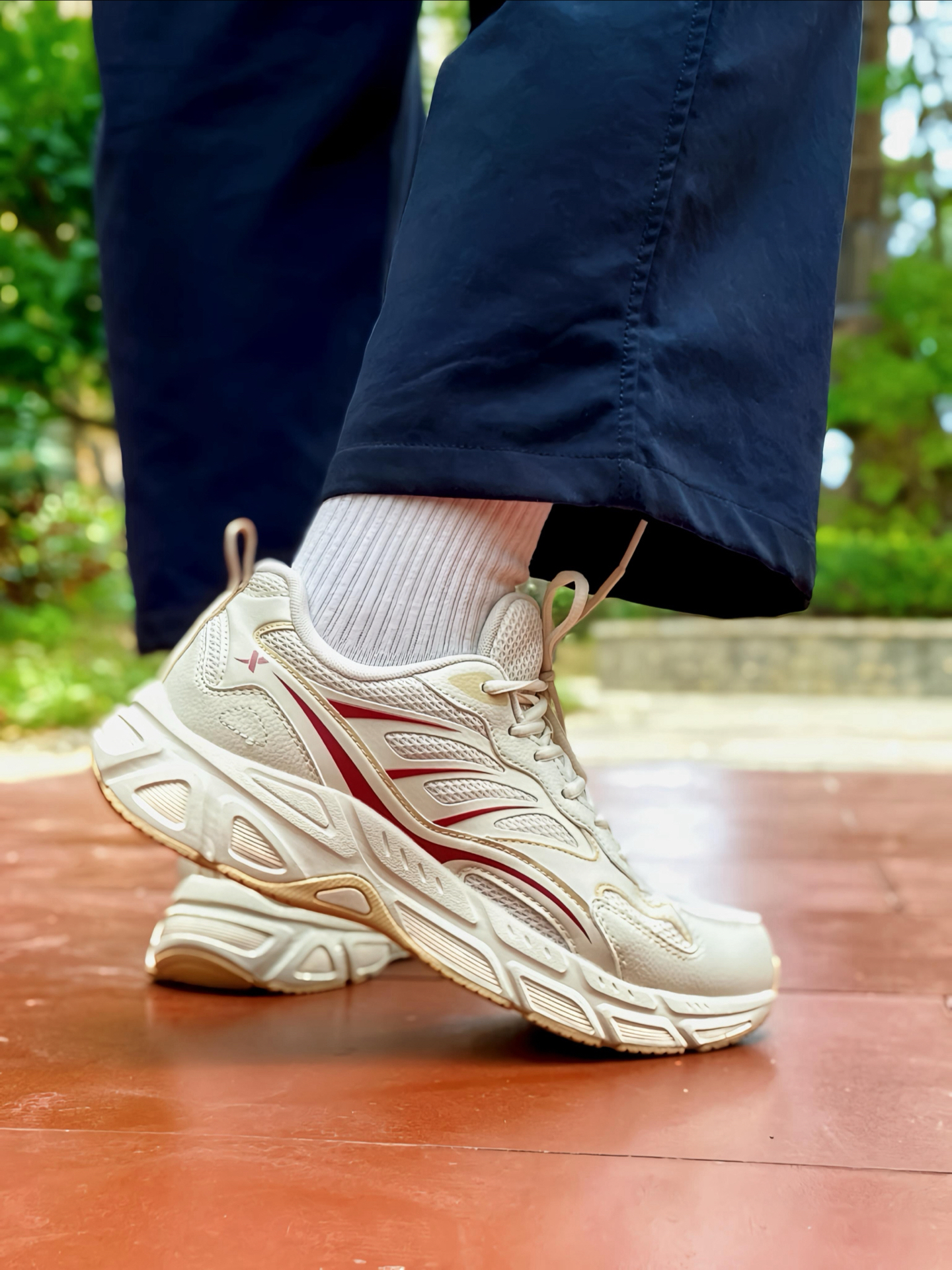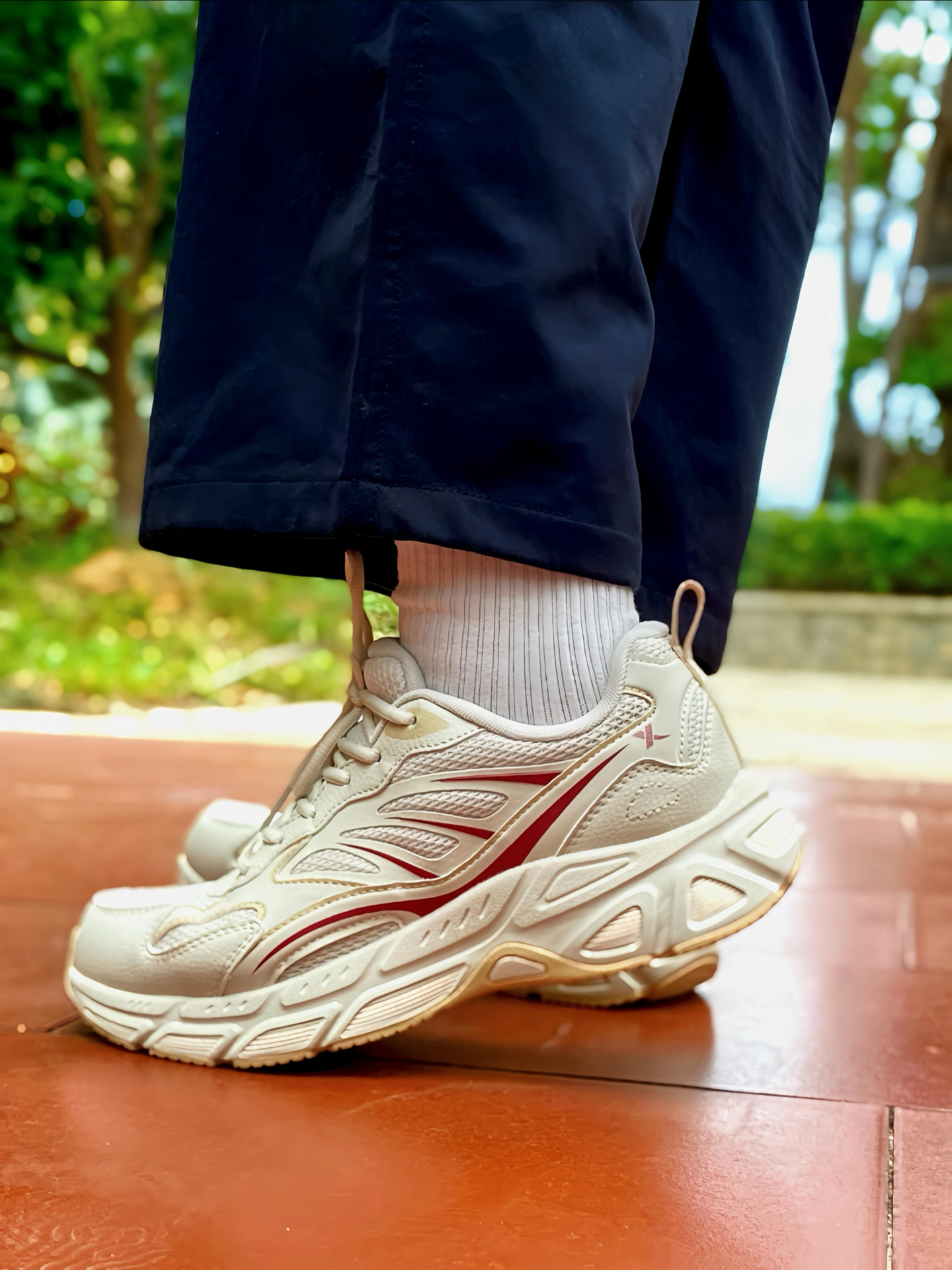 家人们 !这双 #特步 绝尘8 休闲跑鞋 我又挖到宝了!米白配色加一点红色装饰,清爽又好搭,网面+皮革拼接的鞋面,透气在线又有质感。 我穿着还蛮舒服的,鞋子轻便,厚底缓震也足够,个人感觉日常通勤、慢跑都能兼顾,舒适性完全超出我的预期,搭配休闲裤、牛仔裤都很可。关键是价格💰挺香,性价比蛮高的,学生党、打工人都可直接🐛。码数不偏,我按平常来没问题的。 #双旦礼物节 #特步跑鞋 #城市通勤休闲...