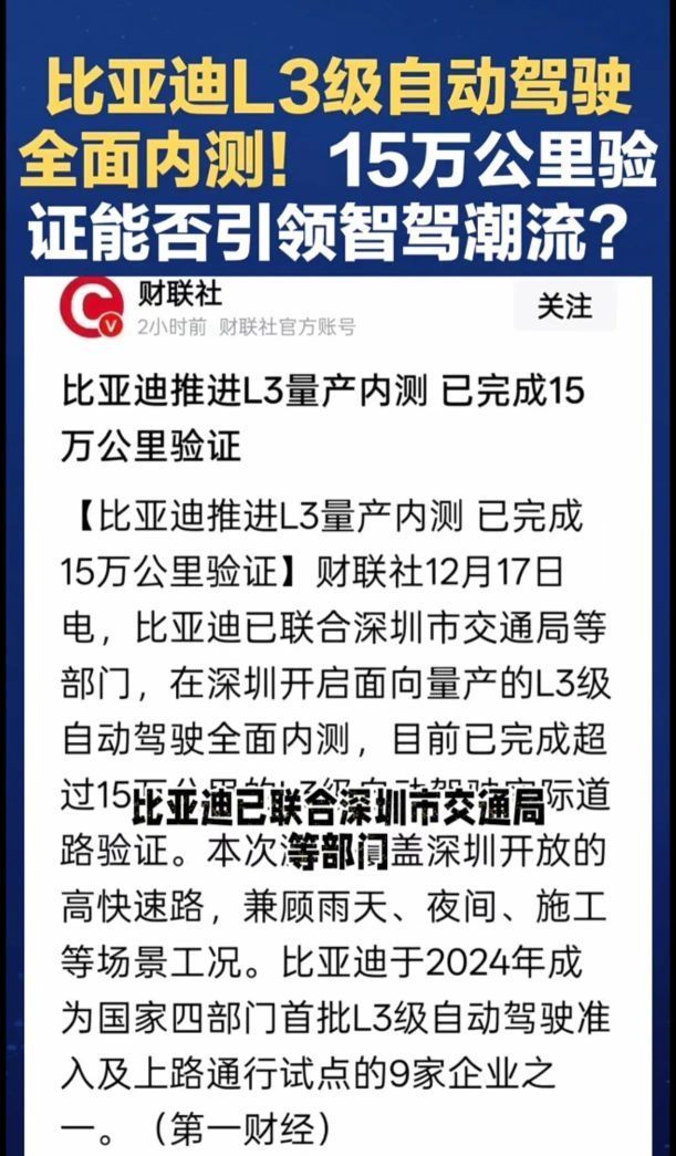 大数据面前谁在裸泳一目了然!L3智能驾驶要普及?比亚迪用行动诠释! 三年前别人还在试水新能源汽车,比亚迪已经拿了国内第一张L3测试牌照!2024年,智能驾驶刚刚开始试行L2,比亚迪已经进入了L3智能辅助驾驶国家首批试点名单! 每一次都是走在技术创新前列!但从来不满世界炫耀,这就是比亚迪,低调!务实!闷声干大事!最近又默默的干了一件大事!开启了量产L3自动驾驶的全面内测。 看来真正的智能驾驶要...