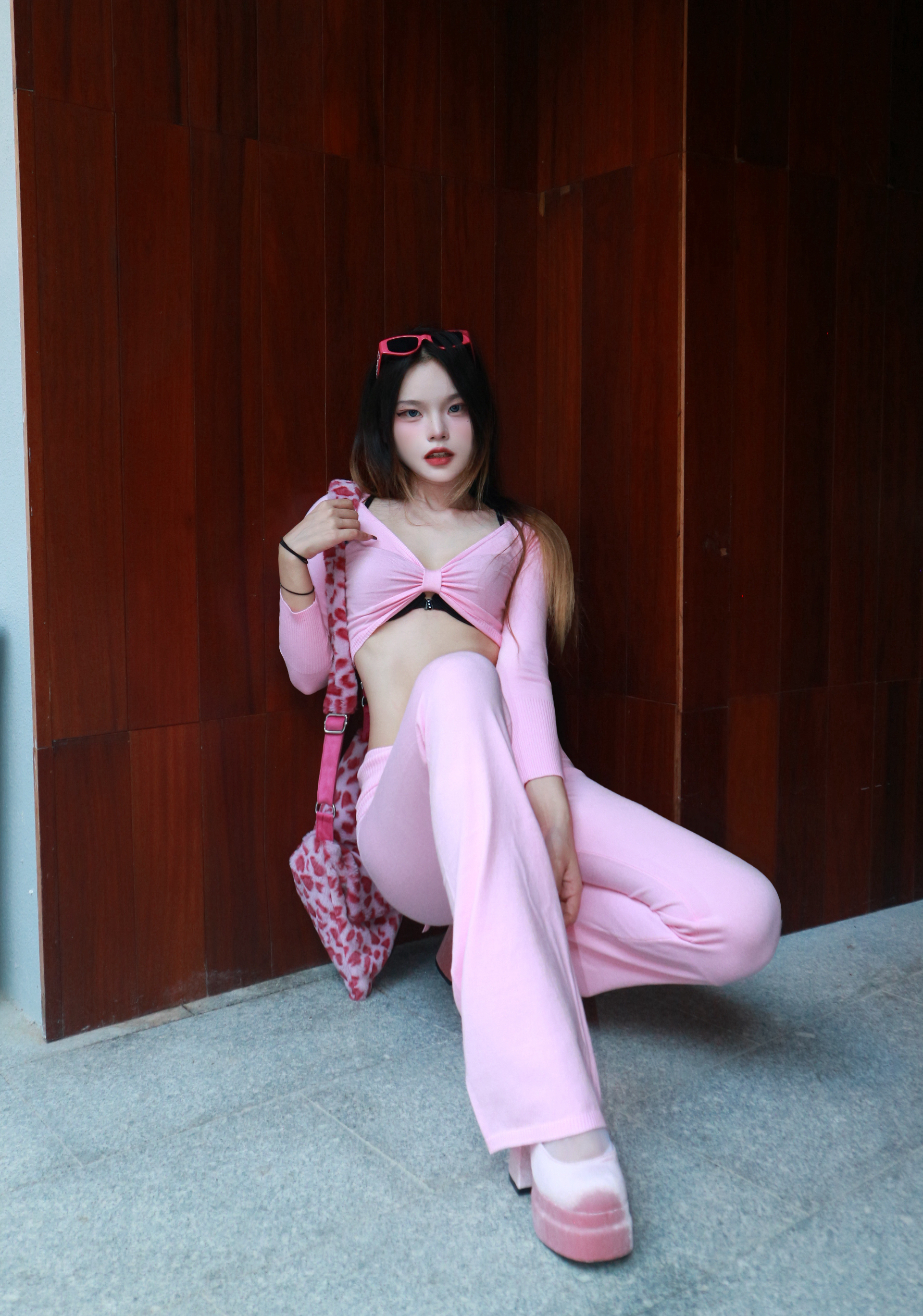 今天穿这套粉色套装出门,短款上衣露腰设计很显身材,喇叭裤还能拉长腿型✨ 配上红墨镜和豹纹包,走在路上回头率绝了💘 感觉自己就是芭比风复古辣妹,这种风格真的又甜又飒,爱惨了~💗 身高|体重:165/96 🧍♂️ 穿搭风格:芭比粉 👟 鞋子:👠 🎒配饰:豹纹包
