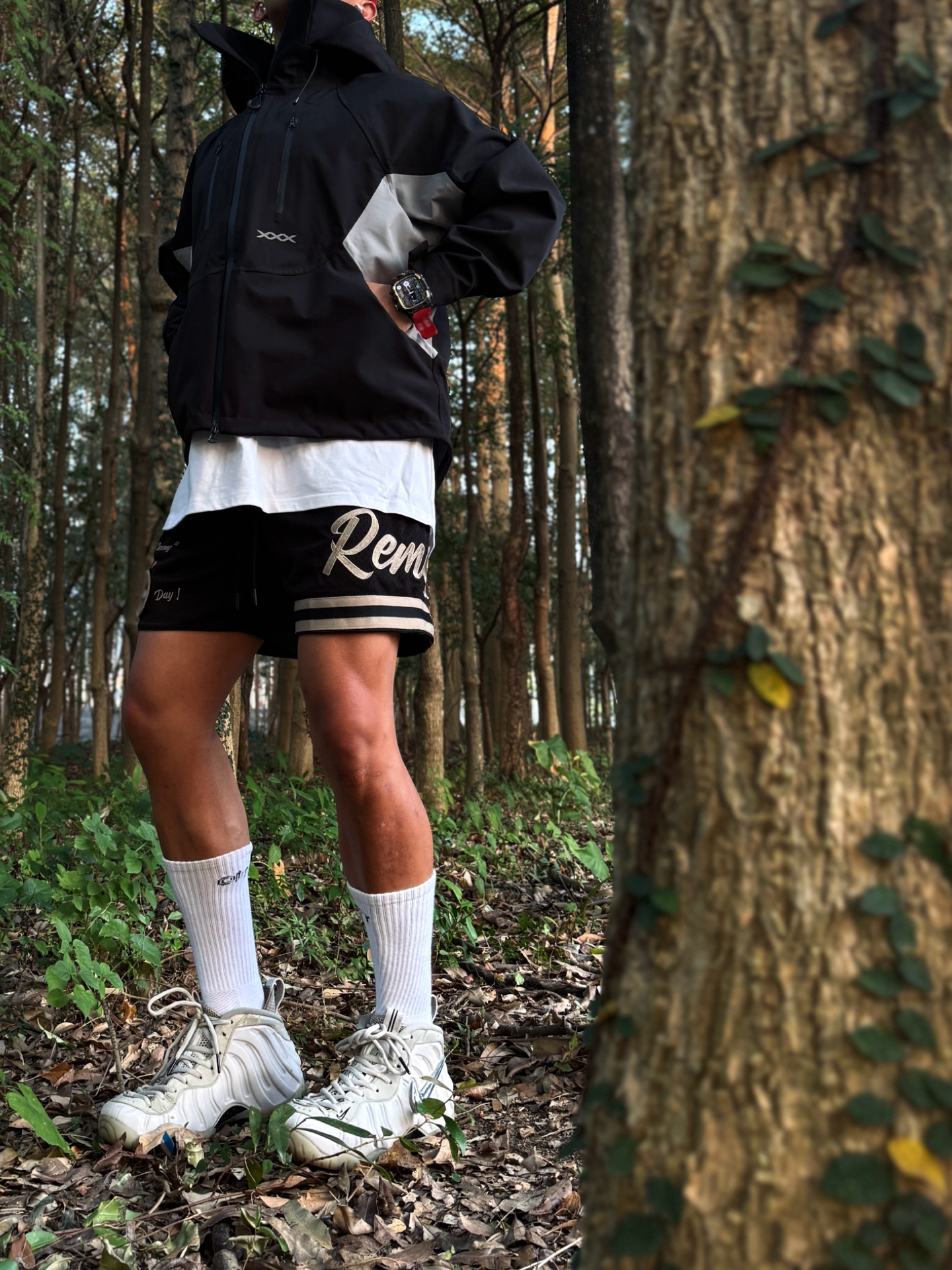 Hey bro‼️这里是小熊的穿搭日记 机能风与运动休闲风进行碰撞是什么体验❓ 元气秋冬以黑白色块拼接的冲锋衣开启🔛 内搭白色长款t恤 打破穿搭秋冬厚重感 搭配黑色四分短裤 上长下短的搭法十分轻盈 上脚喷泡全明星泡👟 金属光泽质感直接成为视觉焦点 鞋身线条硬朗 街头潮流气场拿捏 银白色调十分简约 很match整体黑白氛围 #冬天的冲锋衣 #这个冬天不怕冷 #元气秋冬暖出型 #我的户外...