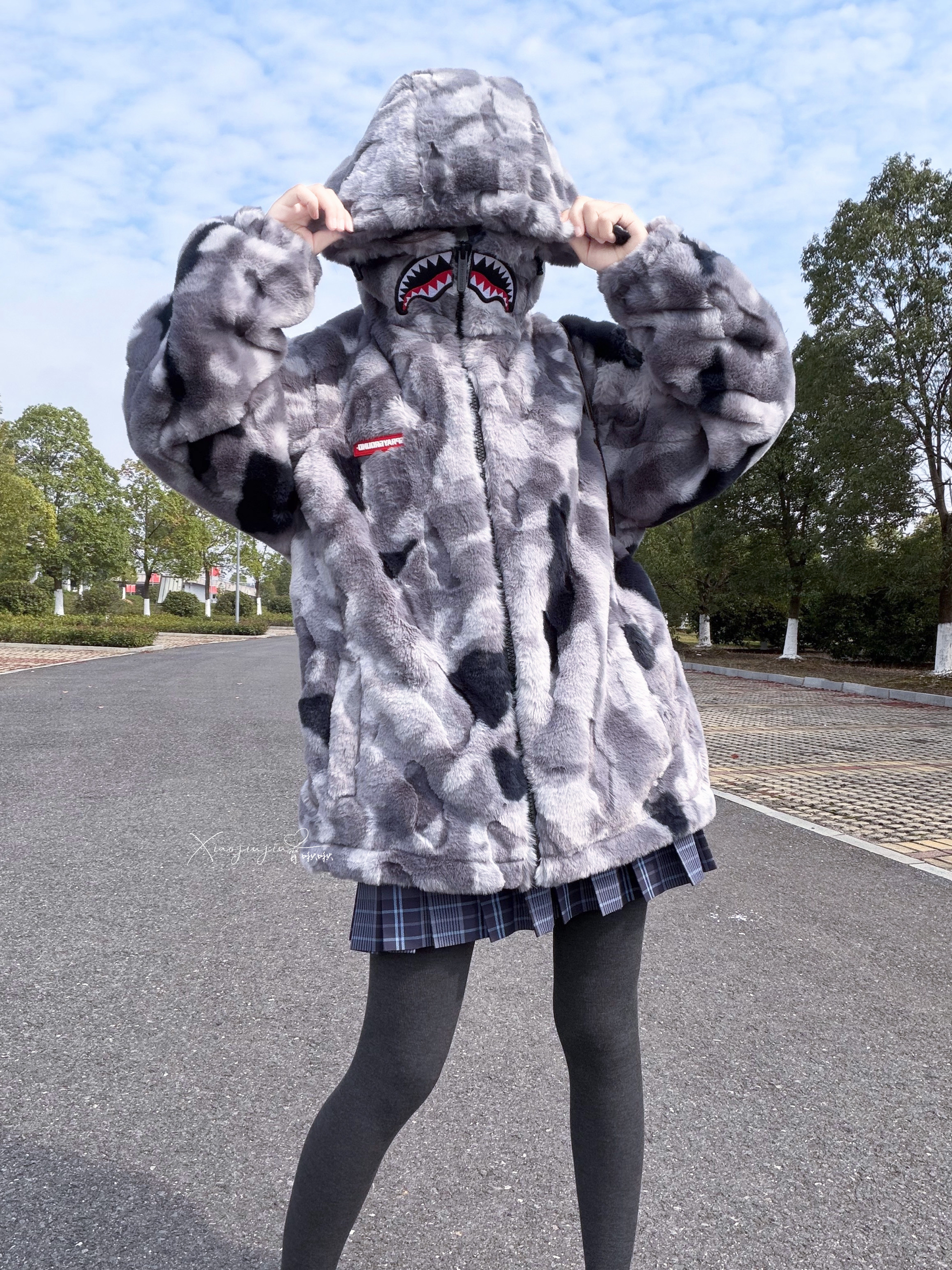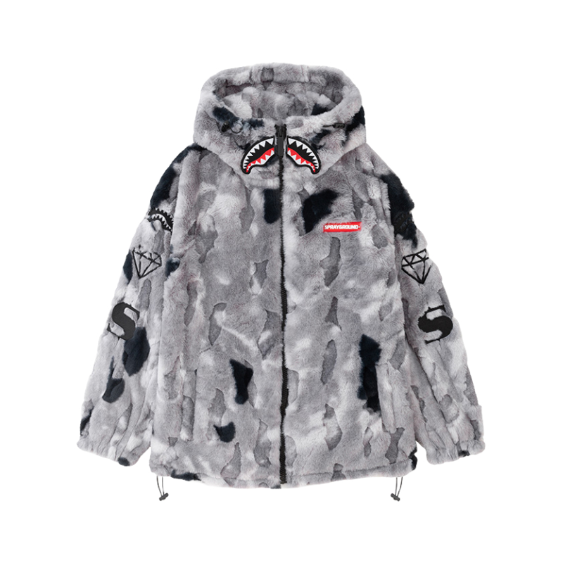 本篇笔记关联了【张桂源同款】sprayground 刺绣满印不规则花纹鲨鱼嘴防风加厚款仿羊羔绒感连帽双拉链长袖夹克 男女同款 WD931121 灰等商品,为用户提供真实的使用体验和购买参考。