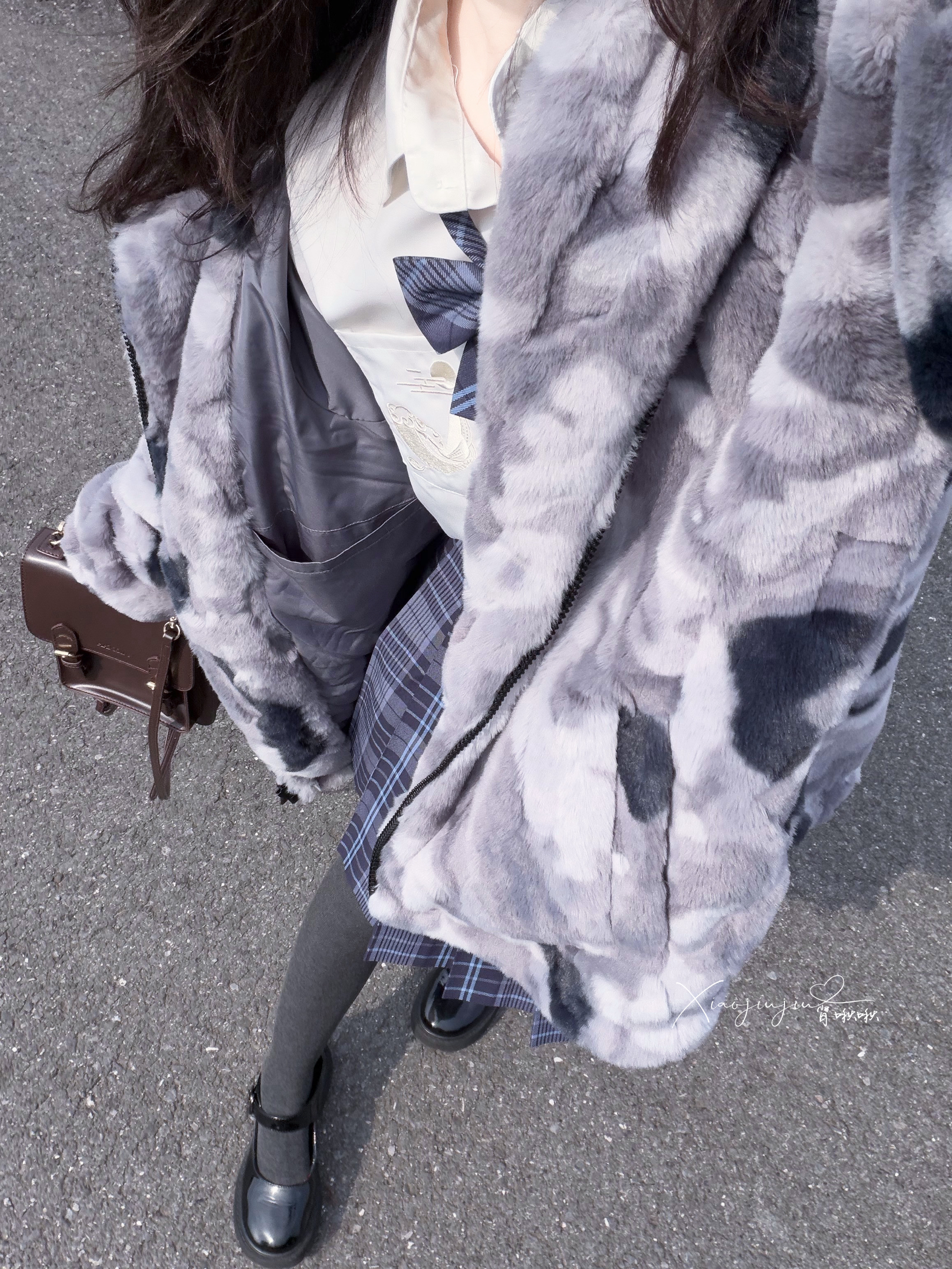 江西进入速冻🧊模式,冷冷的 今天中午啾啾吃完饭准备去外面走走 搭配了花灰小鲨鱼外套🧥 和蓝色格子裙,是活泼甜美女孩👧 外套上面毛毛柔软,穿起来暖和 外面变成冷色系了,有冬天的那味儿~