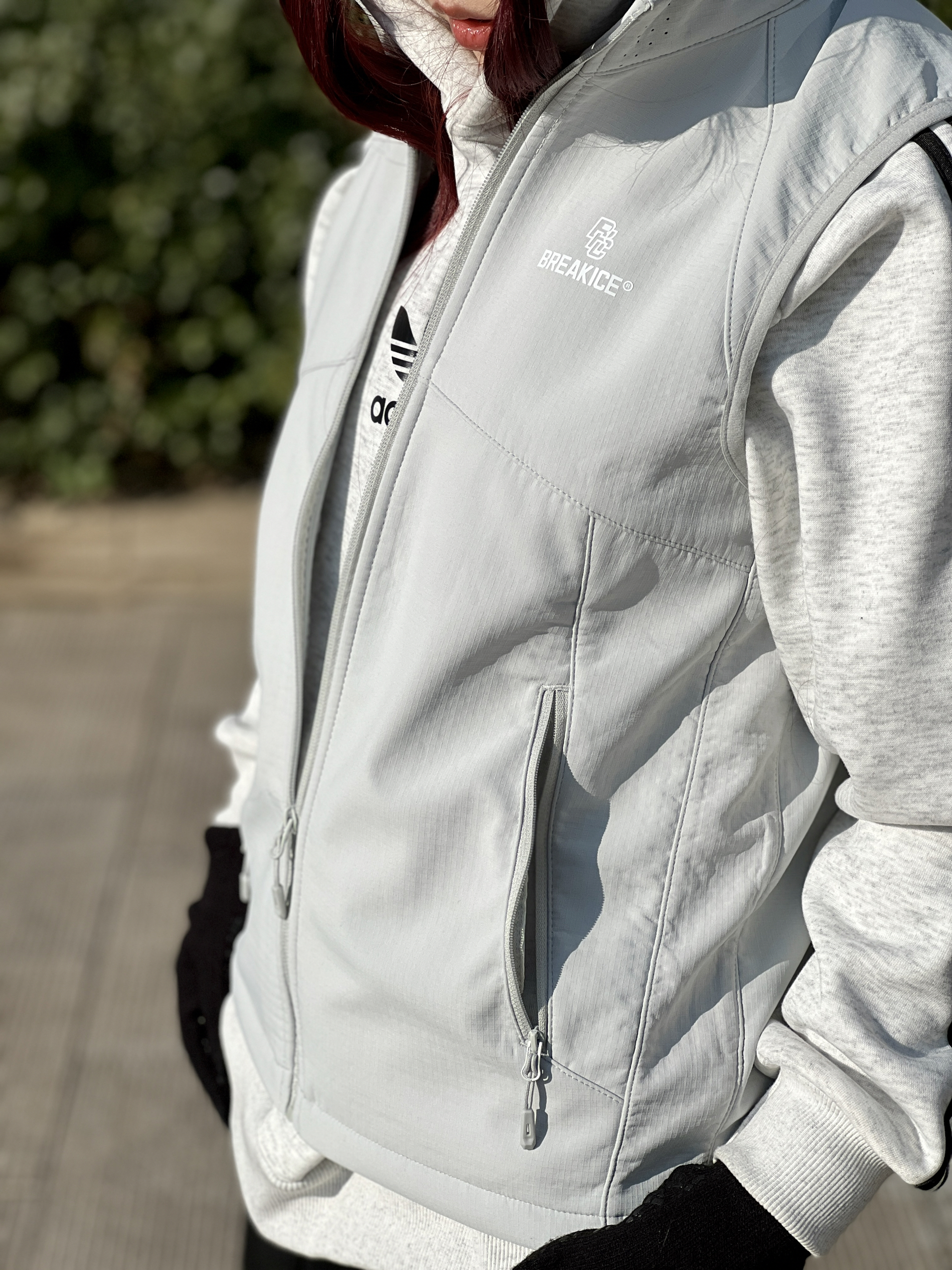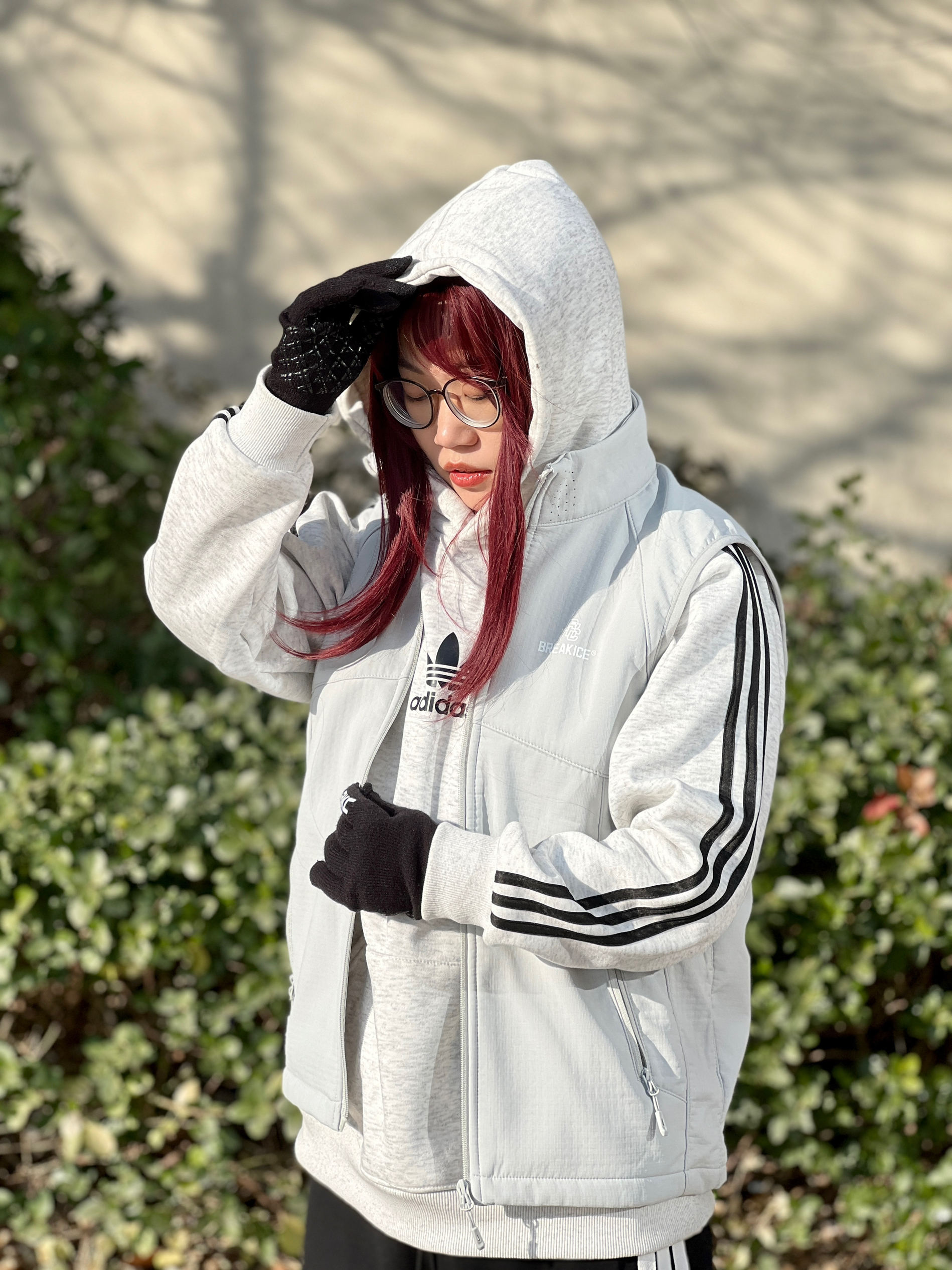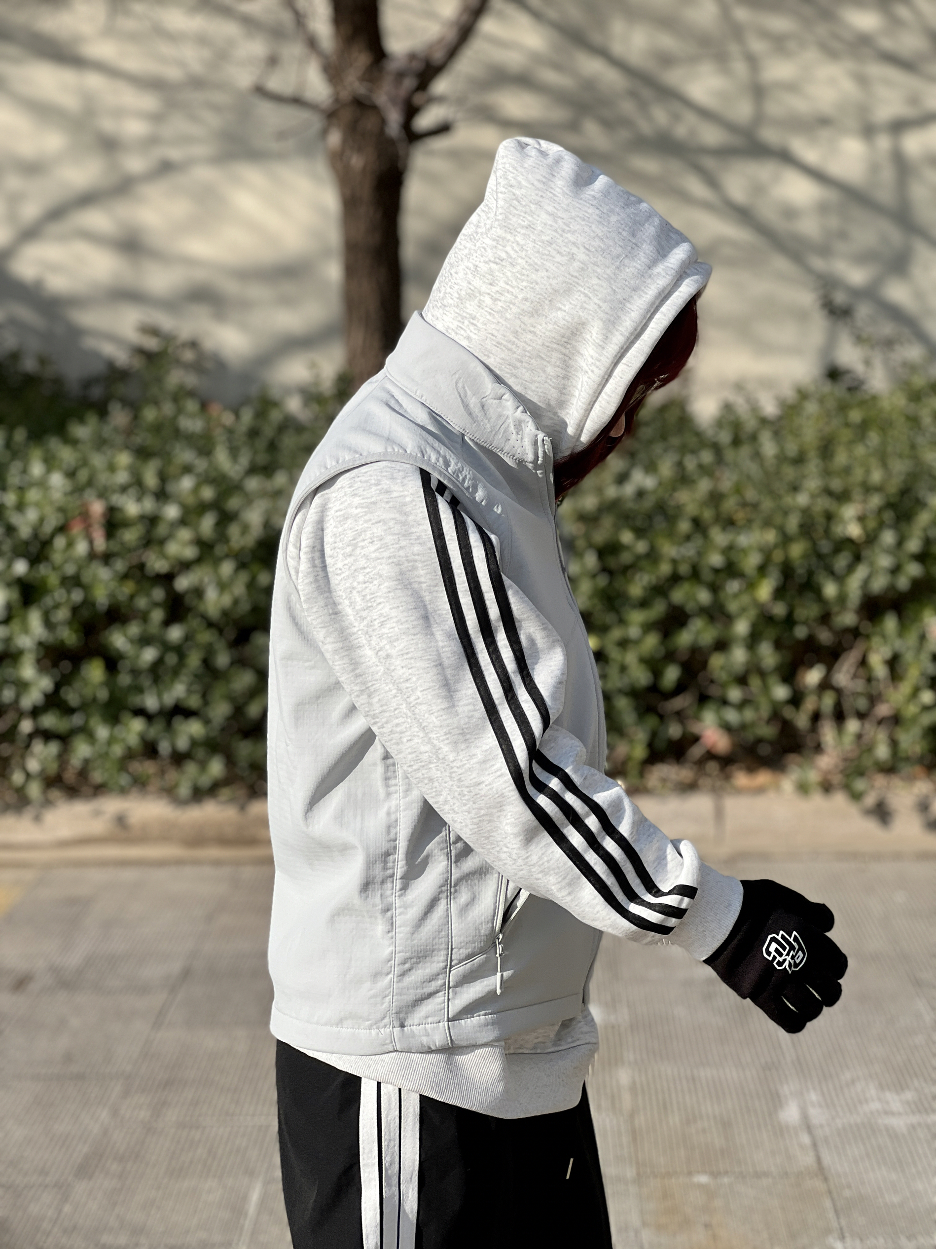 加绒连帽卫衣➕加绒防风马甲➕可触屏📱手套 我最近户外这样穿真的就不冷了~ 大概是2⃣️度到1⃣️2⃣️度的样子 保暖和防风都有了,这件马甲防风效果我觉得真的不错 花灰色和中灰色叠穿有点高级🦆