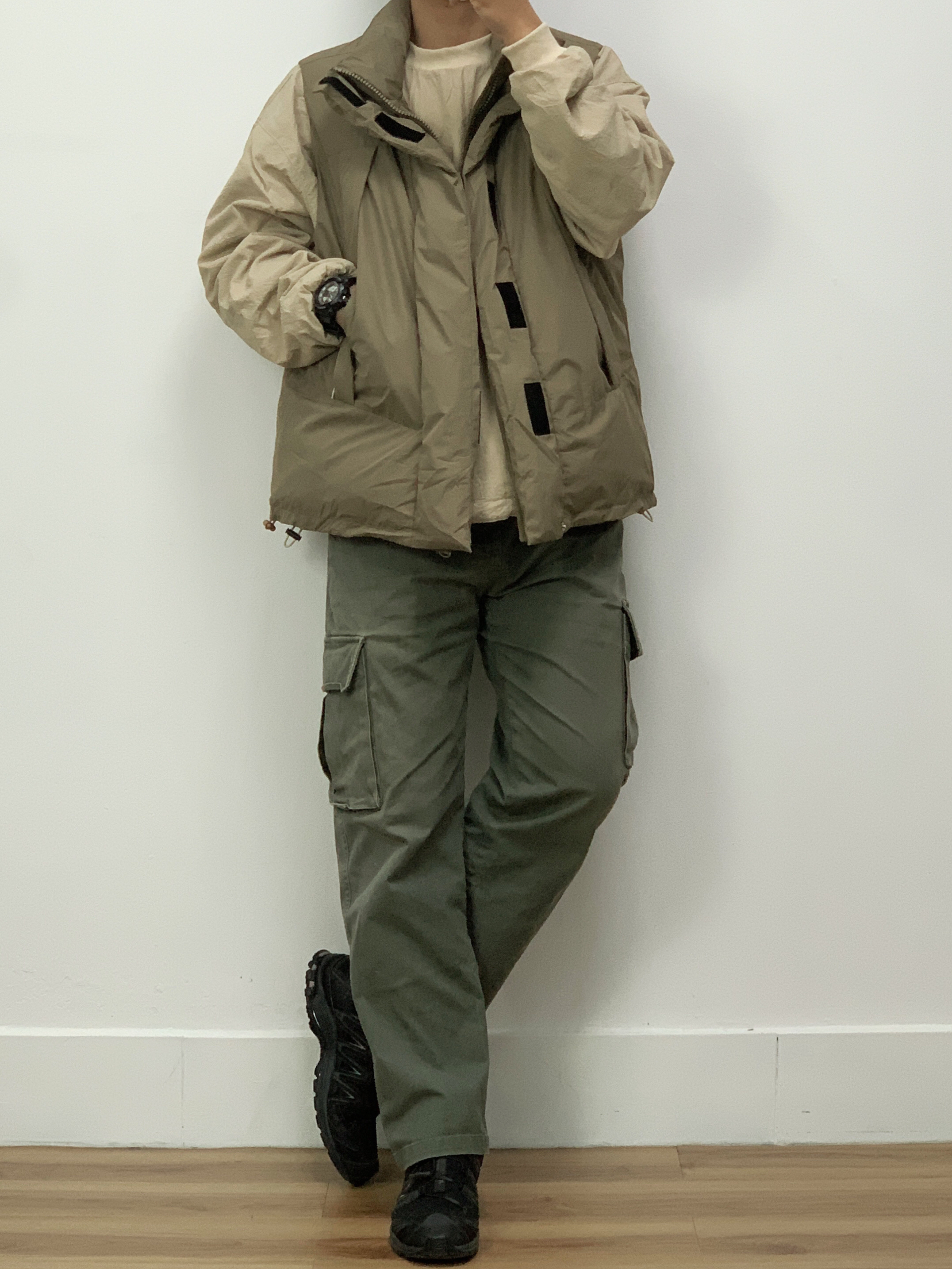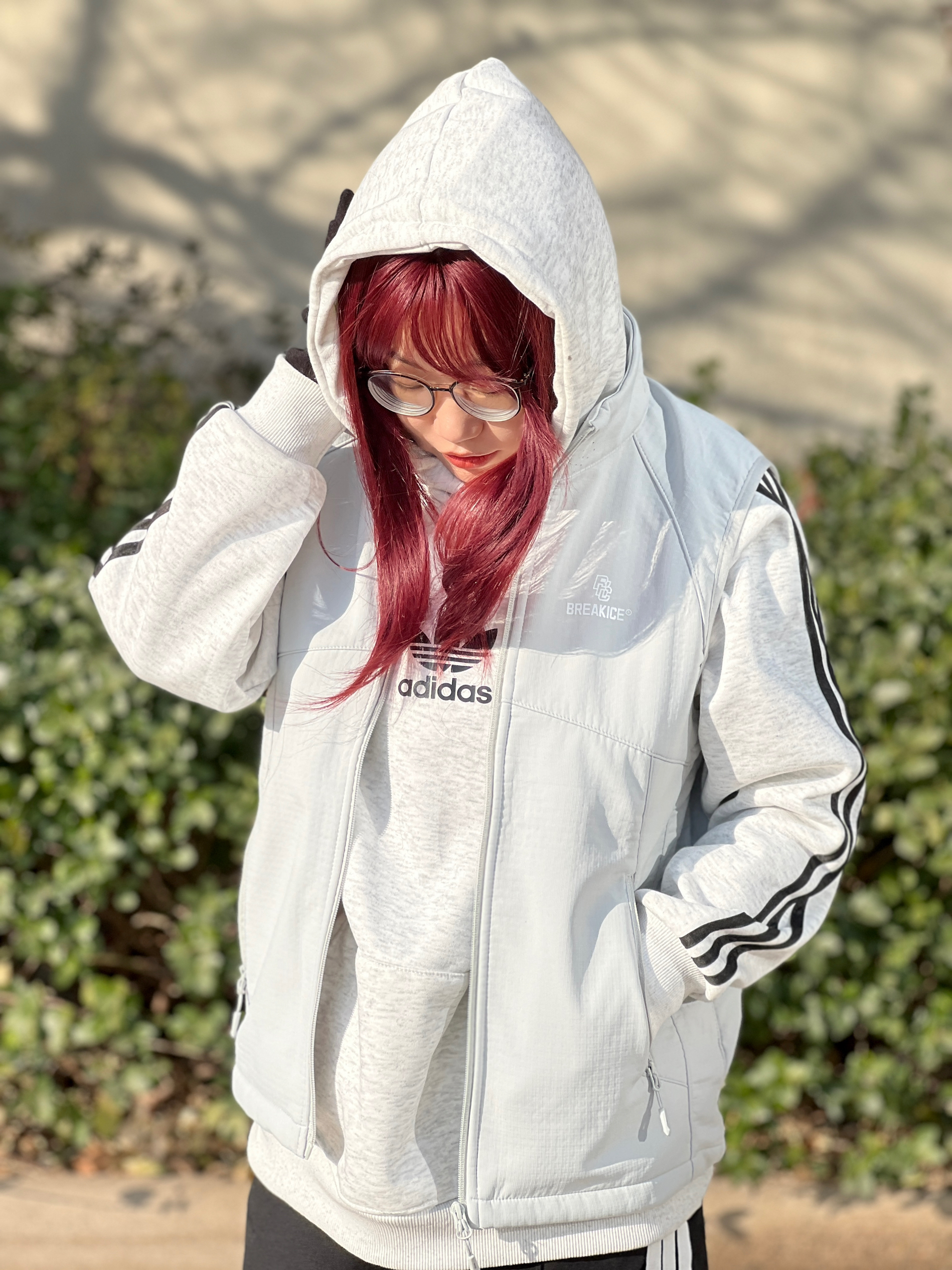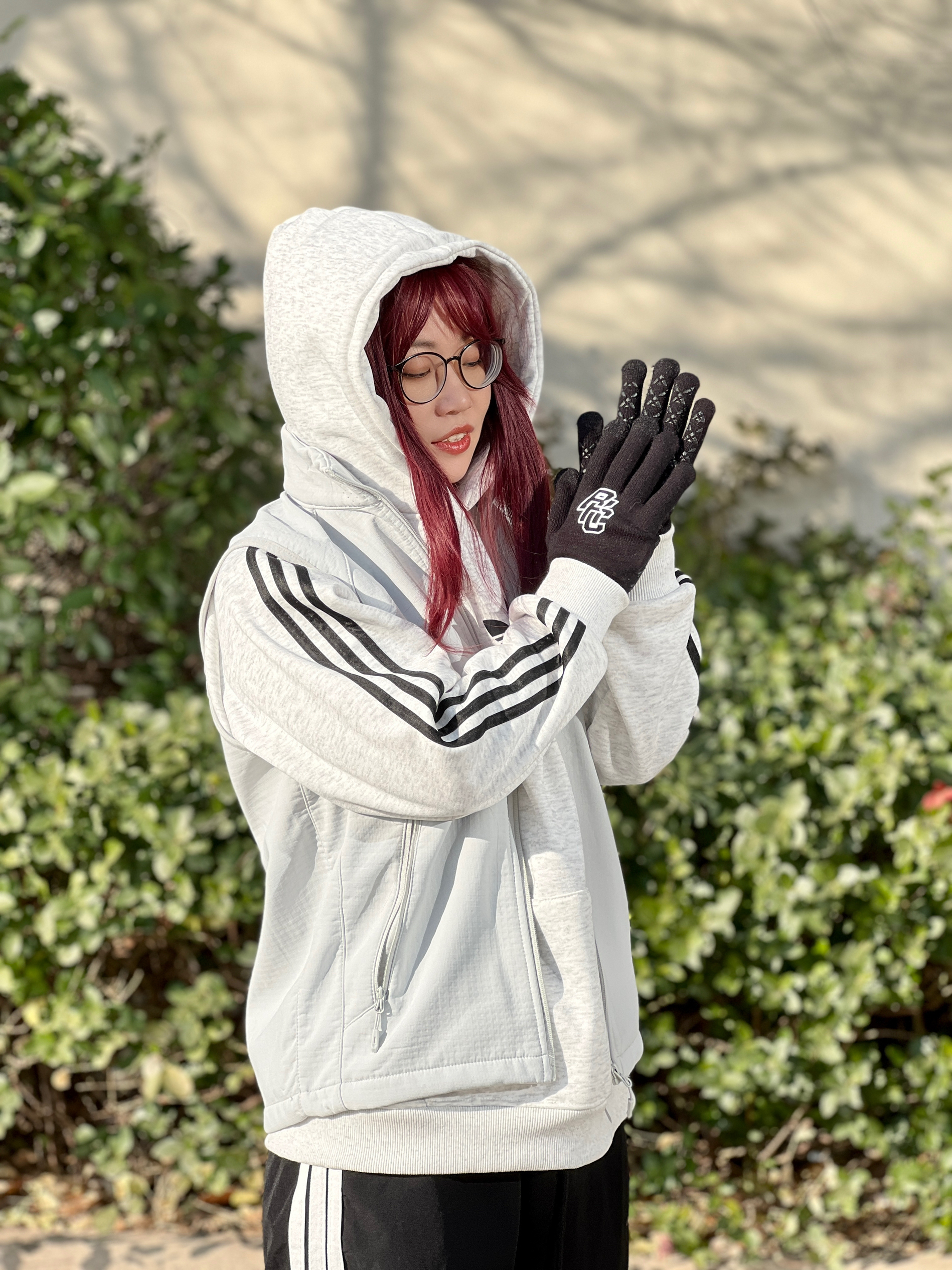 加绒连帽卫衣➕加绒防风马甲➕可触屏📱手套 我最近户外这样穿真的就不冷了~ 大概是2⃣️度到1⃣️2⃣️度的样子 保暖和防风都有了,这件马甲防风效果我觉得真的不错 花灰色和中灰色叠穿有点高级🦆