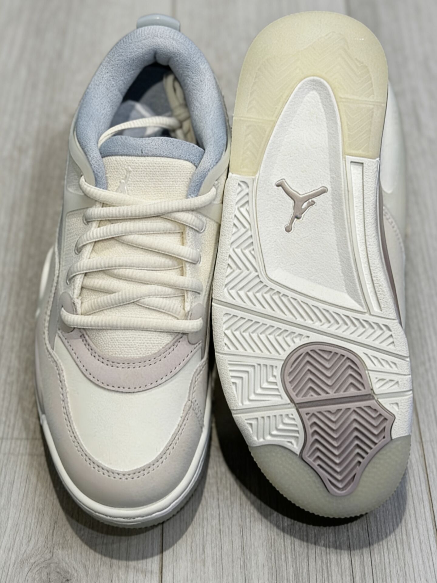 这双AJ4 RM的灰色调质感真绝,复古中帮设计很有味道。🧊 鞋面用料厚实饱满,上脚的包裹感让人特别安心,秋冬季穿再合适不过了。