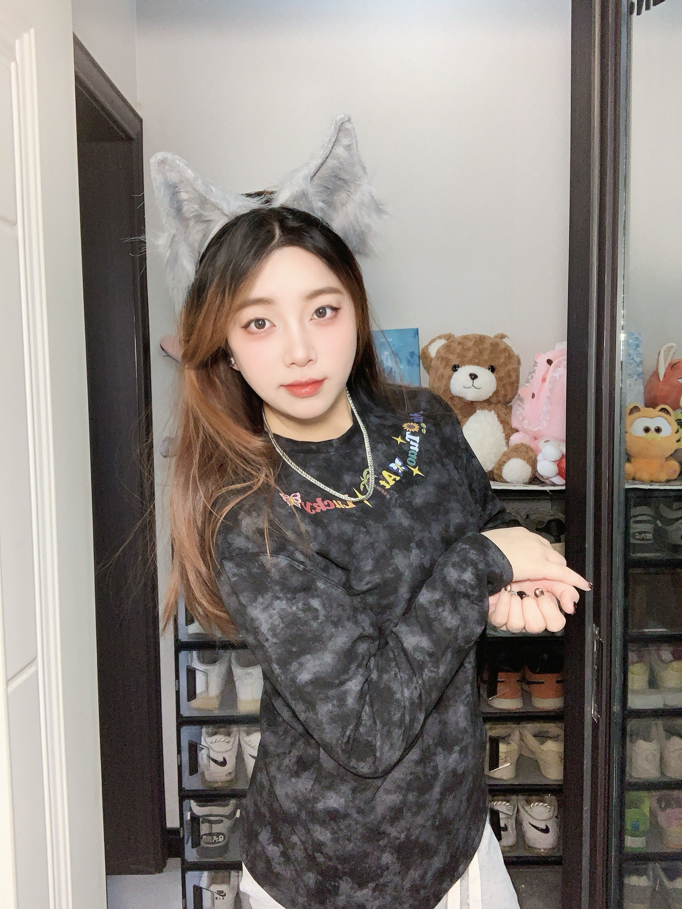 加微绒,搭内搭外🆗 料子摩擦皮肤不剌,绵绵的~ 阔版遮🥩包身段,🆒帅~ 下水洗一遭也不变色儿, 黑色大片底,灰色堆积色块扎染样儿